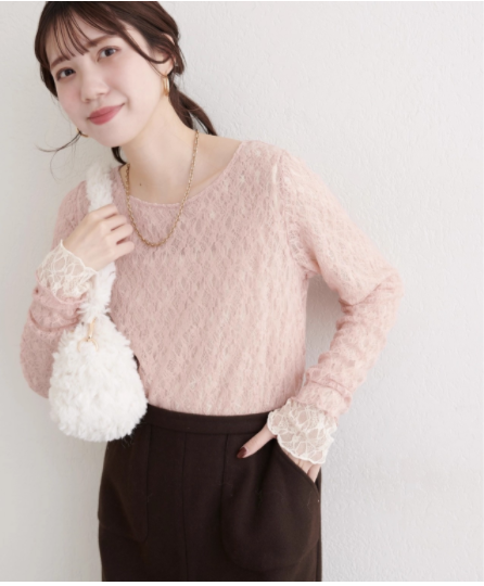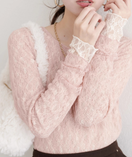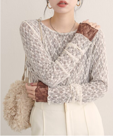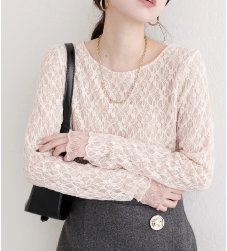 2025秋冬款日系雙面蕾絲氣質甜美打底衫上衣