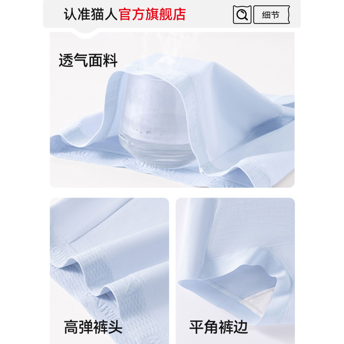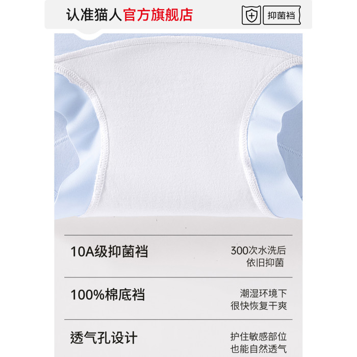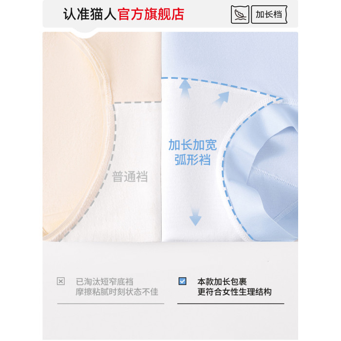 貓人平角內褲女士新款全棉a類純棉抗菌加長襠女生不夾臀四角短褲
