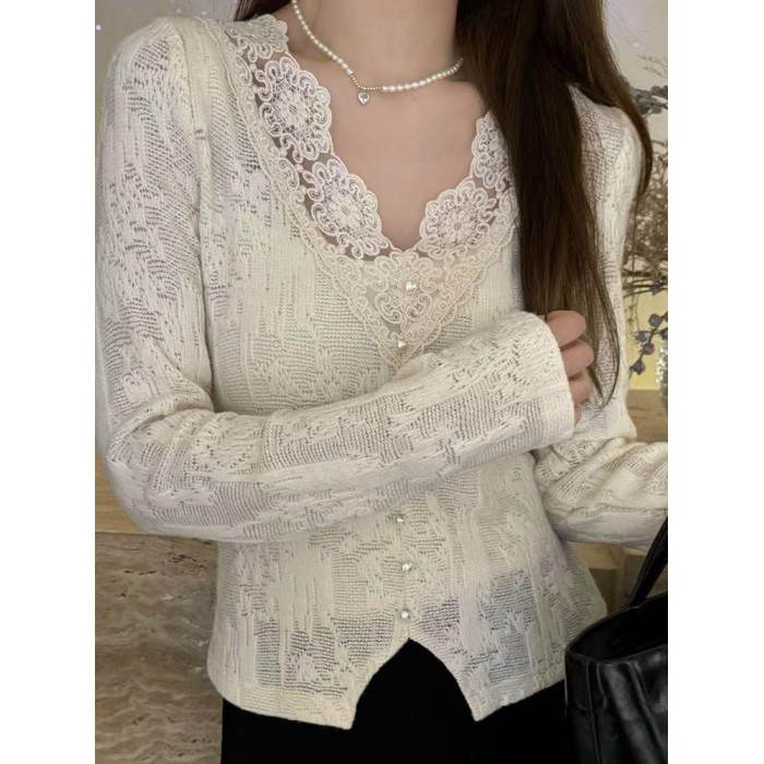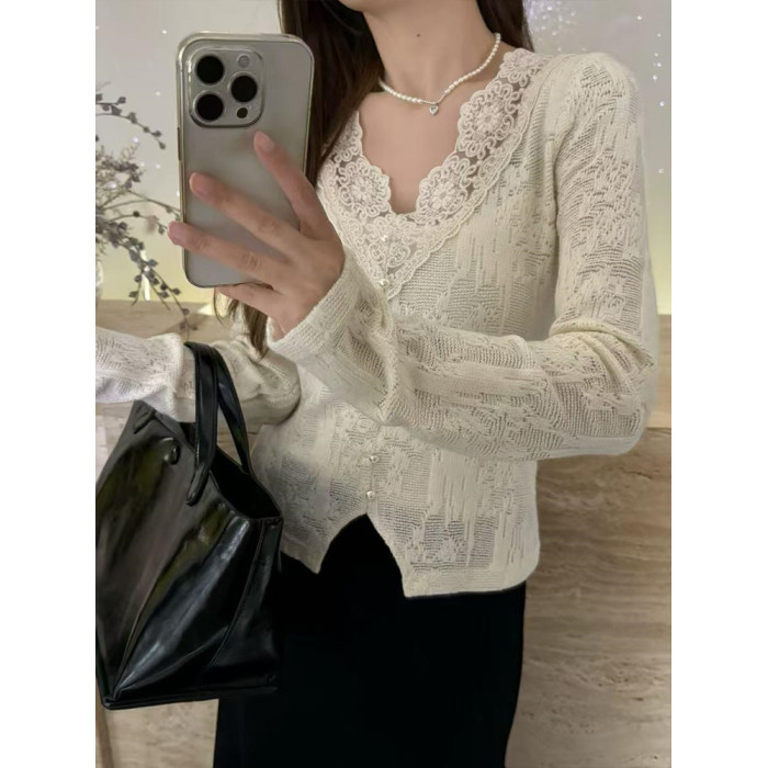 蕾絲衫法式上衣減齡通勤2026秋季長袖休閒別致設計感慵懶風打底衫