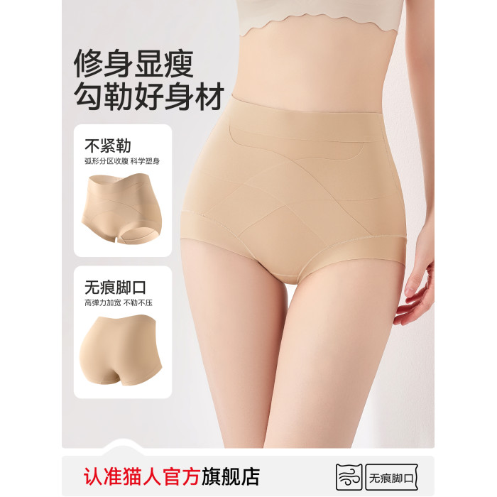 貓人收腹內褲女士無痕高腰強力收小肚子産後塑形大碼提臀抑菌褲