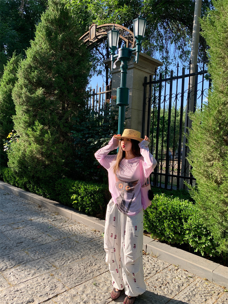 落落狷介 長袖上衣女2025年新款夏季冰絲防曬衣小個子寬鬆T恤紫色