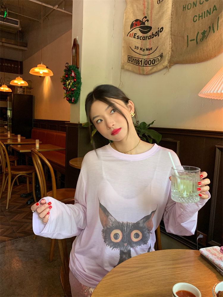 可愛減齡的貓咪印花,時尚且個性,不誇張的說,誰穿都好看的那種,哈哈~