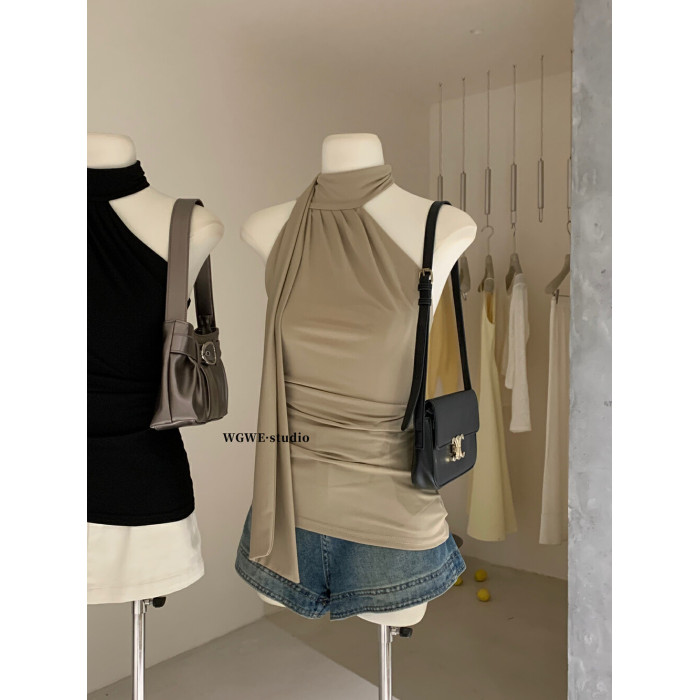 十三行 氣質飄帶掛脖修身吊帶顯瘦內搭無袖辣妹外穿上衣
