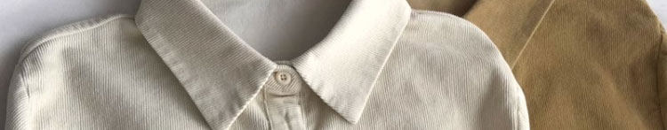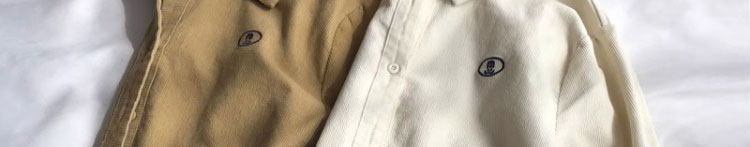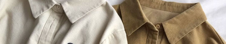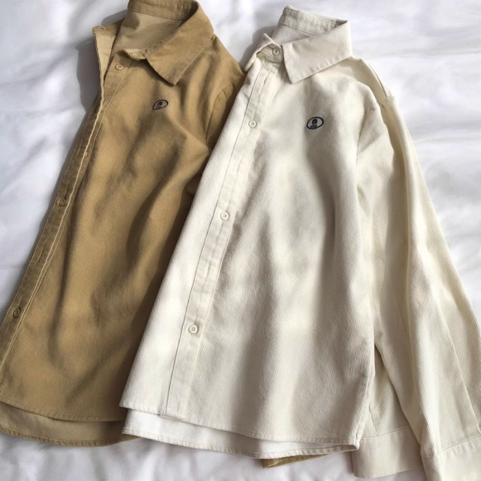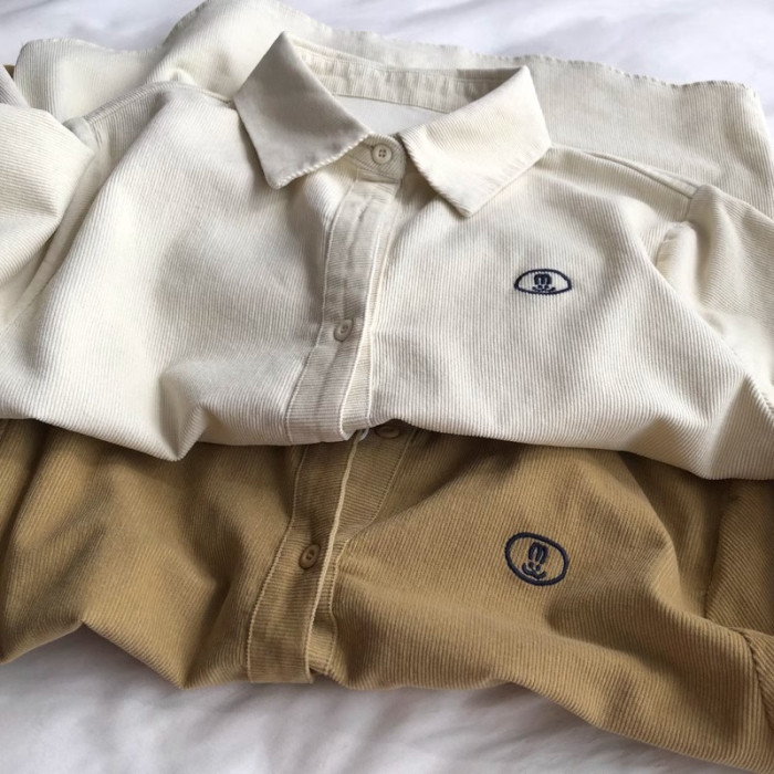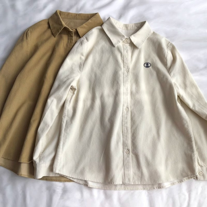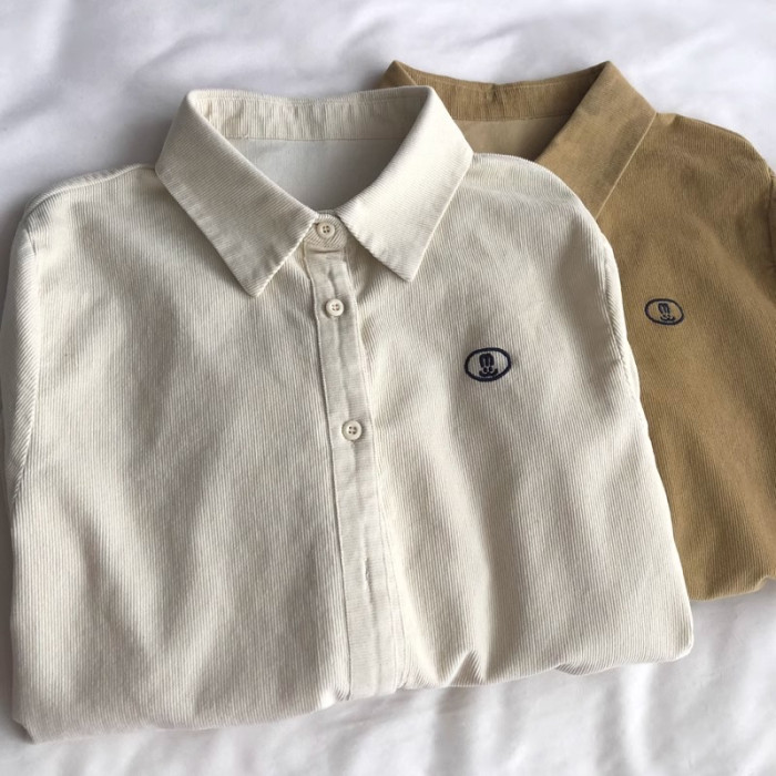 韓版小刺綉燈芯絨正肩長袖襯衫女繙領百搭曡穿襯衣秋小個子外套女