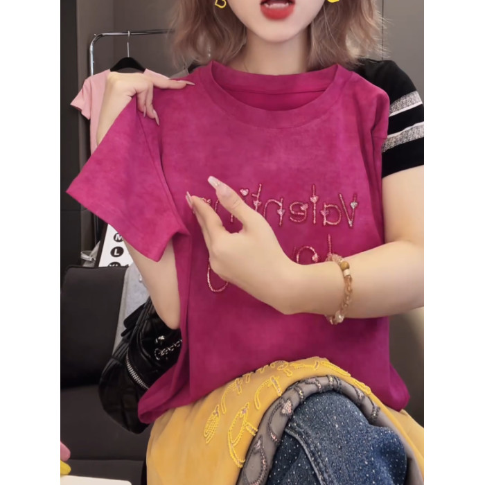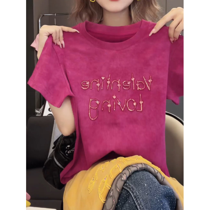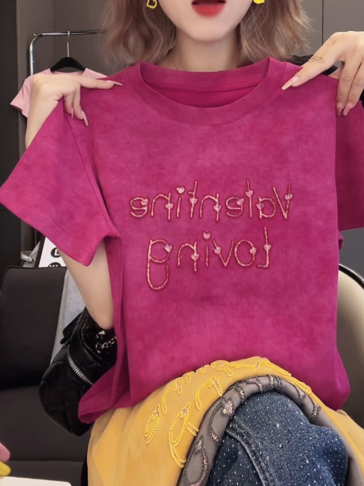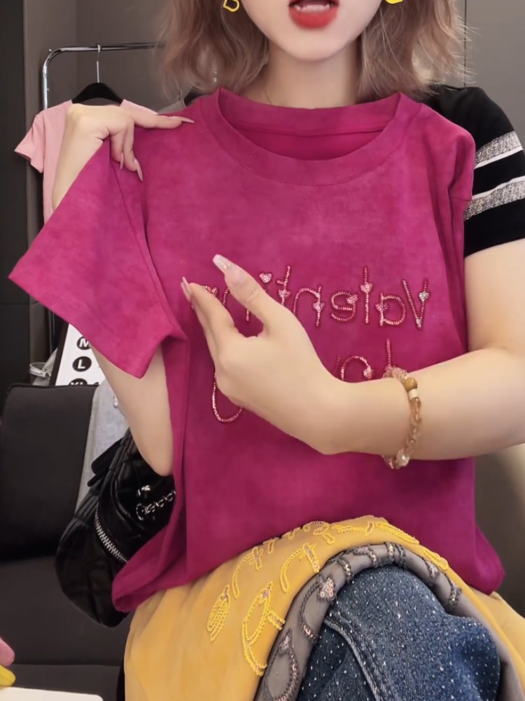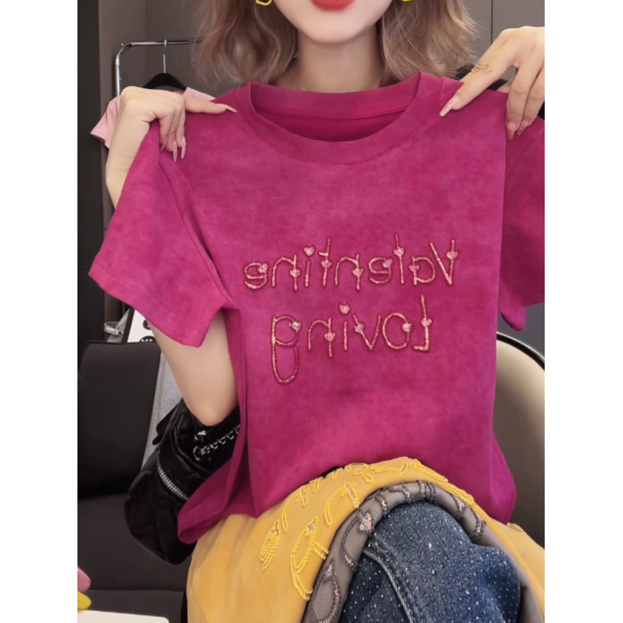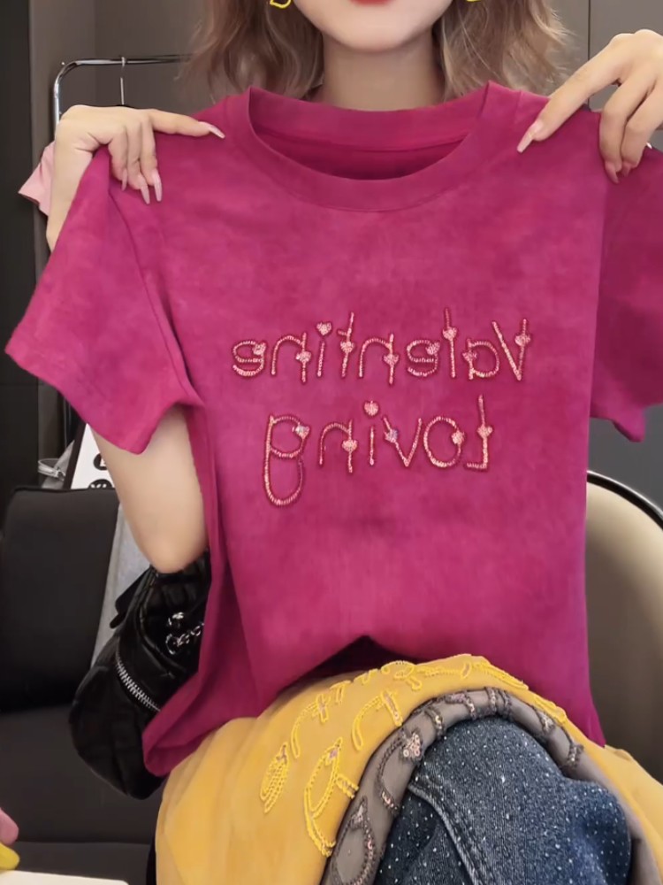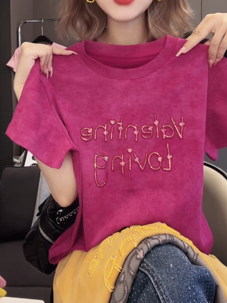 今年新款2026夏季氣質上衣韓版T恤衫燙鑽愛心字母設計感百搭