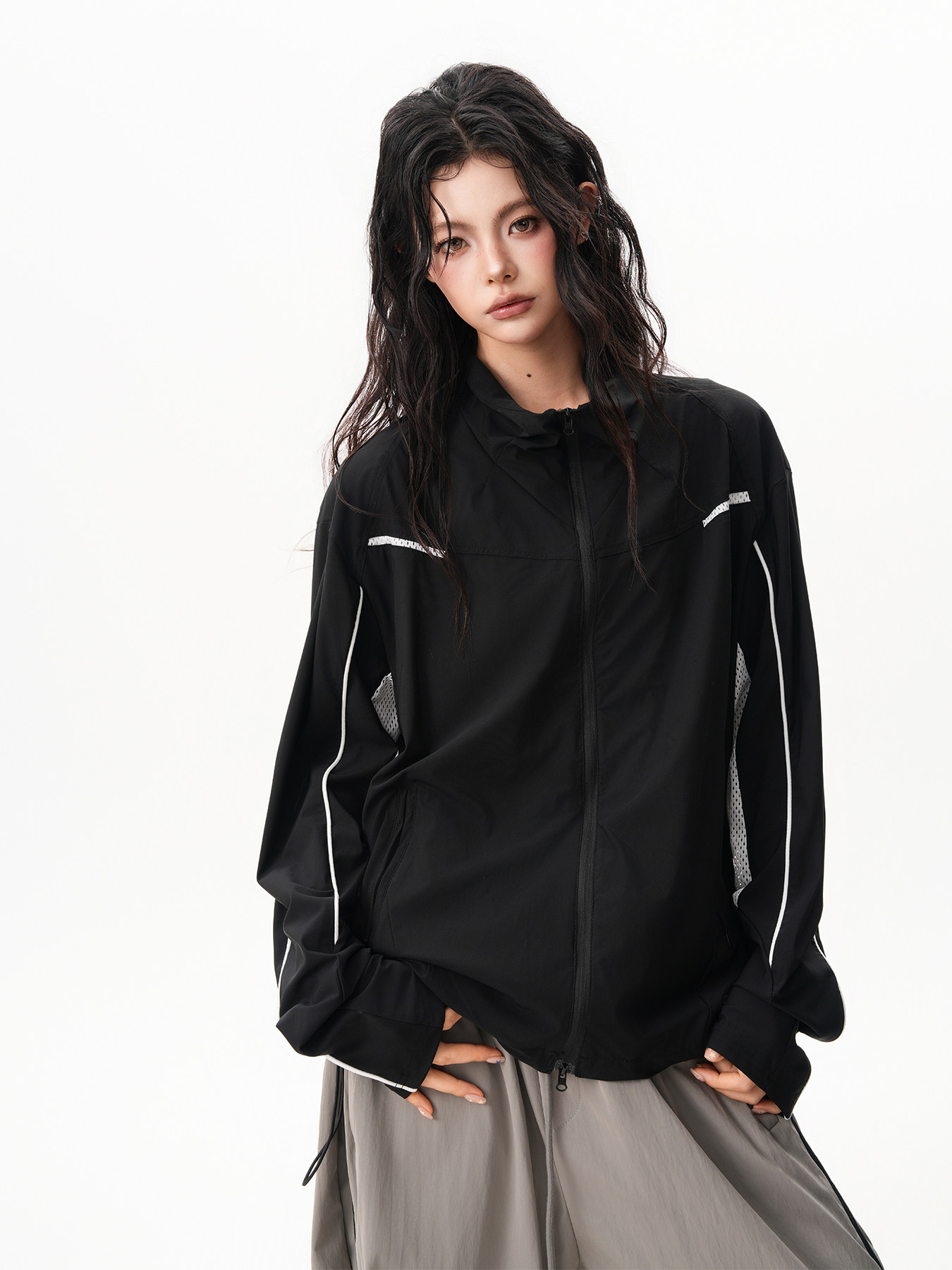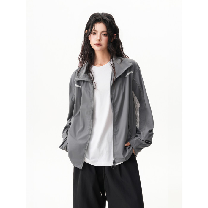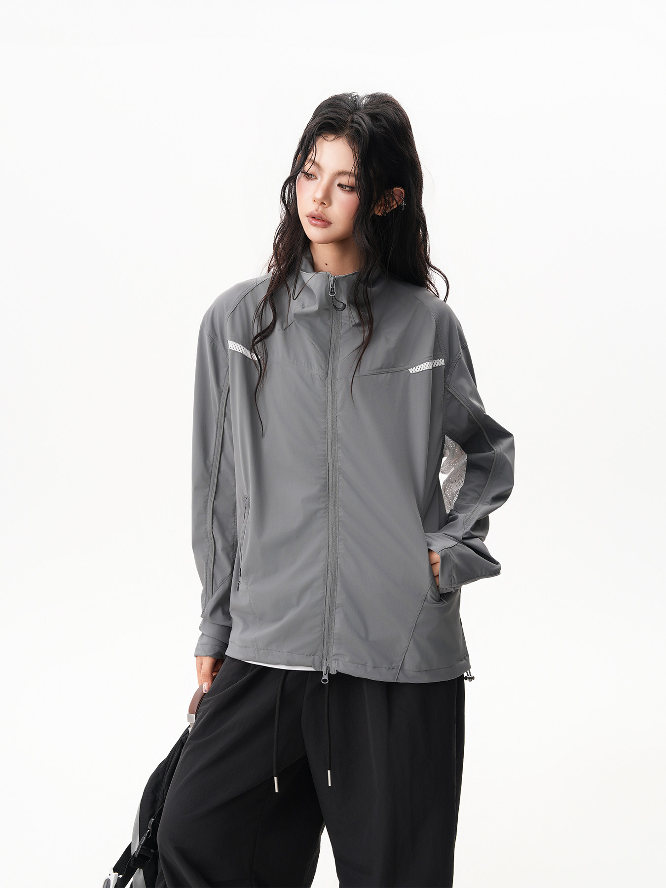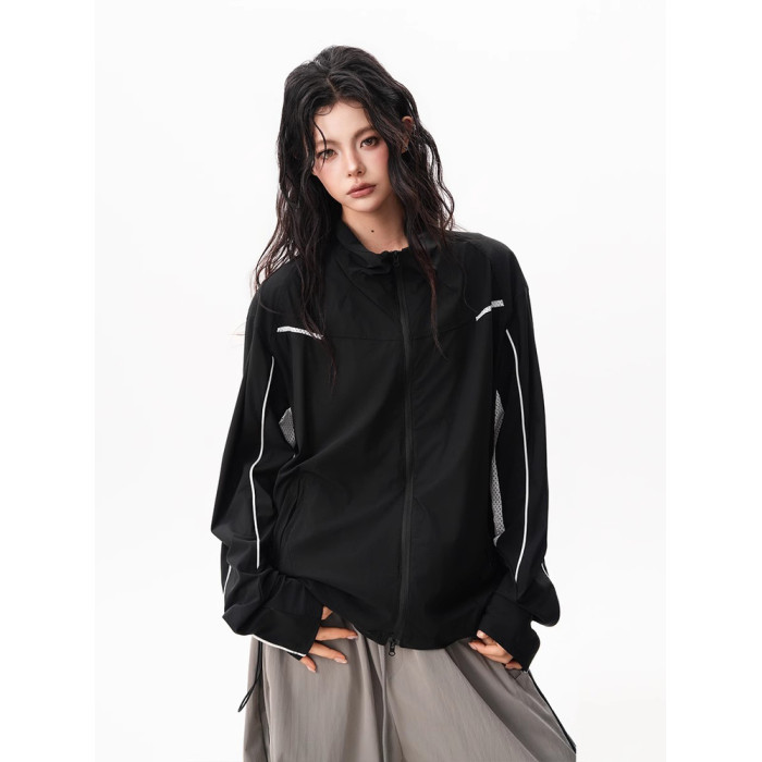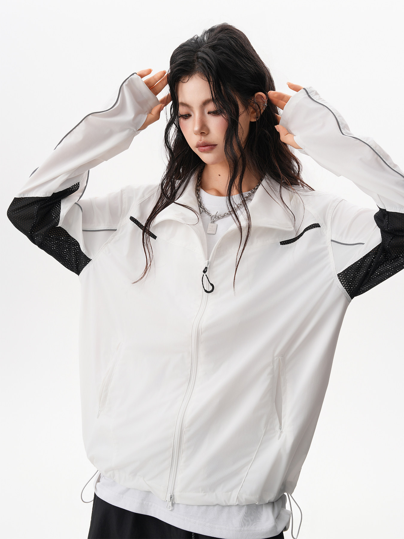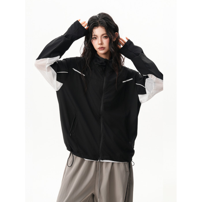冰絲涼感速乾防曬衣女男2025夏boxy薄款透氣上衣戶外拼接運動外套