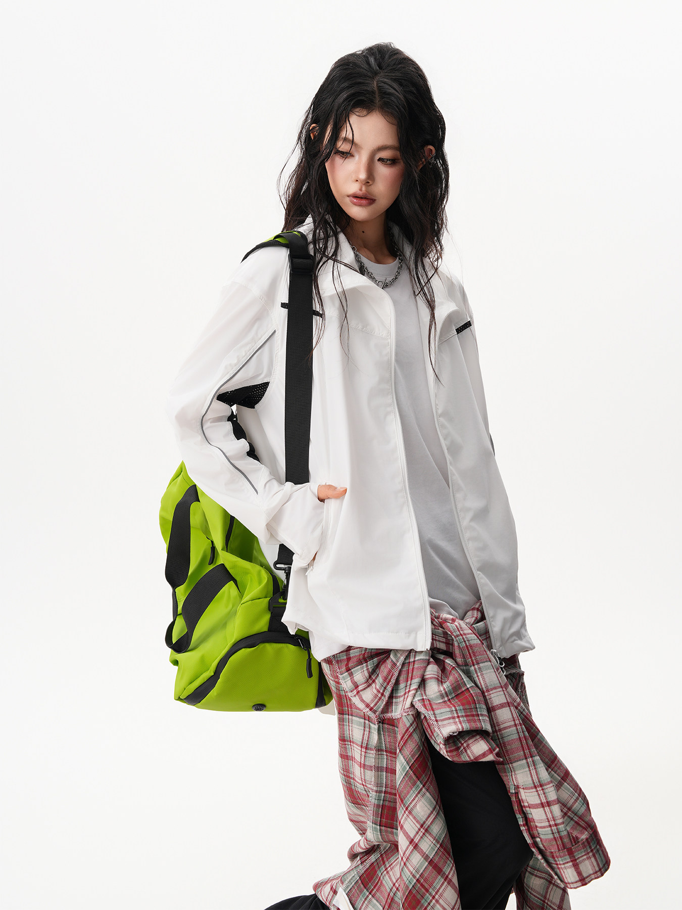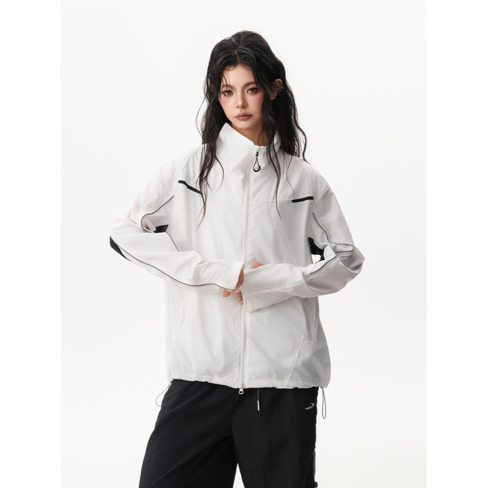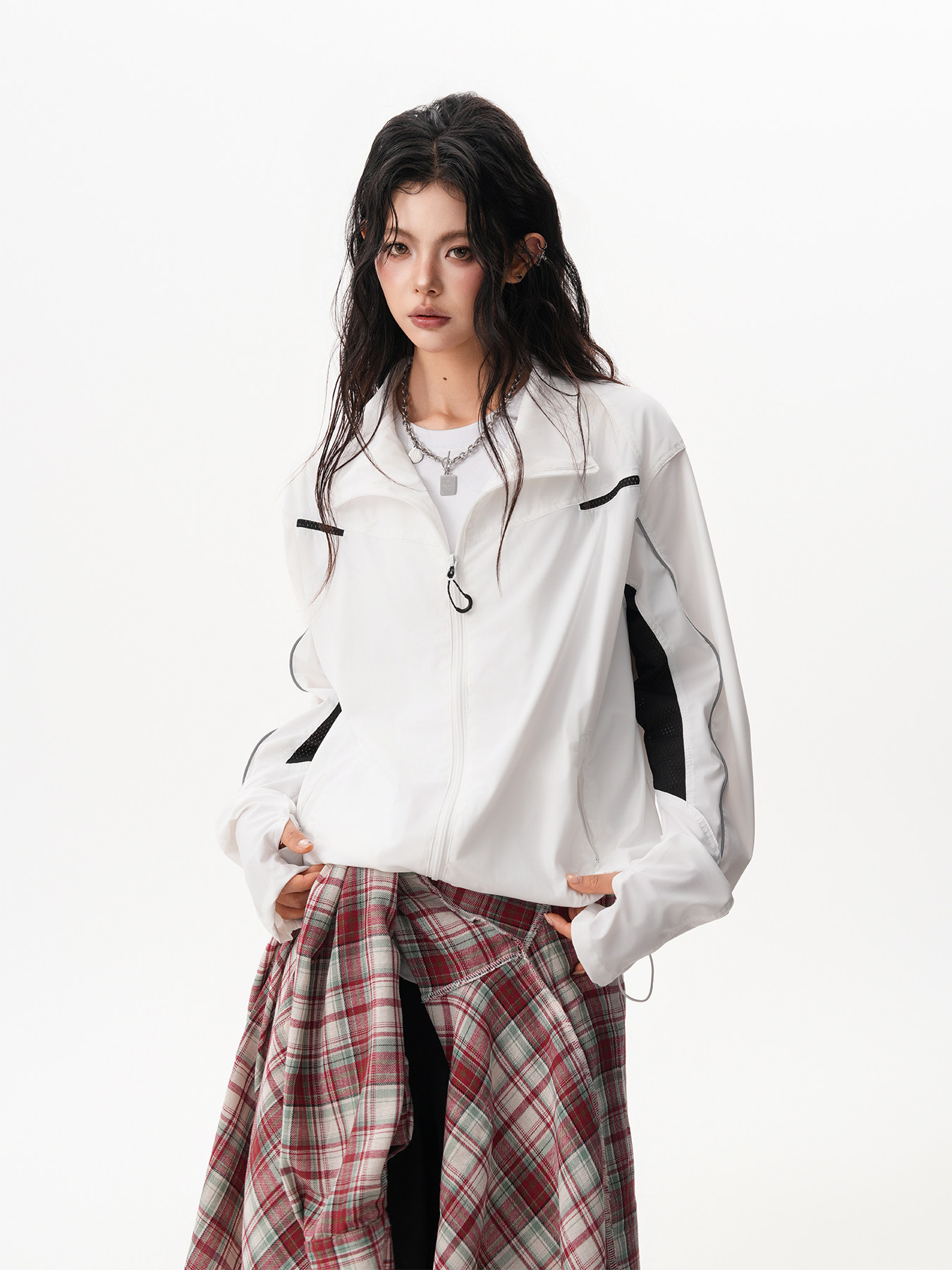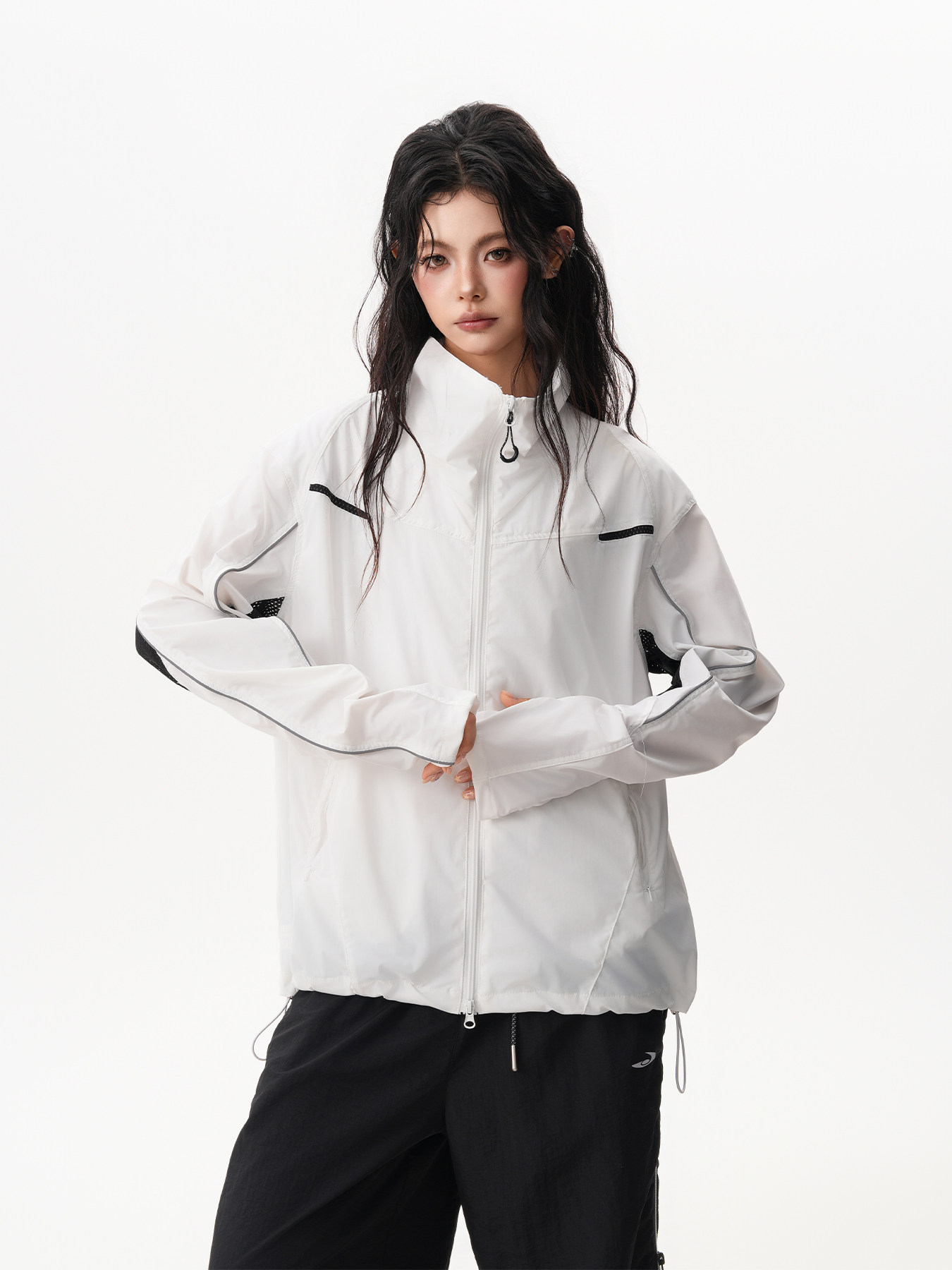 冰絲涼感速乾防曬衣女男2025夏boxy薄款透氣上衣戶外拼接運動外套
