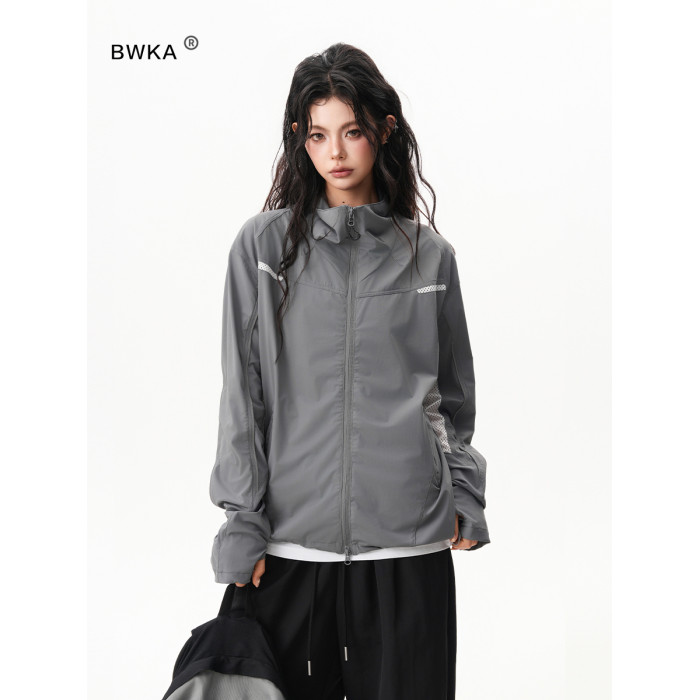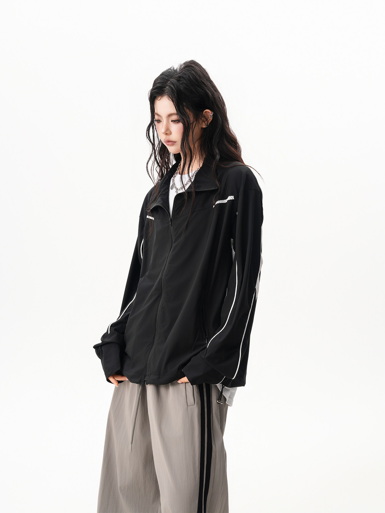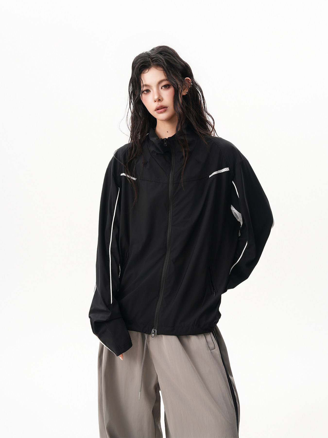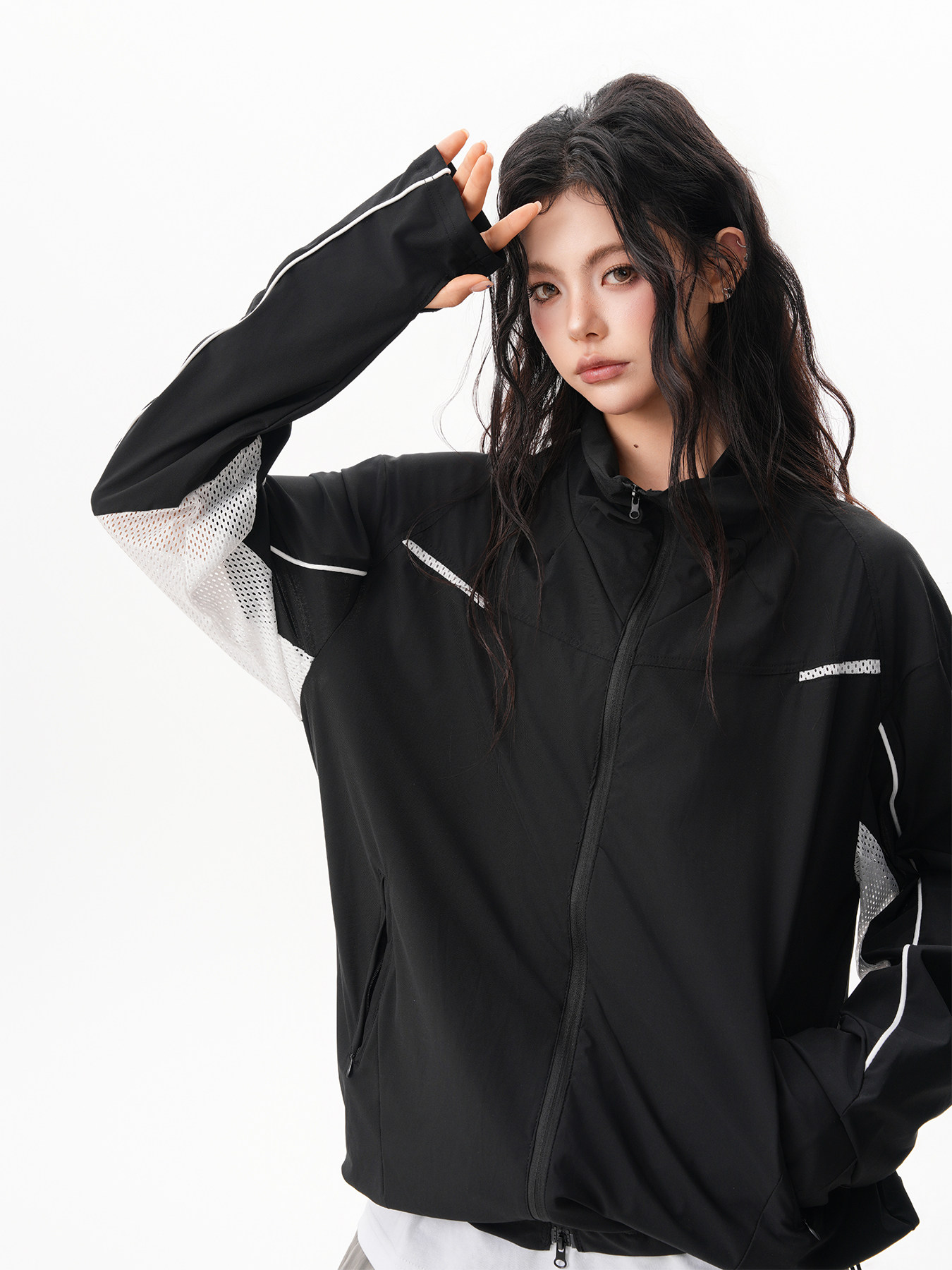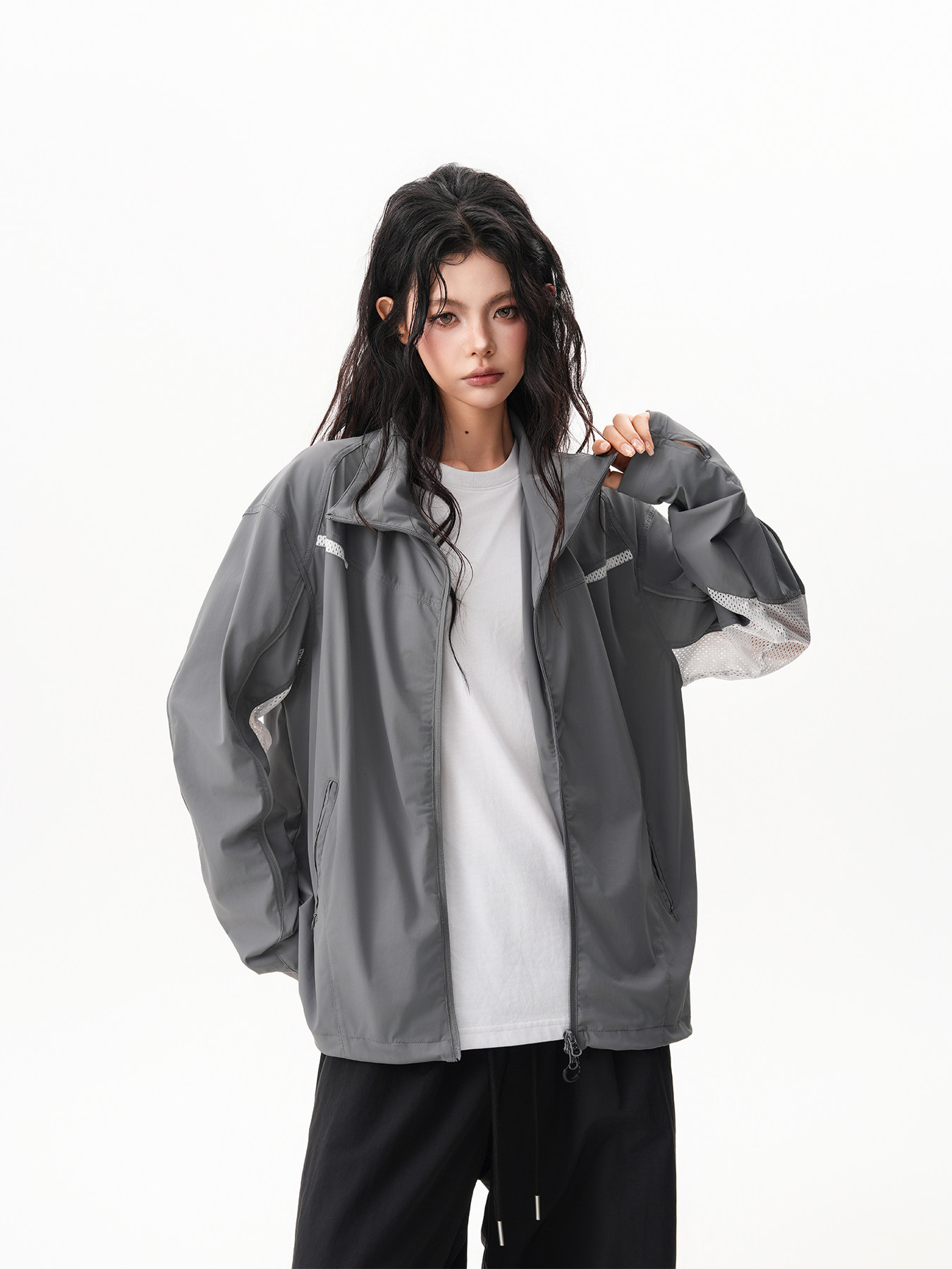 冰絲涼感速乾防曬衣女男2025夏boxy薄款透氣上衣戶外拼接運動外套