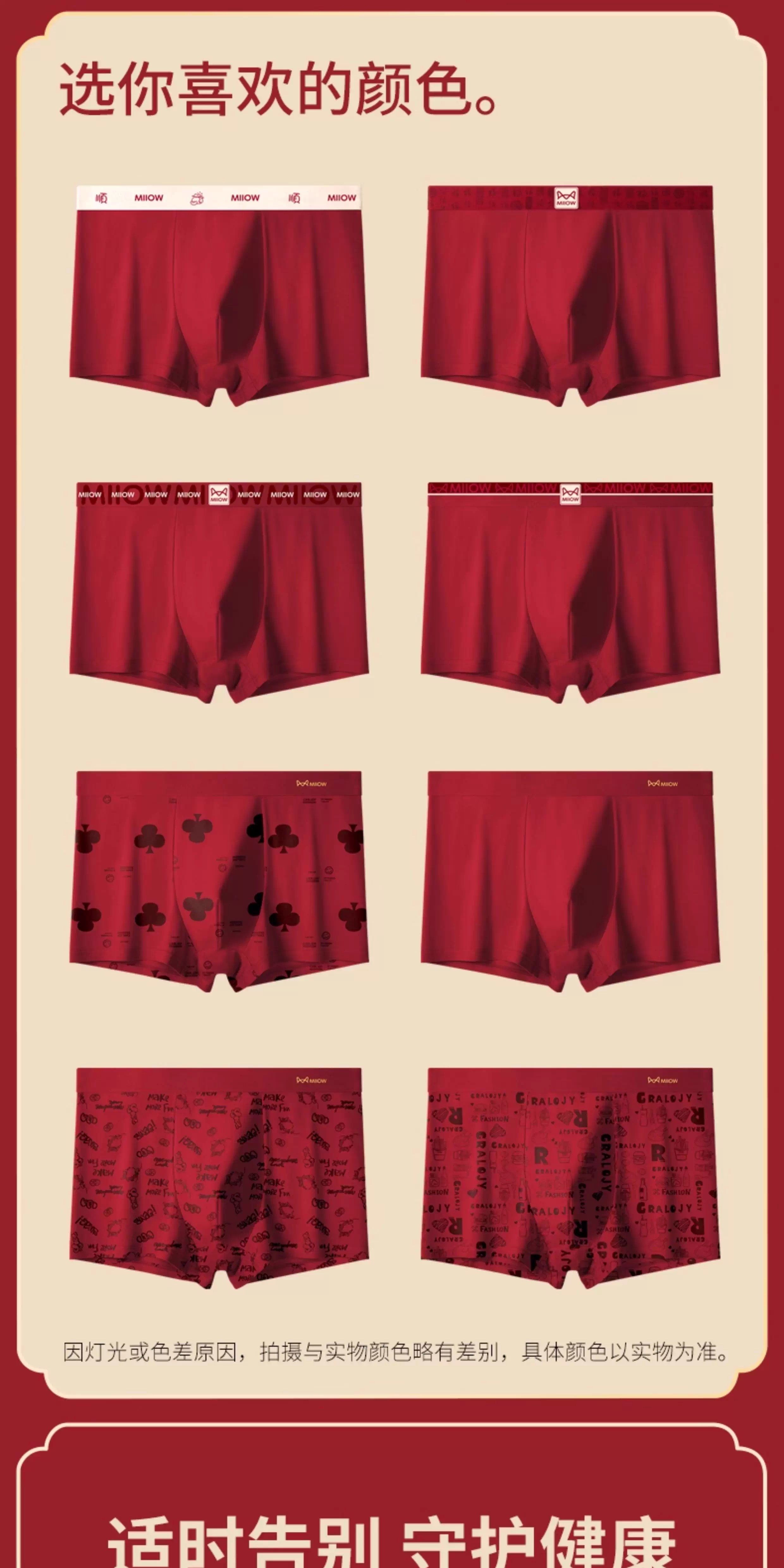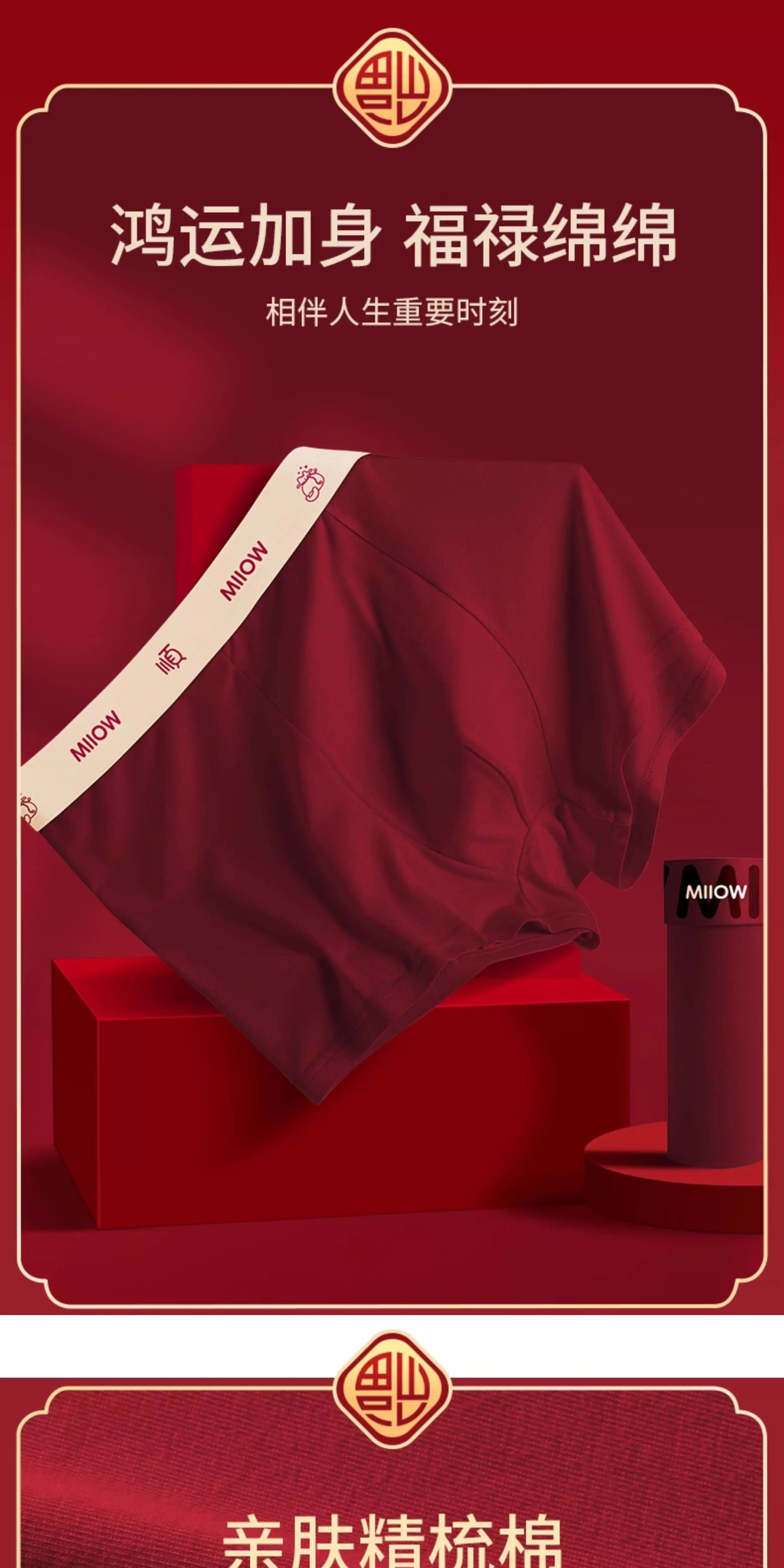 貓人本命年男士內褲紅色2025馬年短褲男款純棉平角四角褲結婚禮物