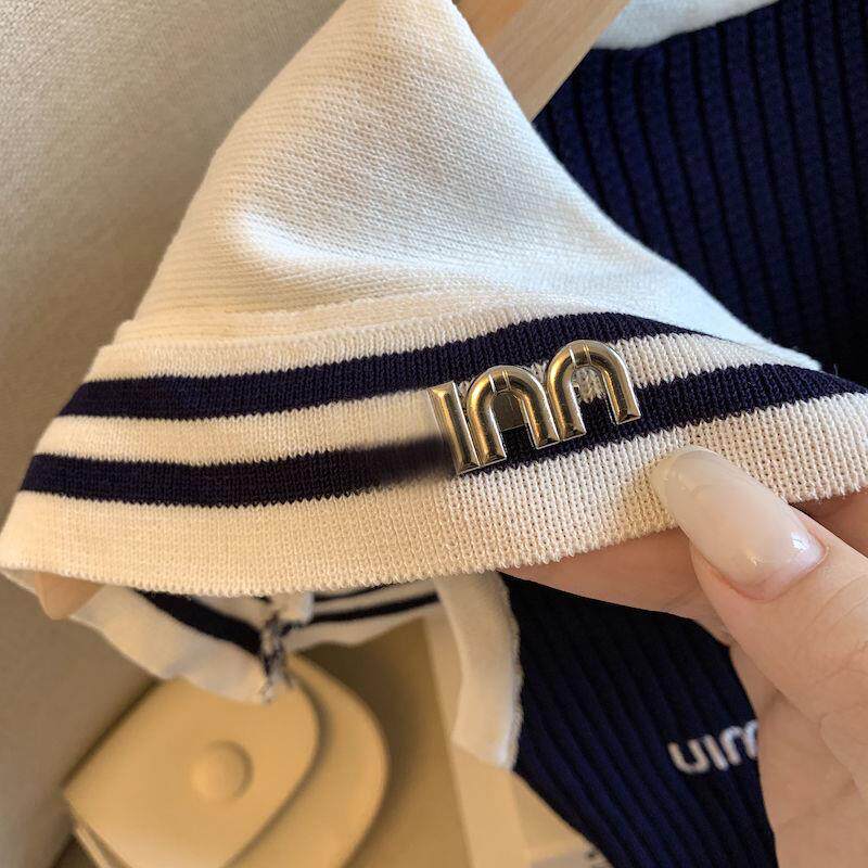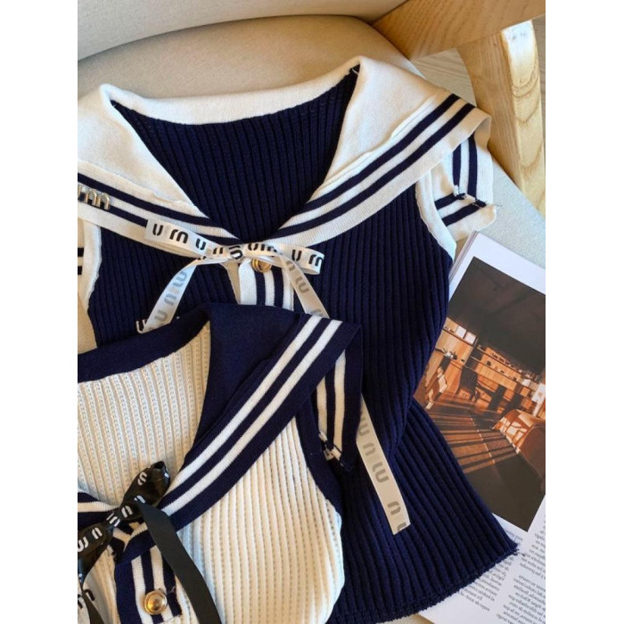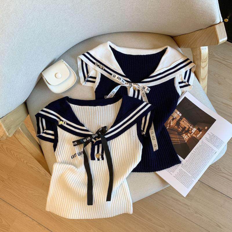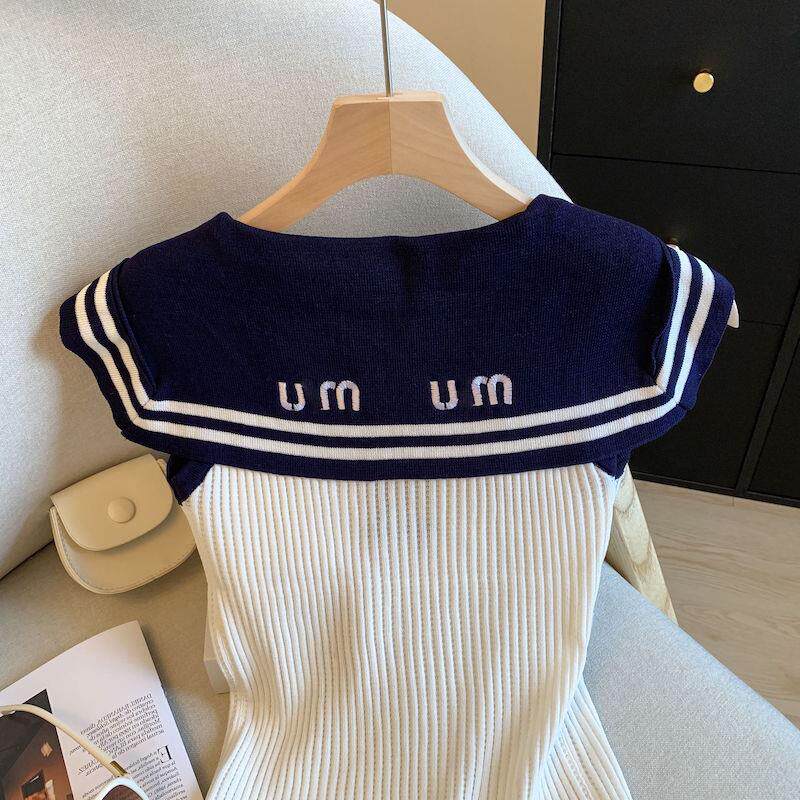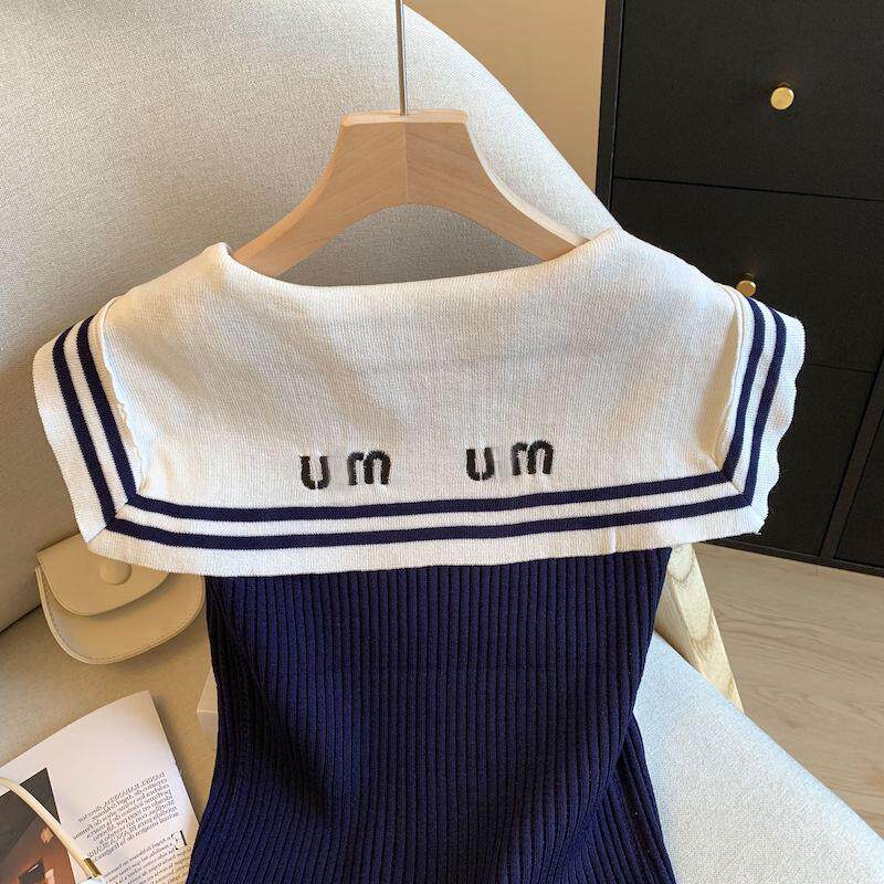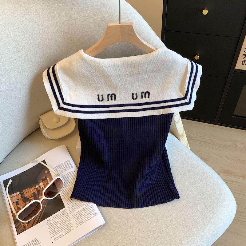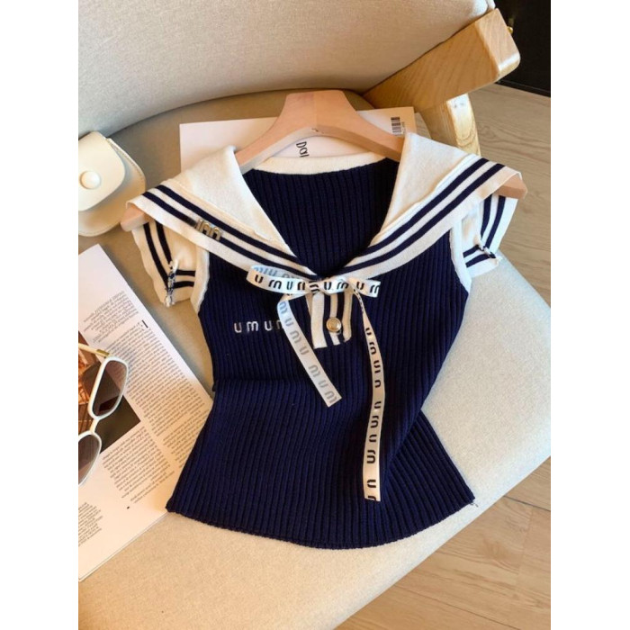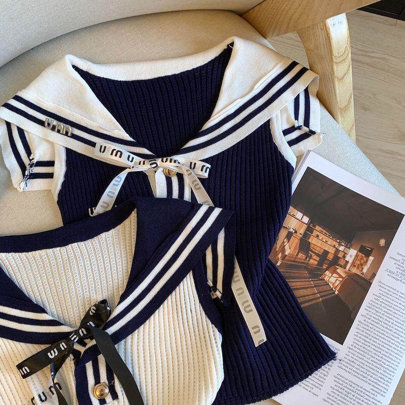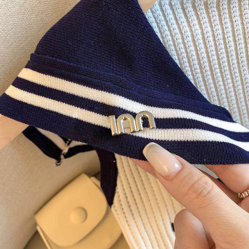專櫃撤廻剪標字母刺綉針織背心女夏季新款蝴蝶結系帶披肩短款上衣