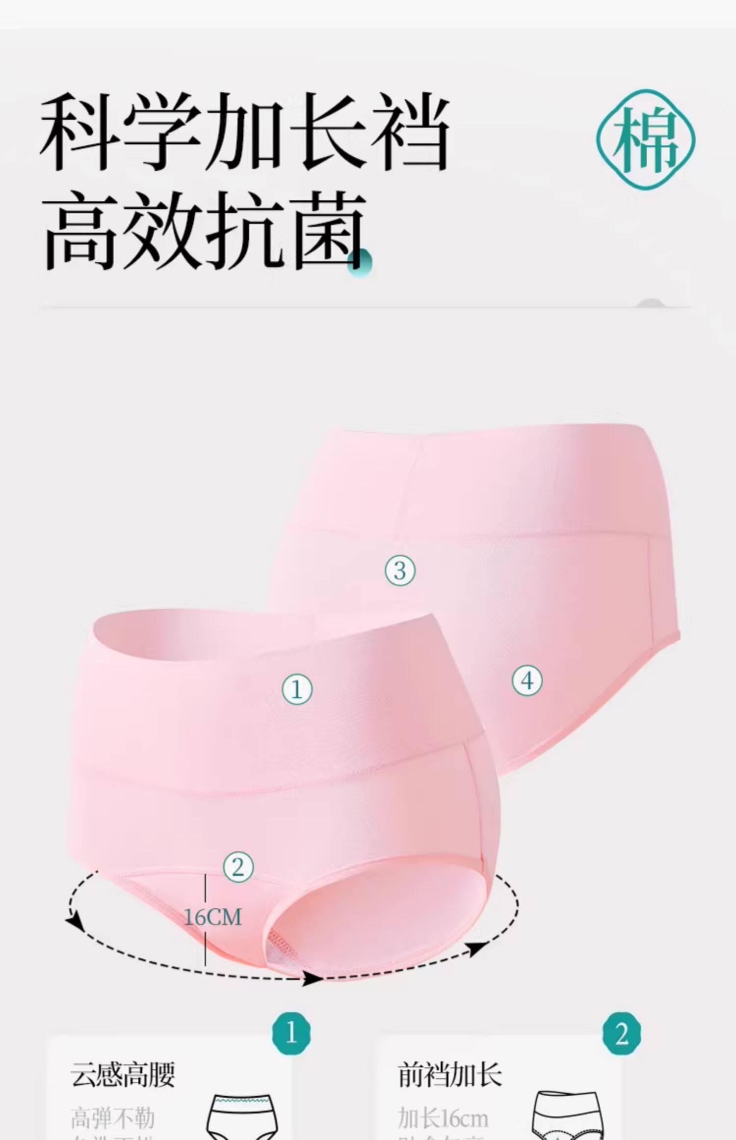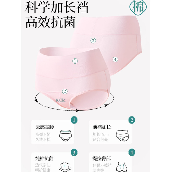 加長襠內褲女士純棉抗菌100%全棉襠高腰收腹無痕少女生三角短褲頭