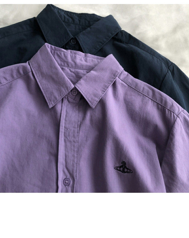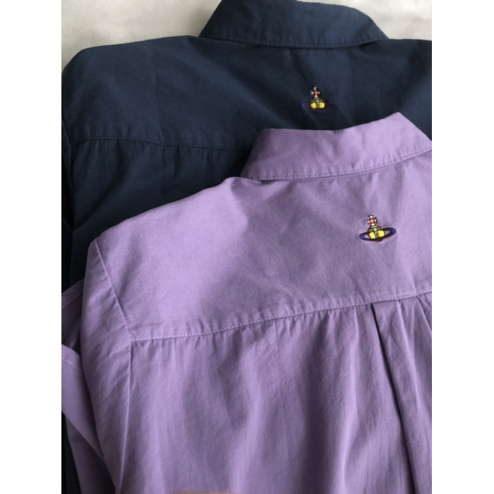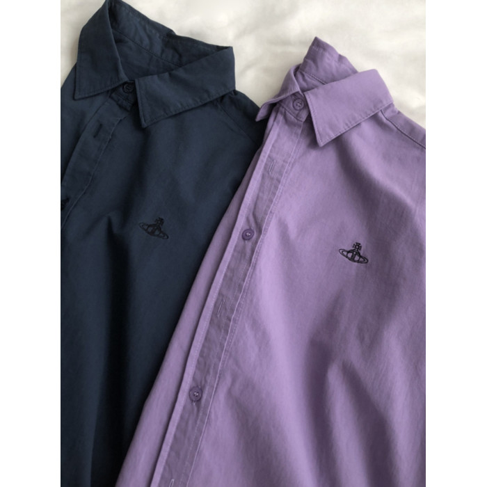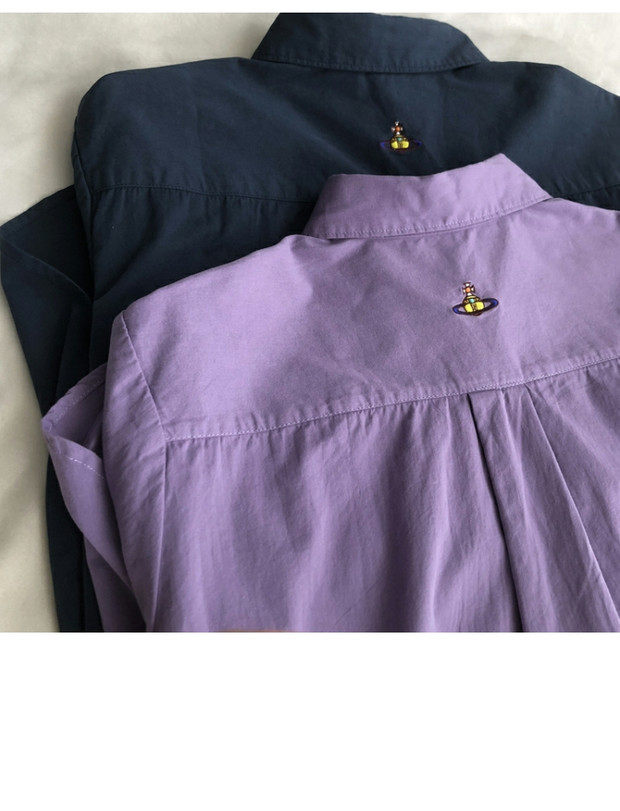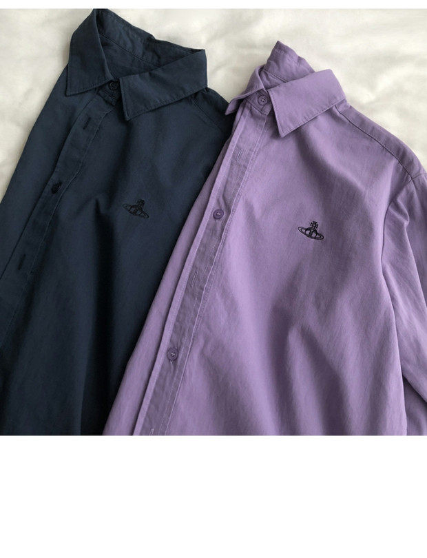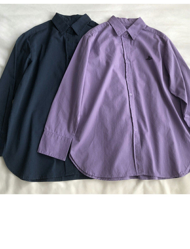 快樂星球 復古小刺綉秋季襯衫女polo百搭通勤韓版長袖開衫襯衣新