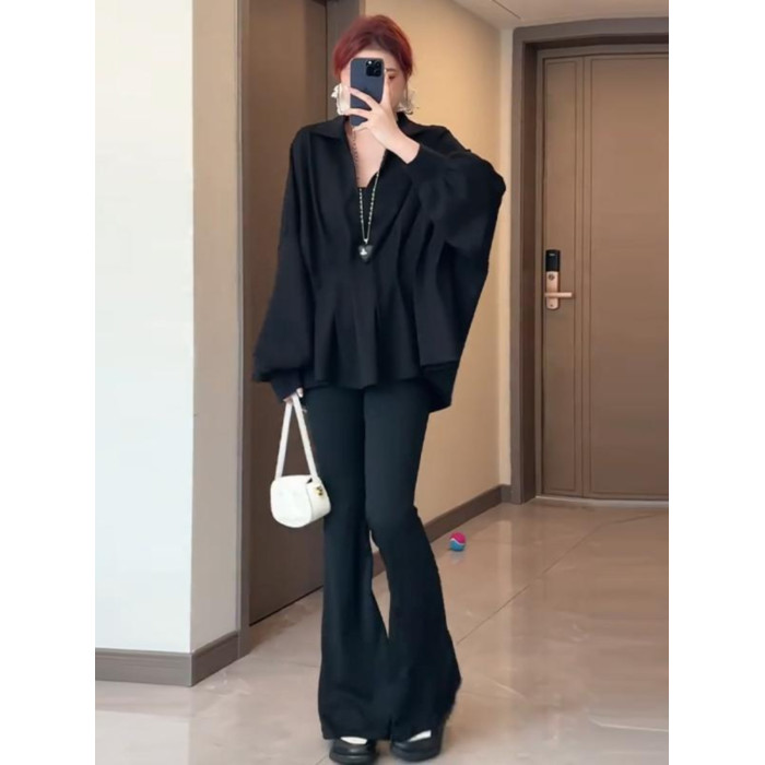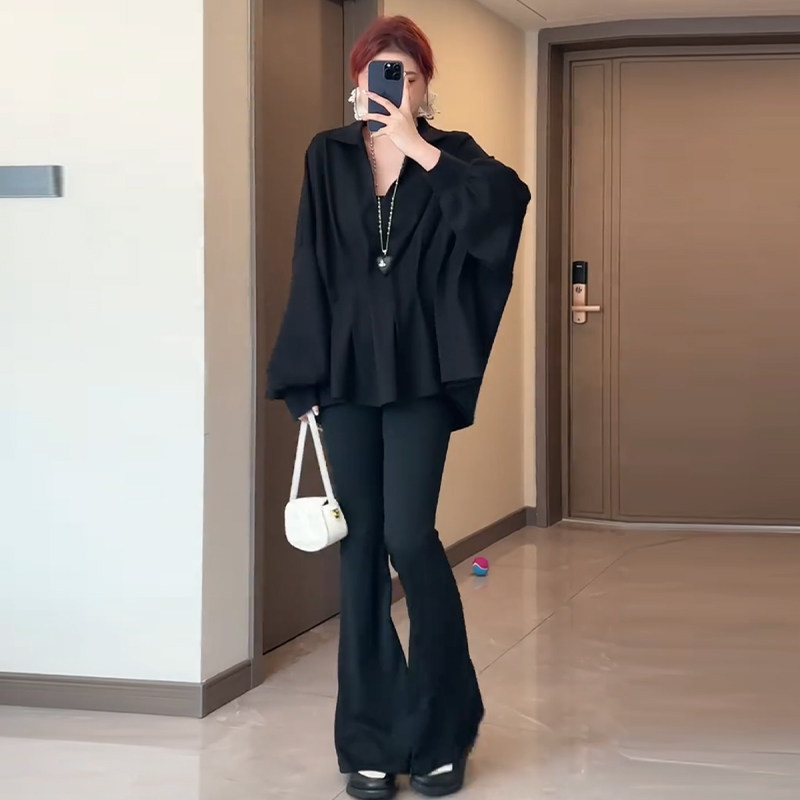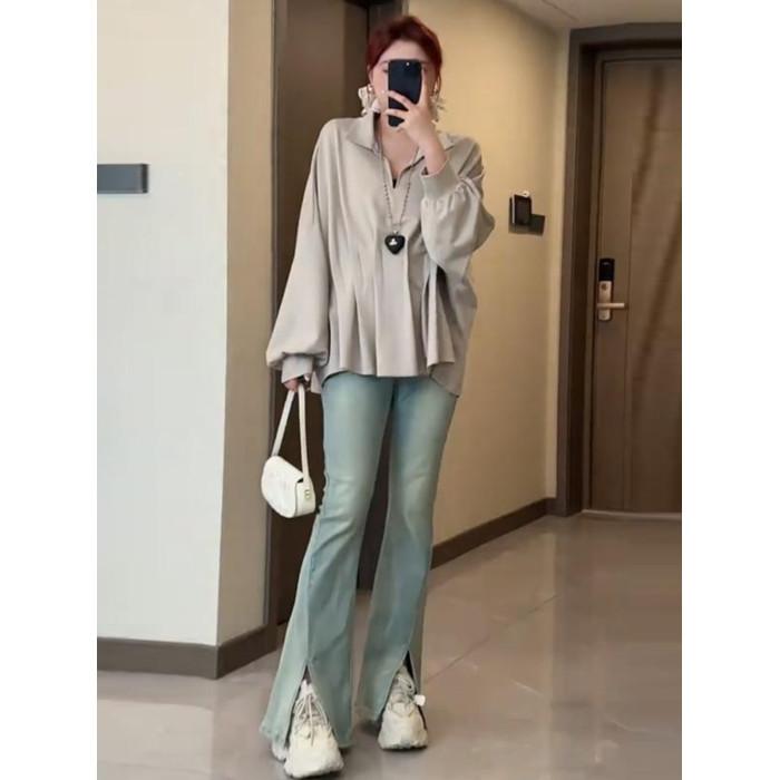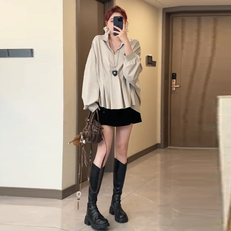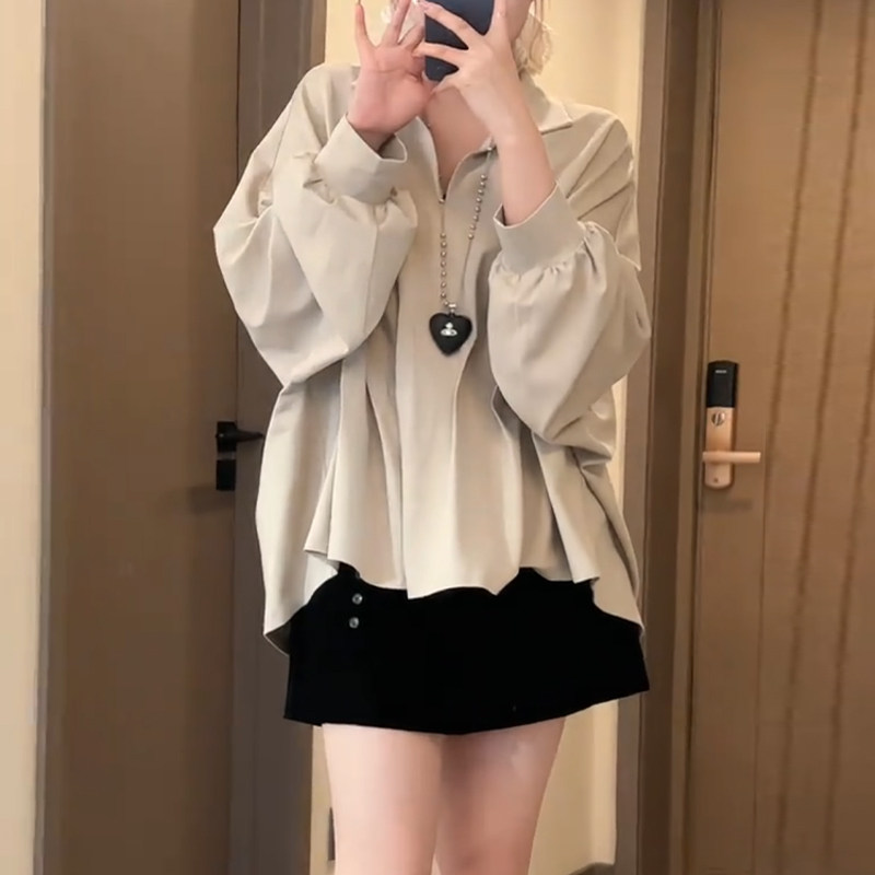 大碼寬鬆遮肉襯衫女春季胖mm顯瘦襯衣設計感小衆法式赫本風上衣