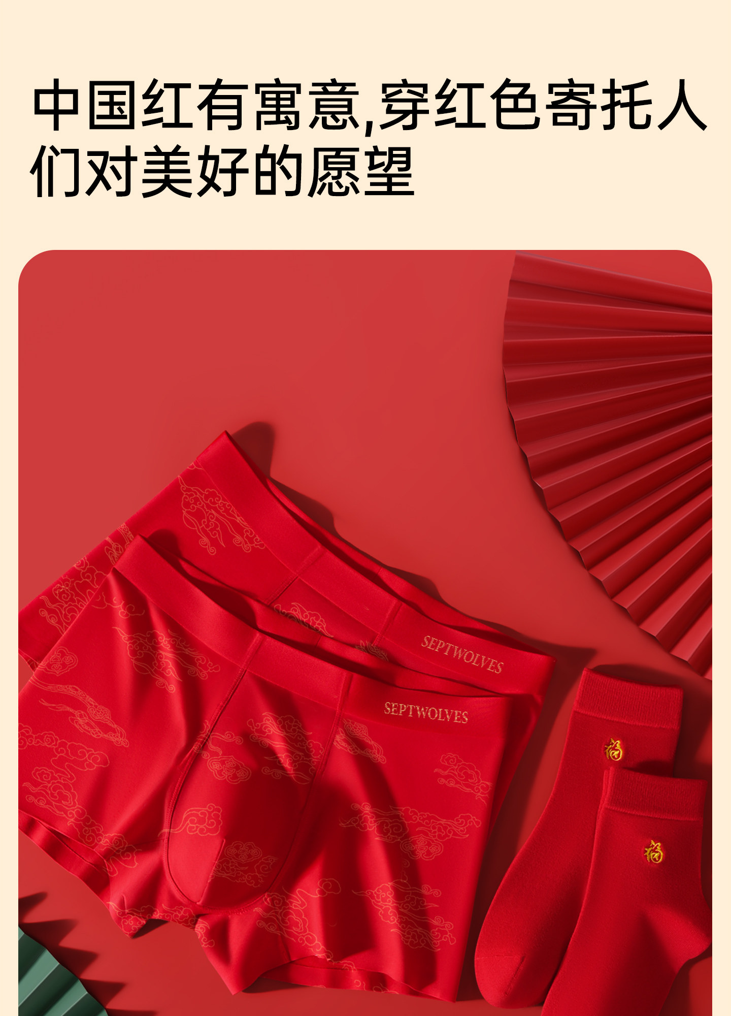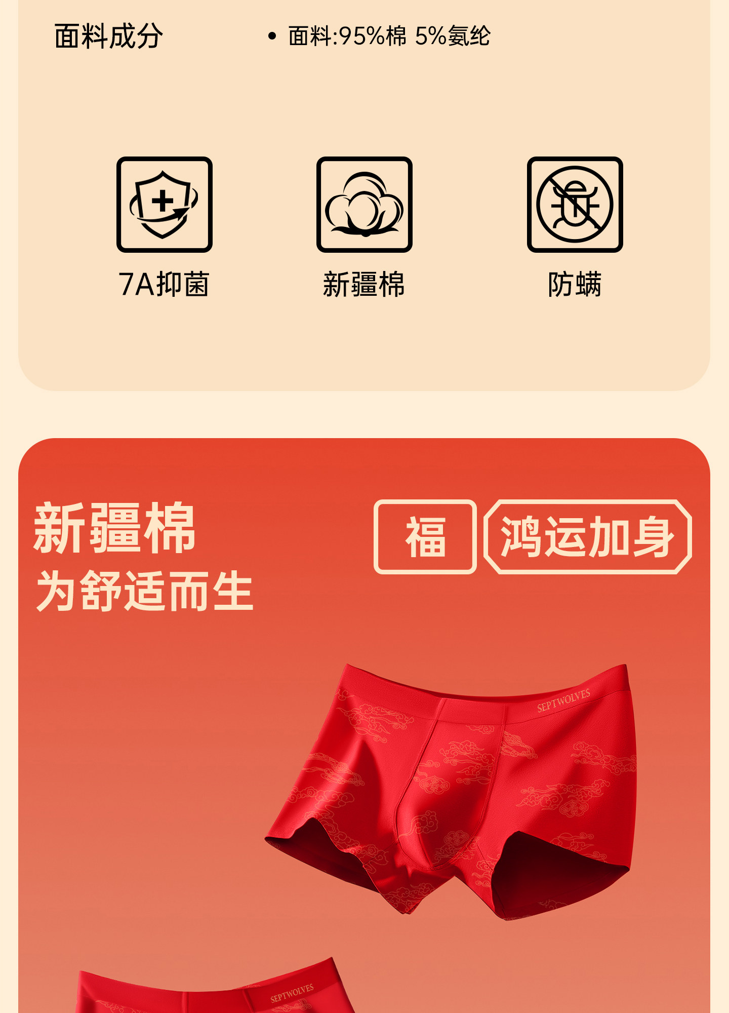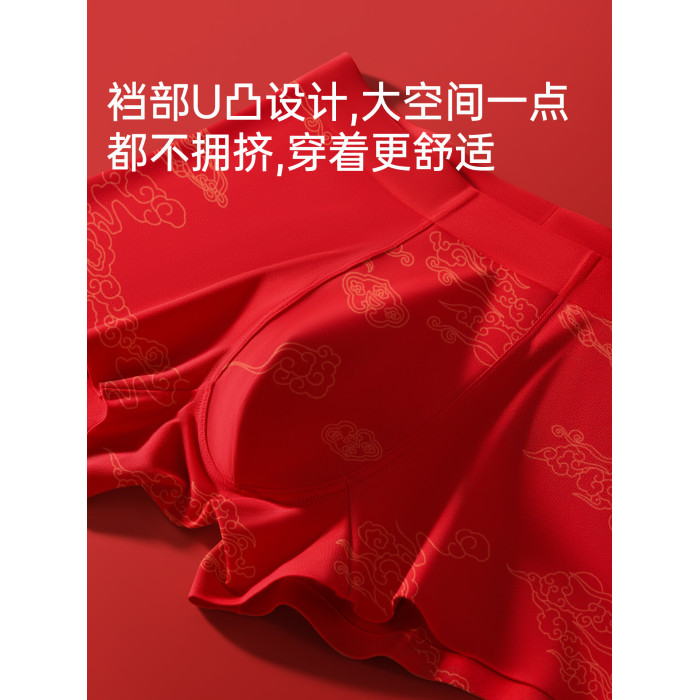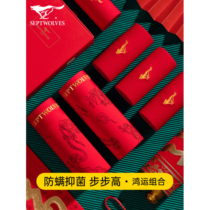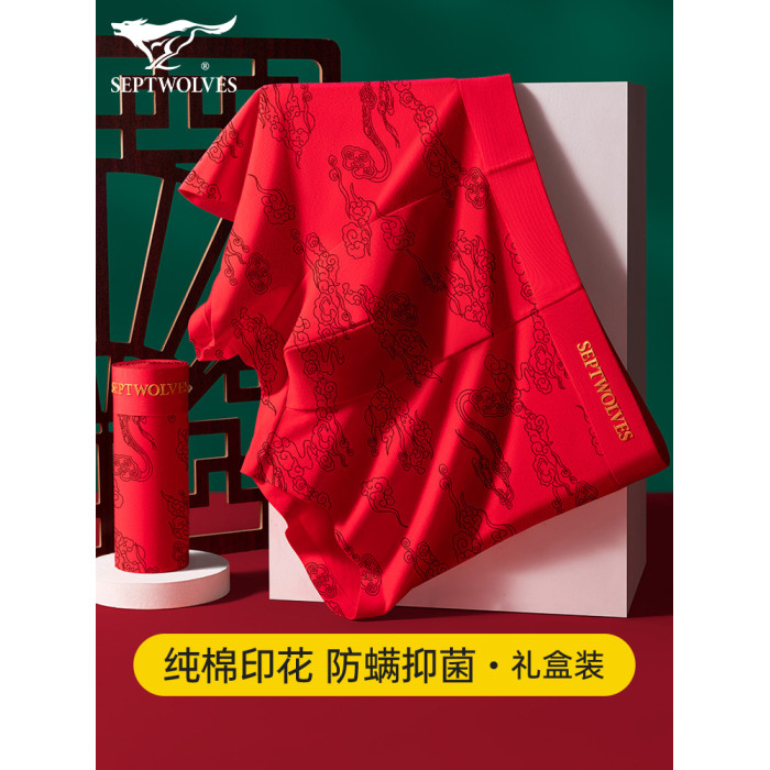 七匹狼本命年禮物男士純棉短褲頭男款四角紅色內褲男生屬馬年新款