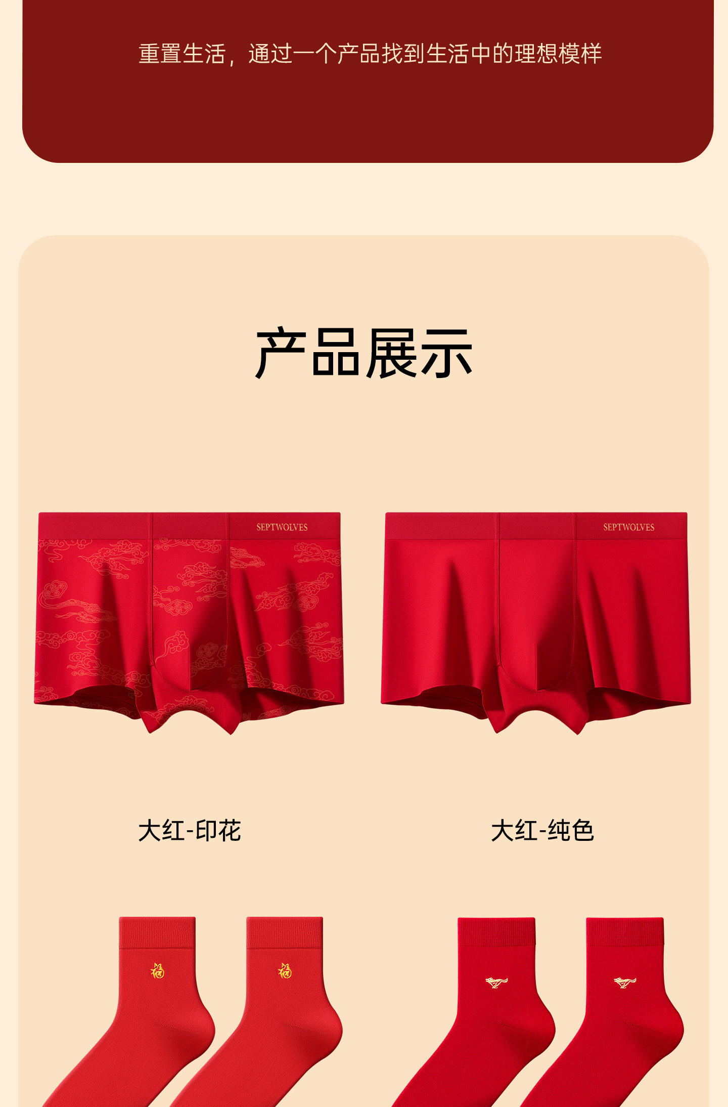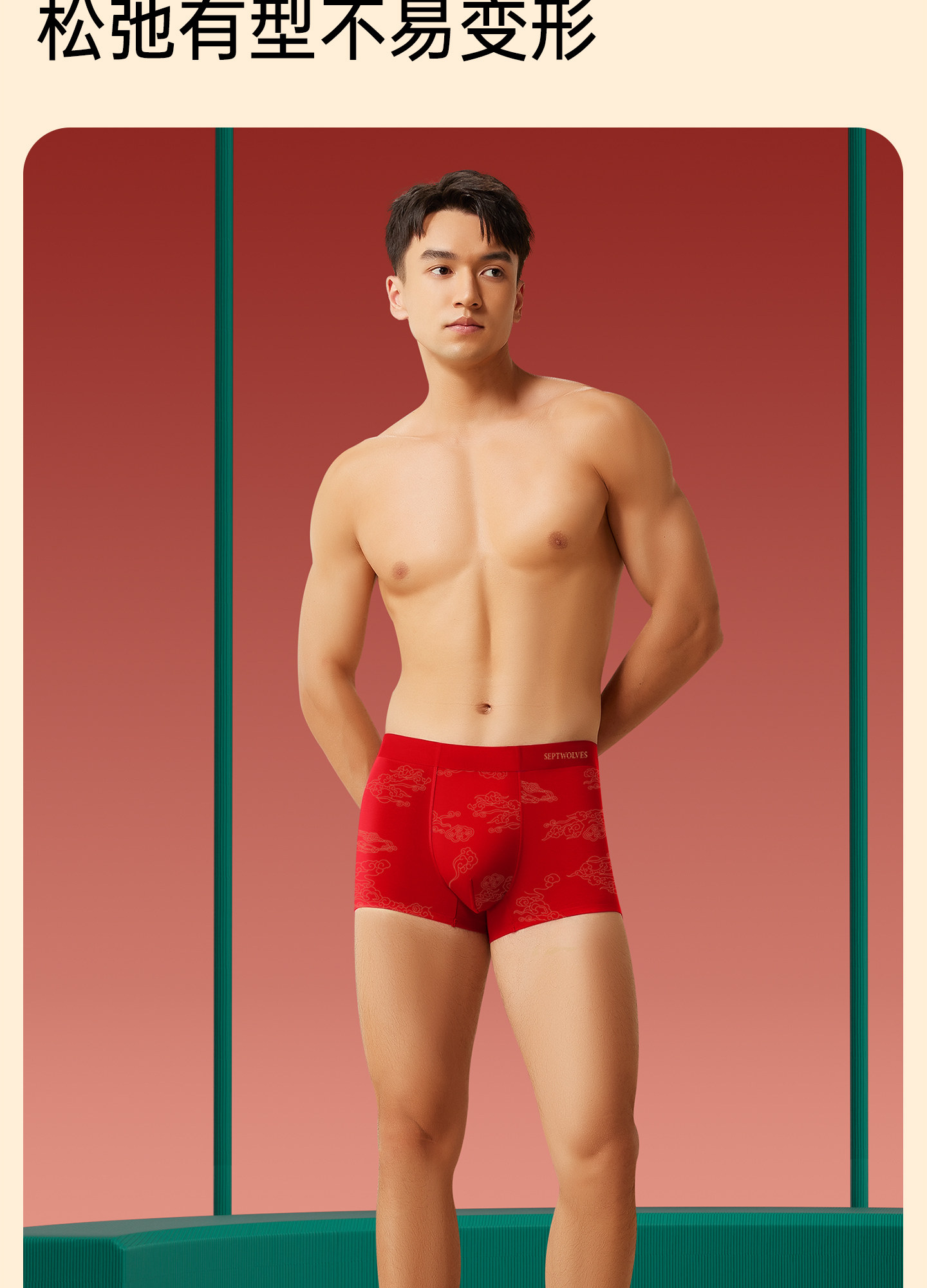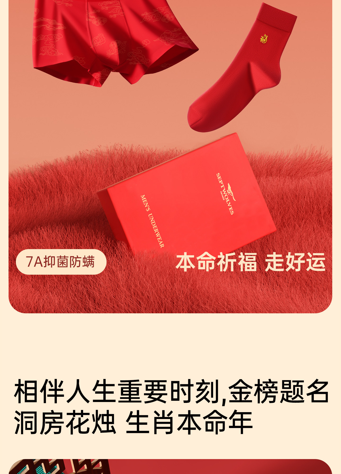 七匹狼本命年禮物男士純棉短褲頭男款四角紅色內褲男生屬馬年新款