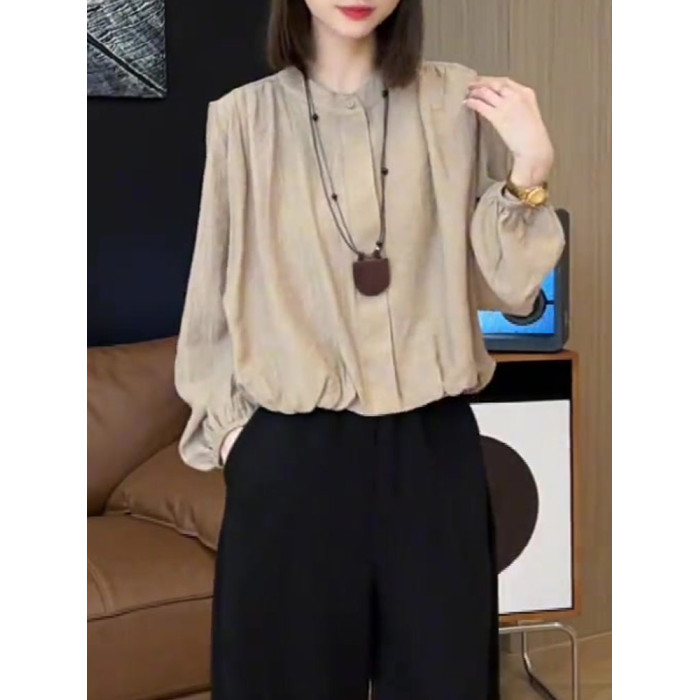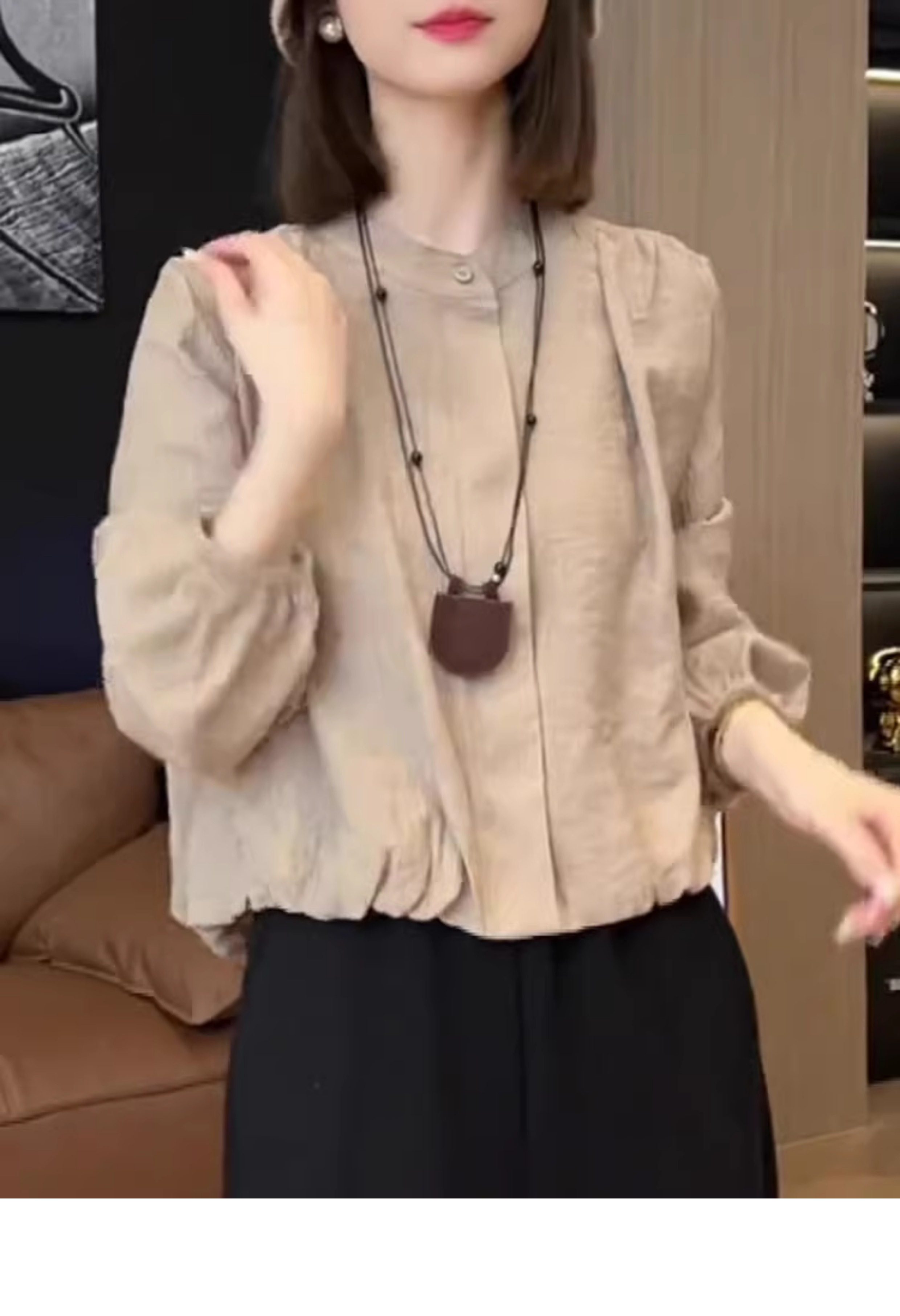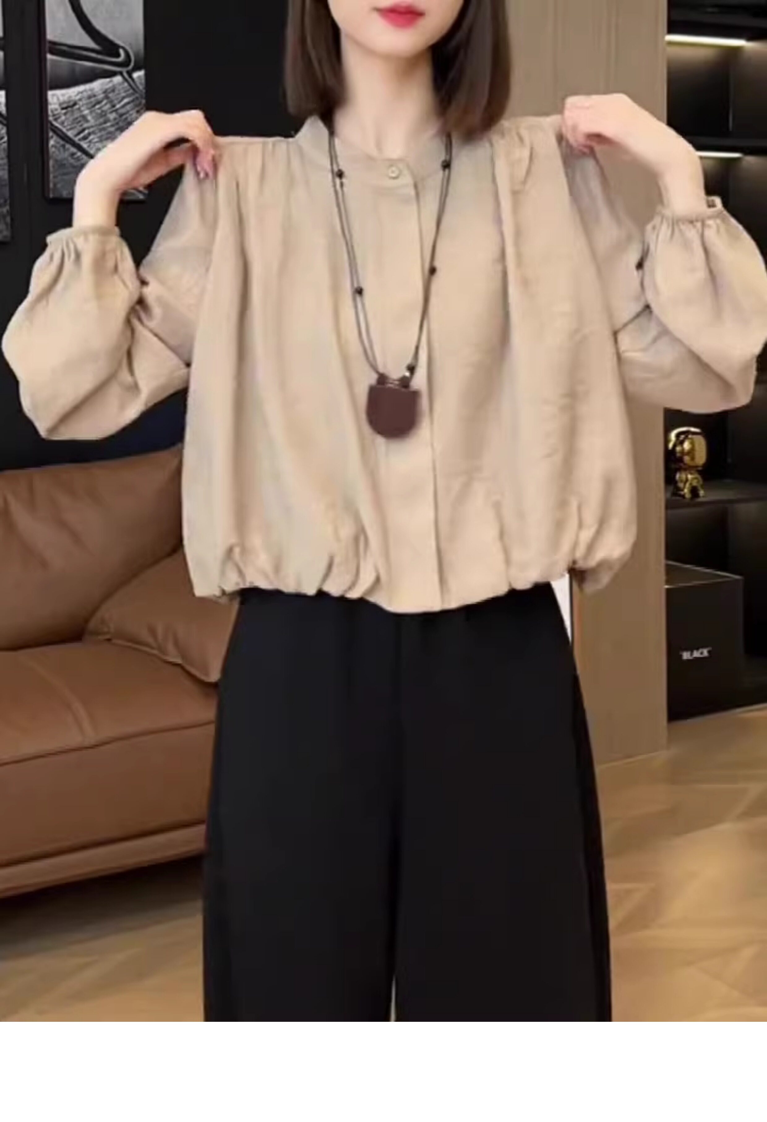 2026年新款早秋季薄款設計感上衣法式氣質大碼顯瘦寬鬆長袖襯衫女