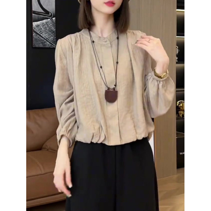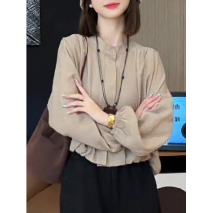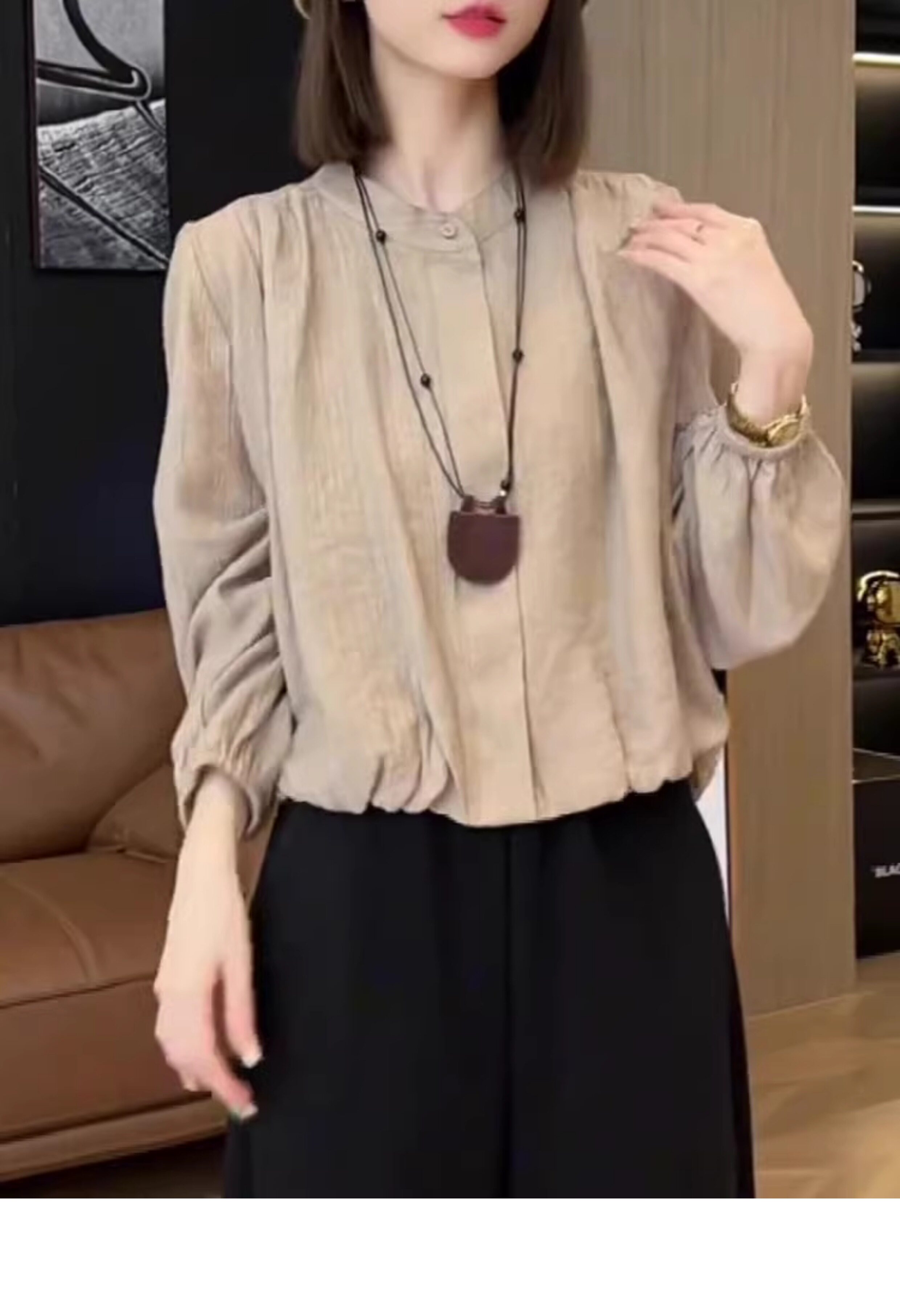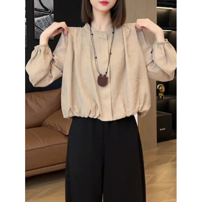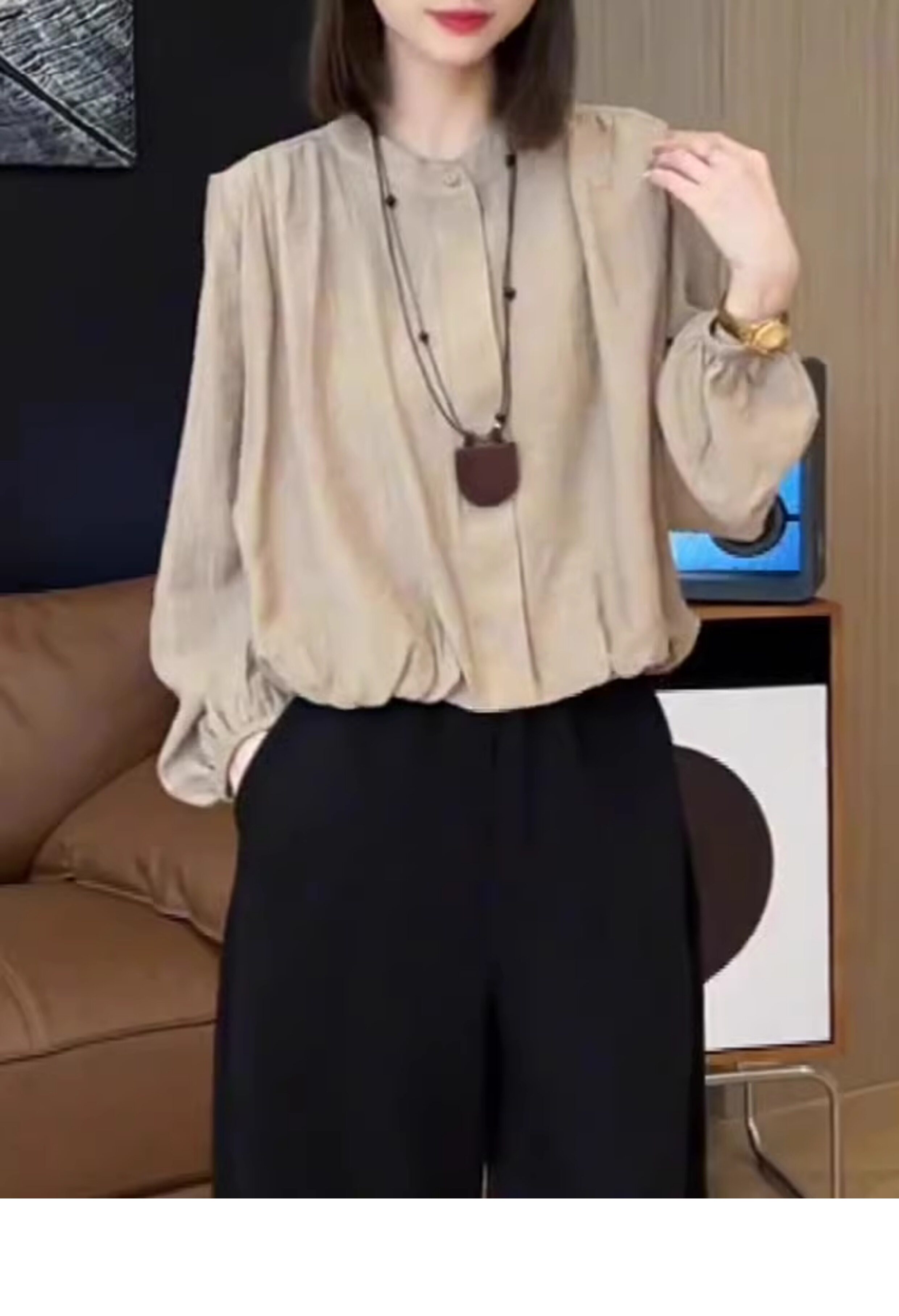 2026年新款早秋季薄款設計感上衣法式氣質大碼顯瘦寬鬆長袖襯衫女