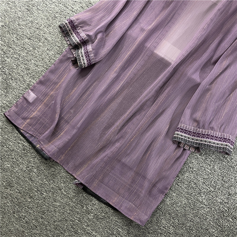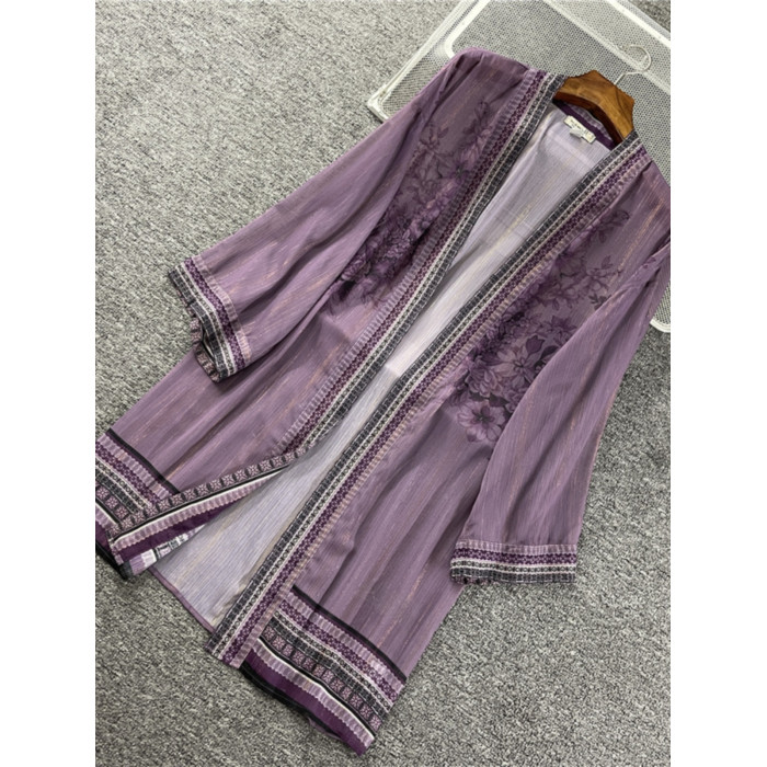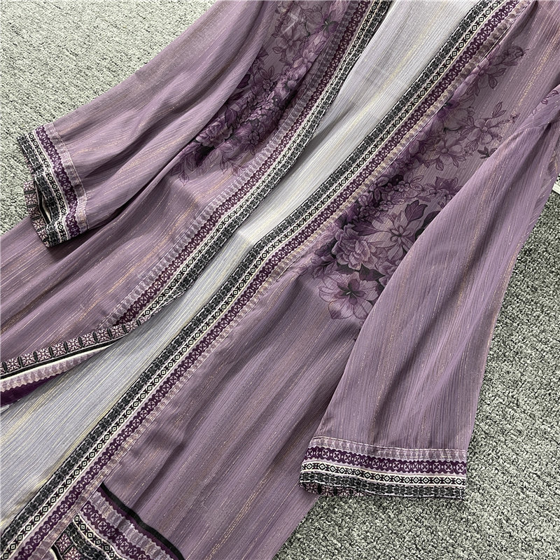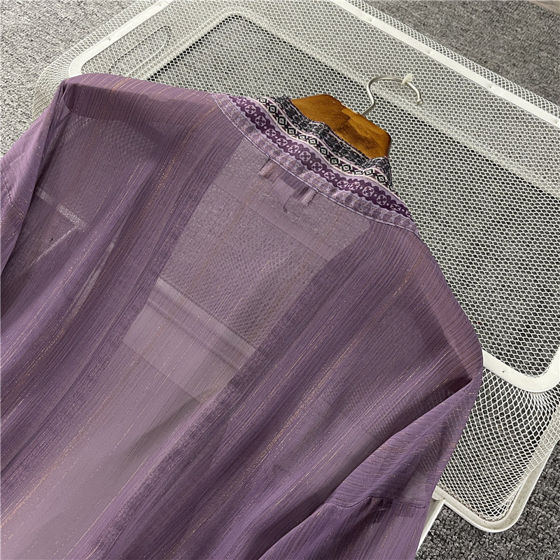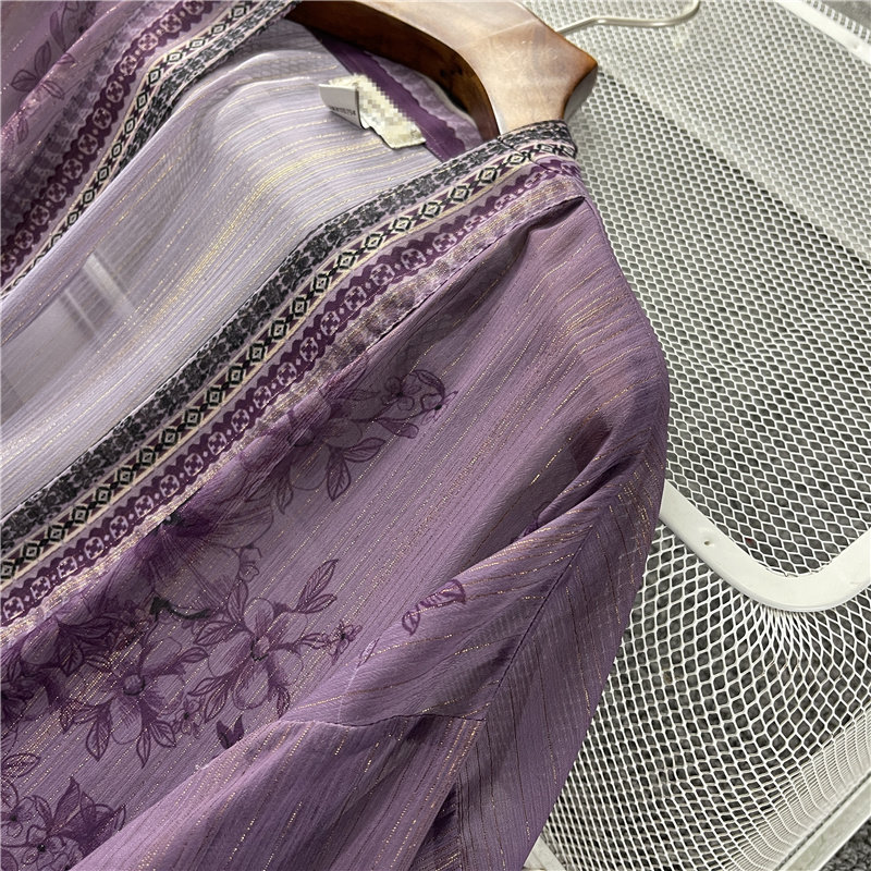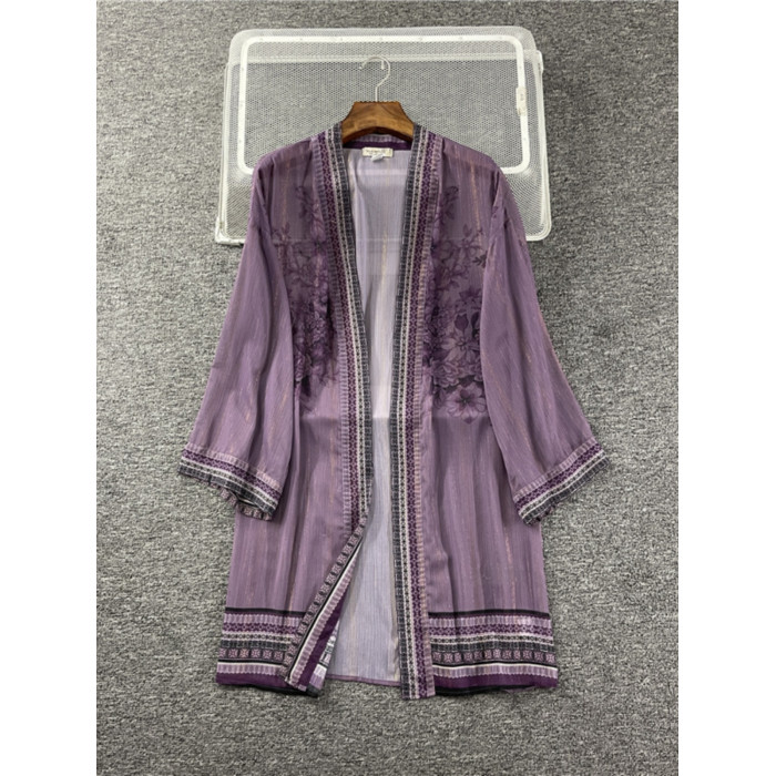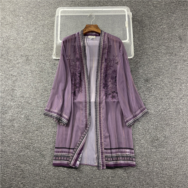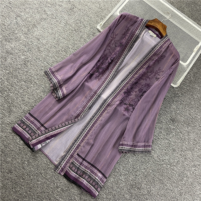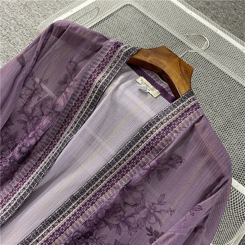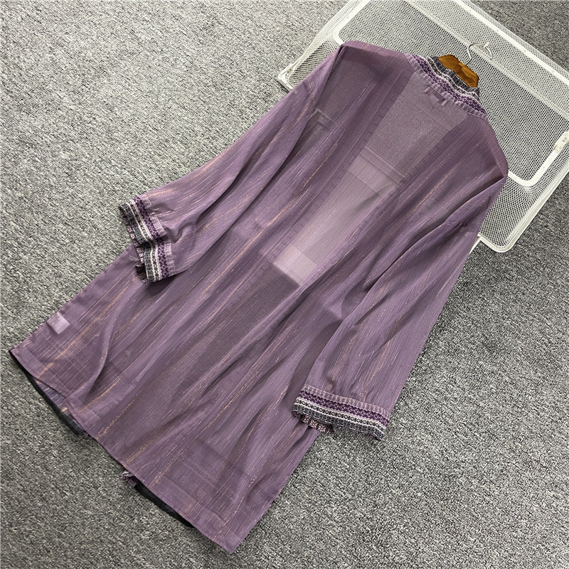 春夏季時尚百搭大碼金絲線印花圖紋無釦中長款雪紡外披