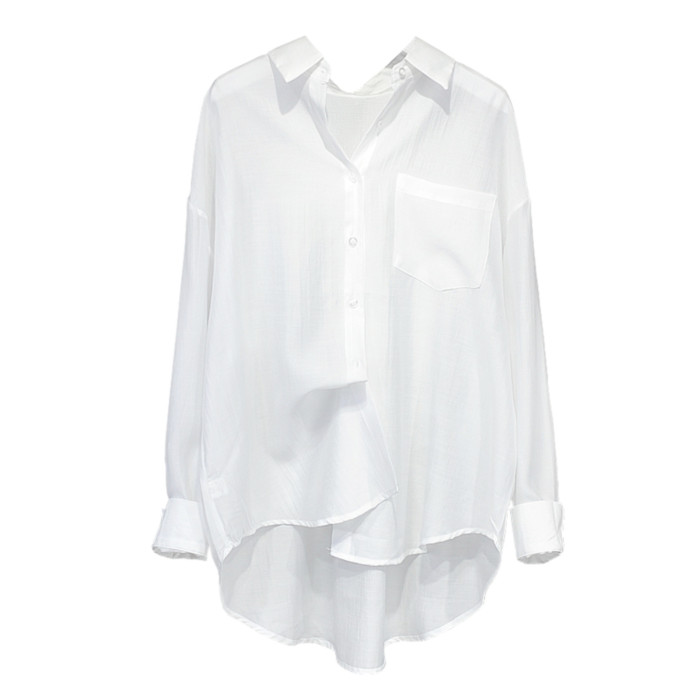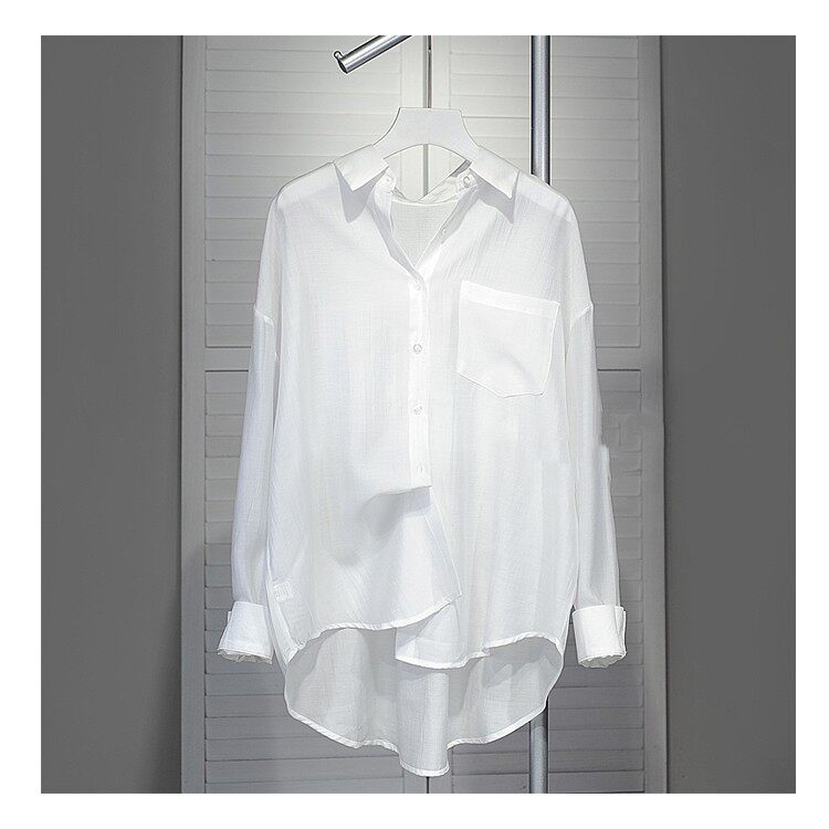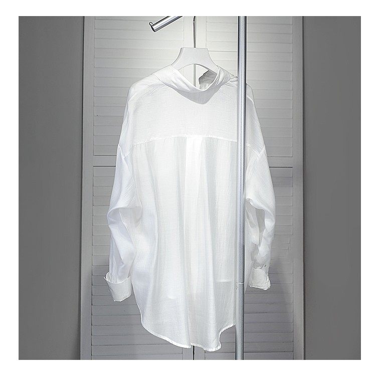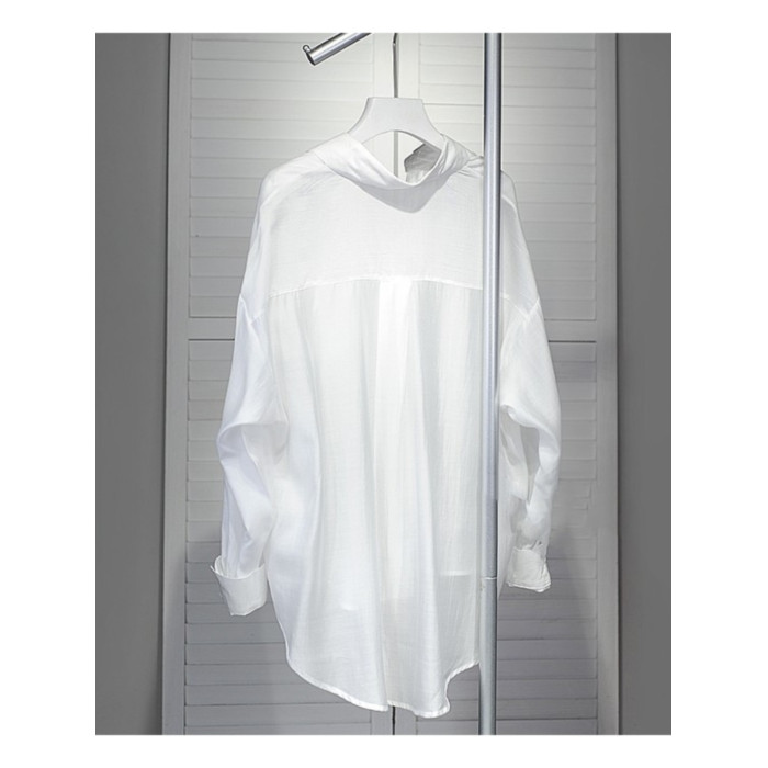 高級垂感白襯衫女夏季新款寬鬆薄款天絲防曬襯衣法式冰絲開衫外套