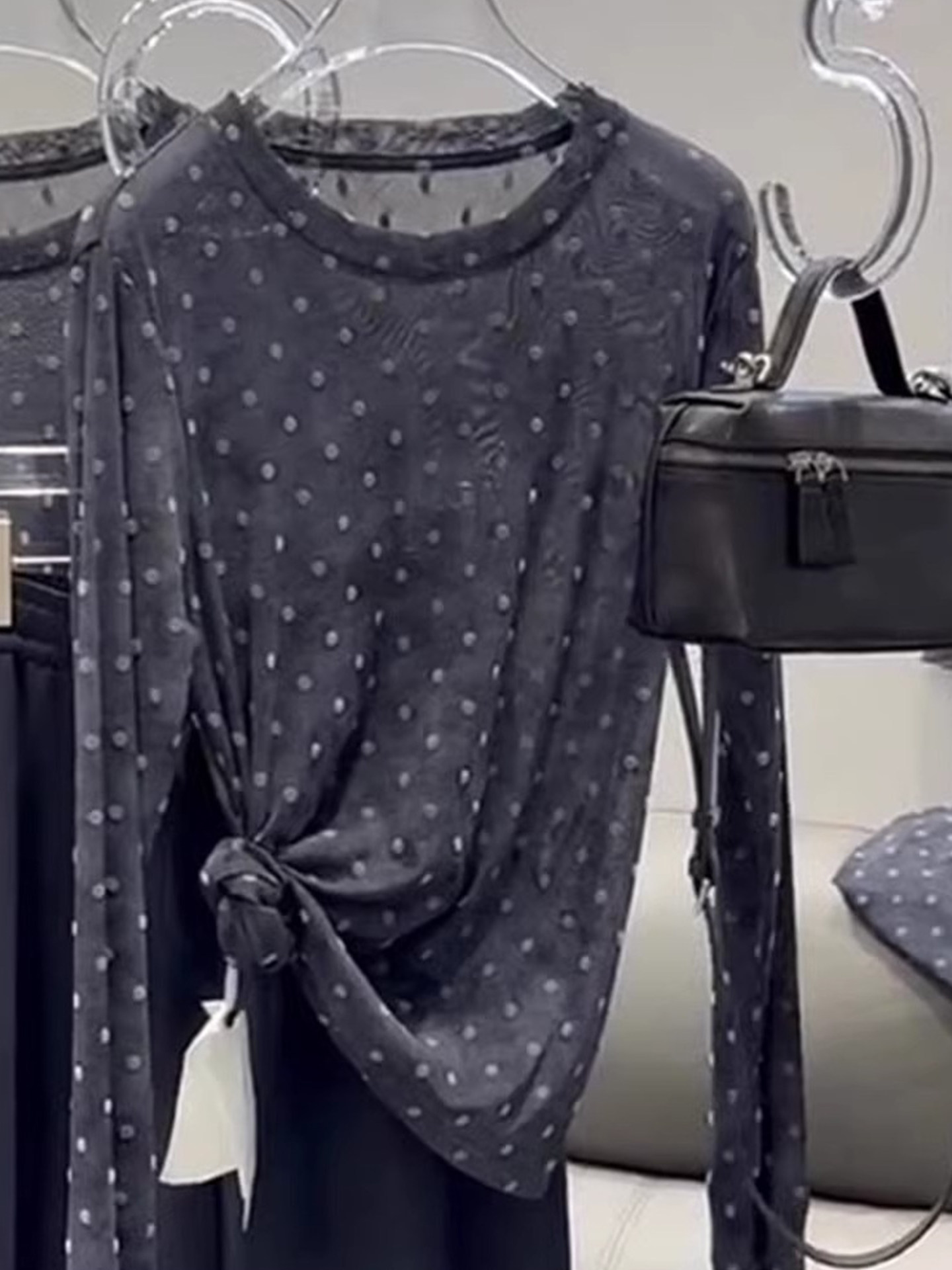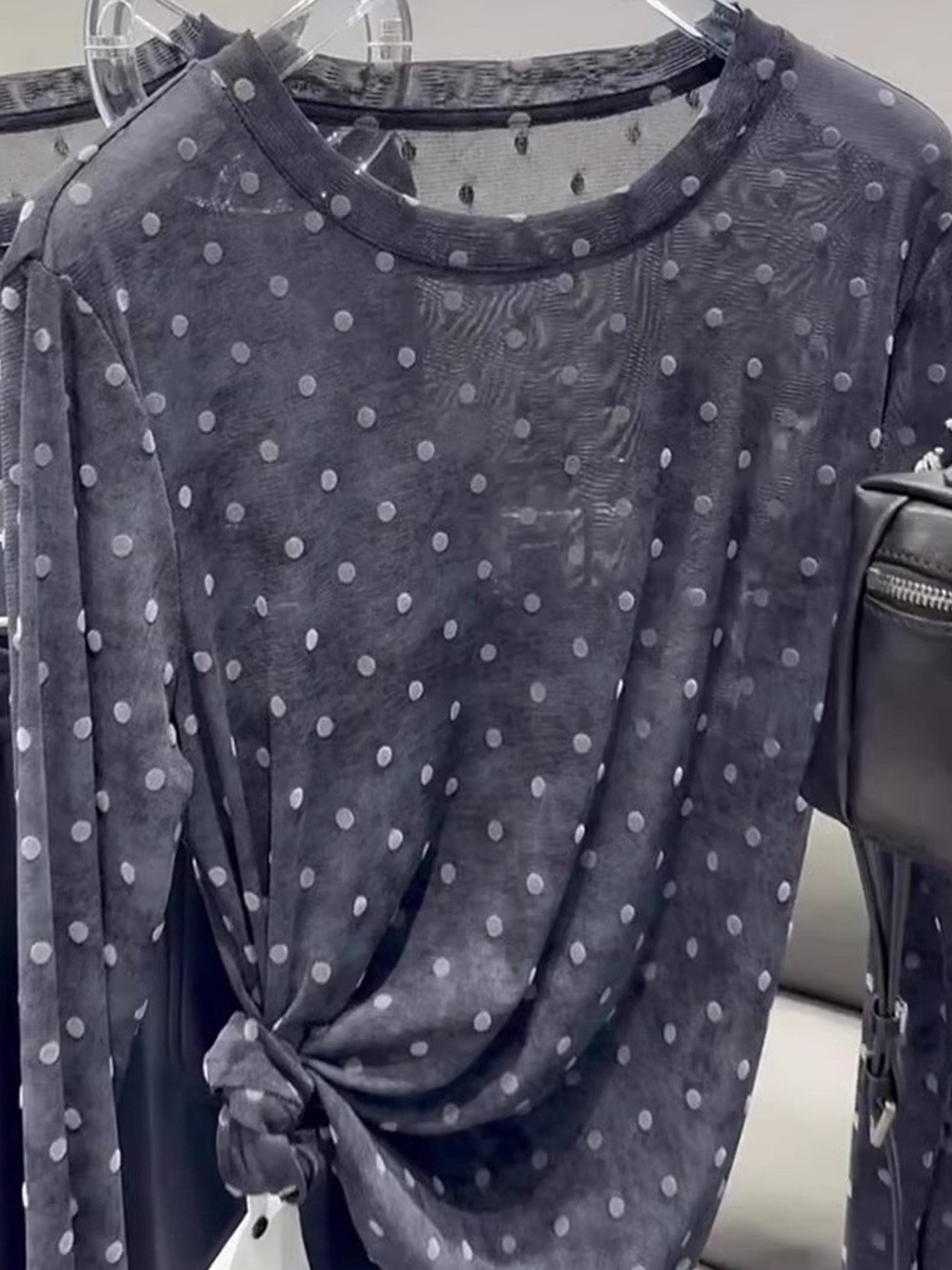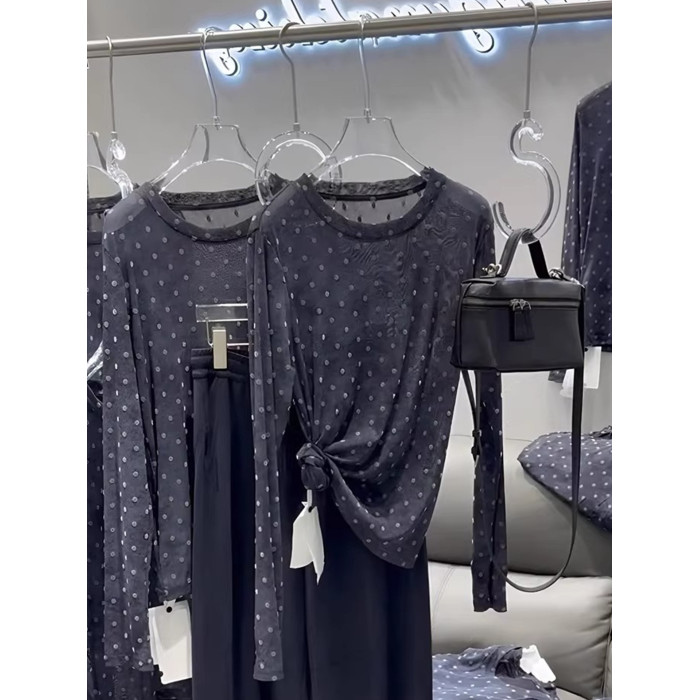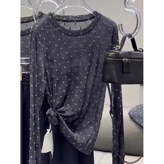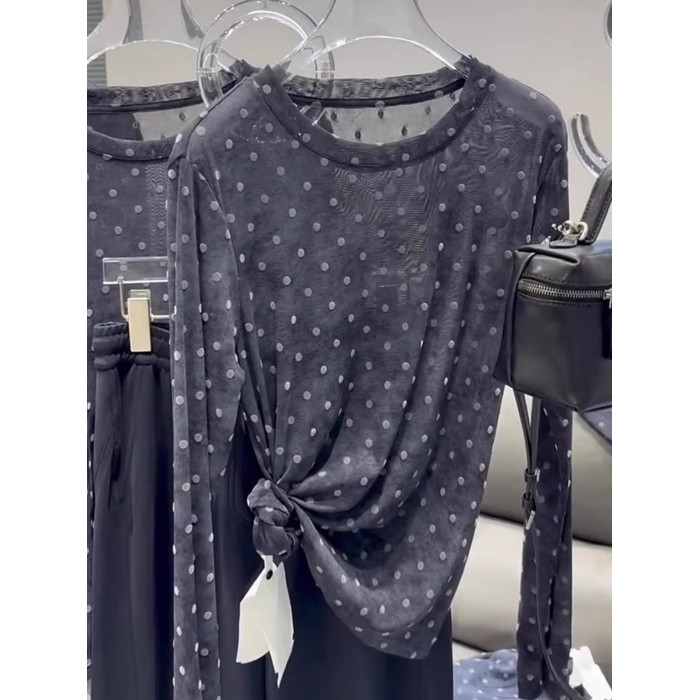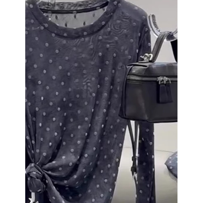 輕薄設計感波點微透防曬罩衫t恤2025夏季顯瘦精緻減齡長袖針織衫