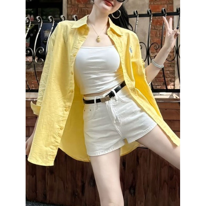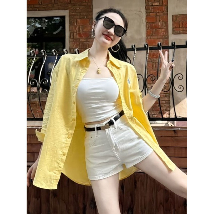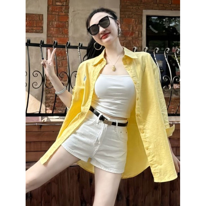 黃色防曬襯衫外套薄款2026輕奢高級感夏日多巴胺寬鬆慵懶感上衣女