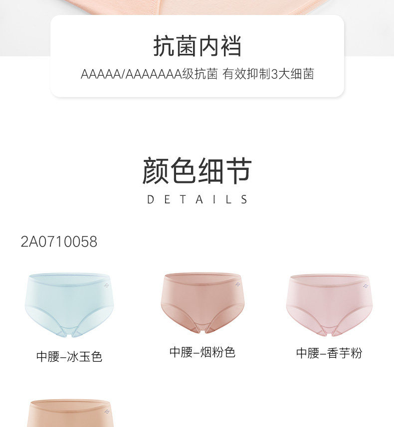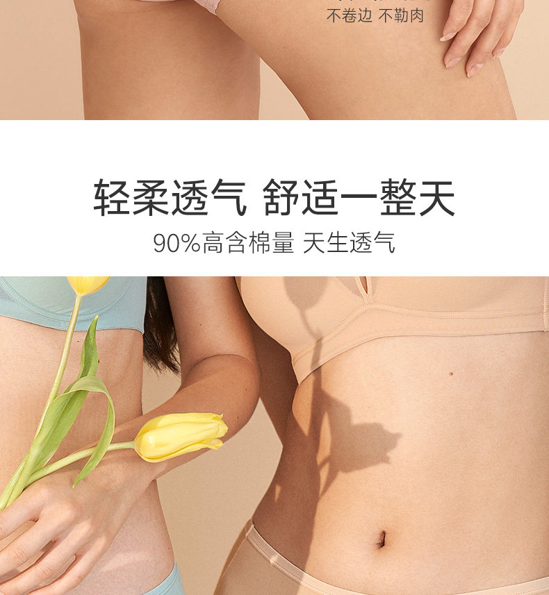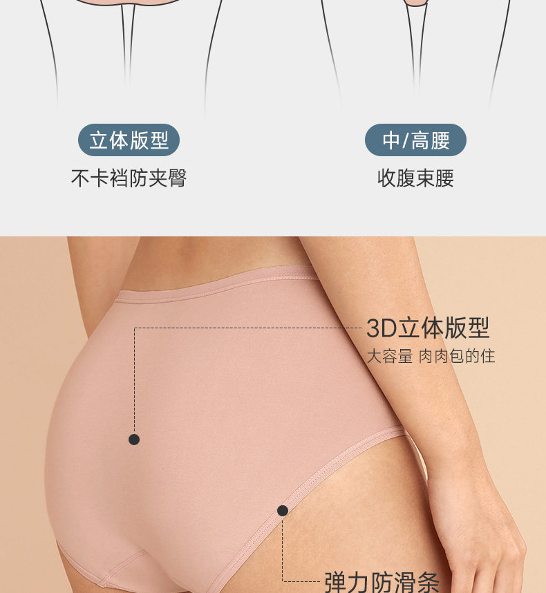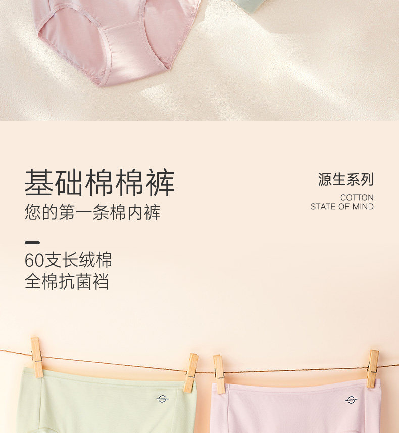 【3條裝】曼妮芬棉質生活60支長絨棉中腰高腰純棉全棉抗菌襠內褲