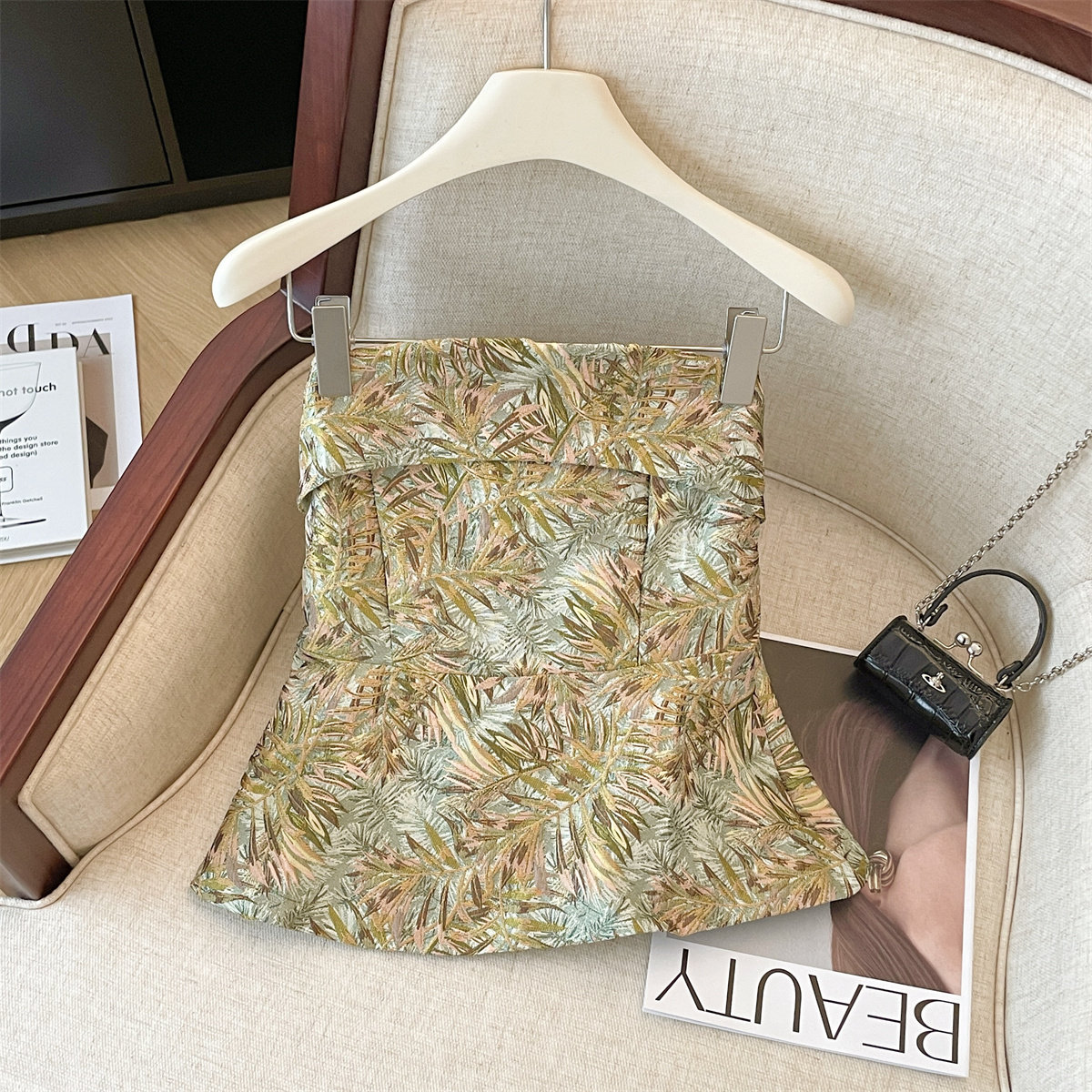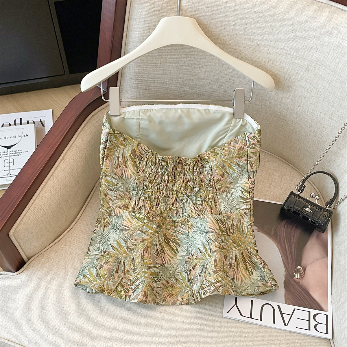 專櫃撤廻剪標韓系辣妹一字肩抹胸女夏季新款復古提花內搭收腰背心
