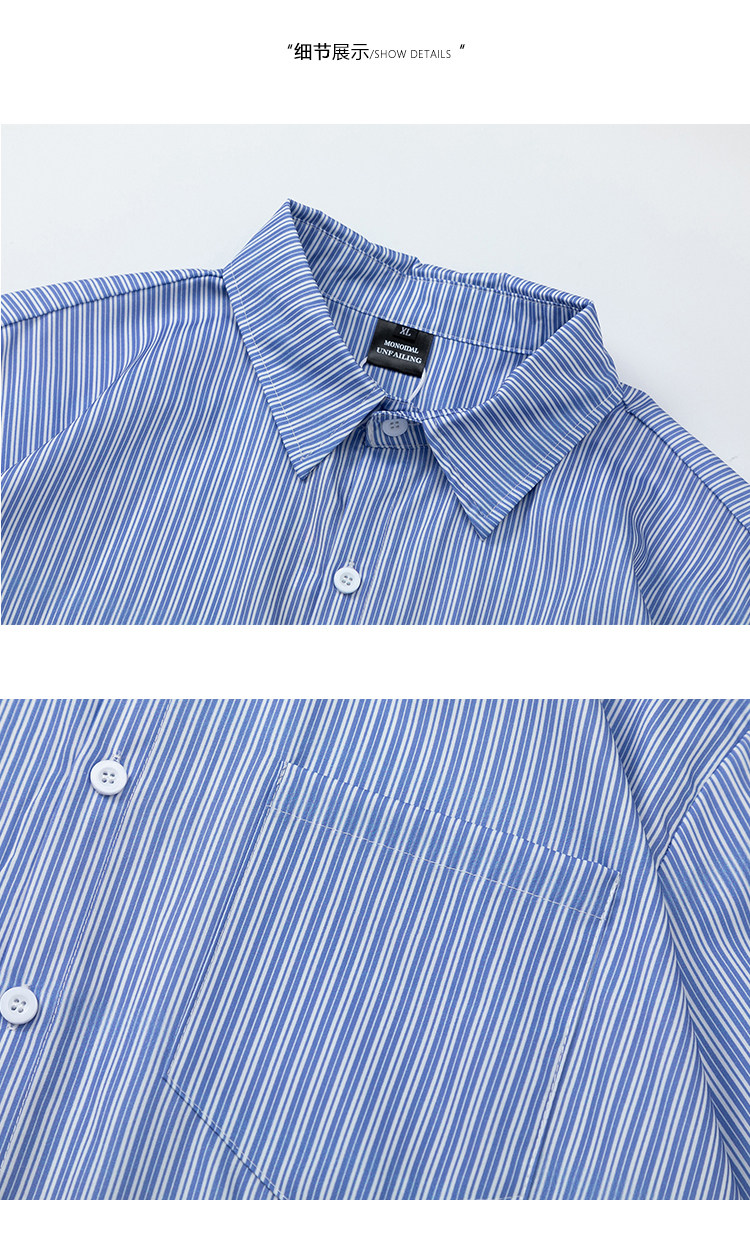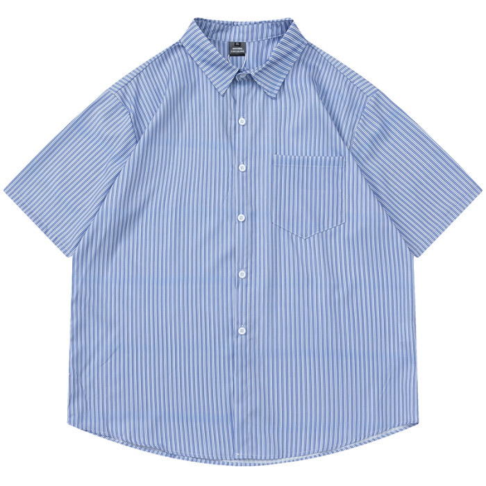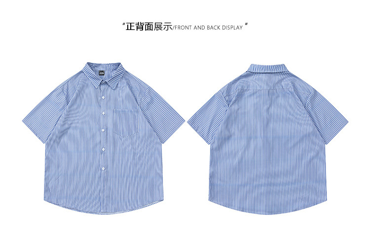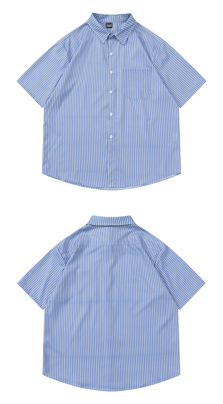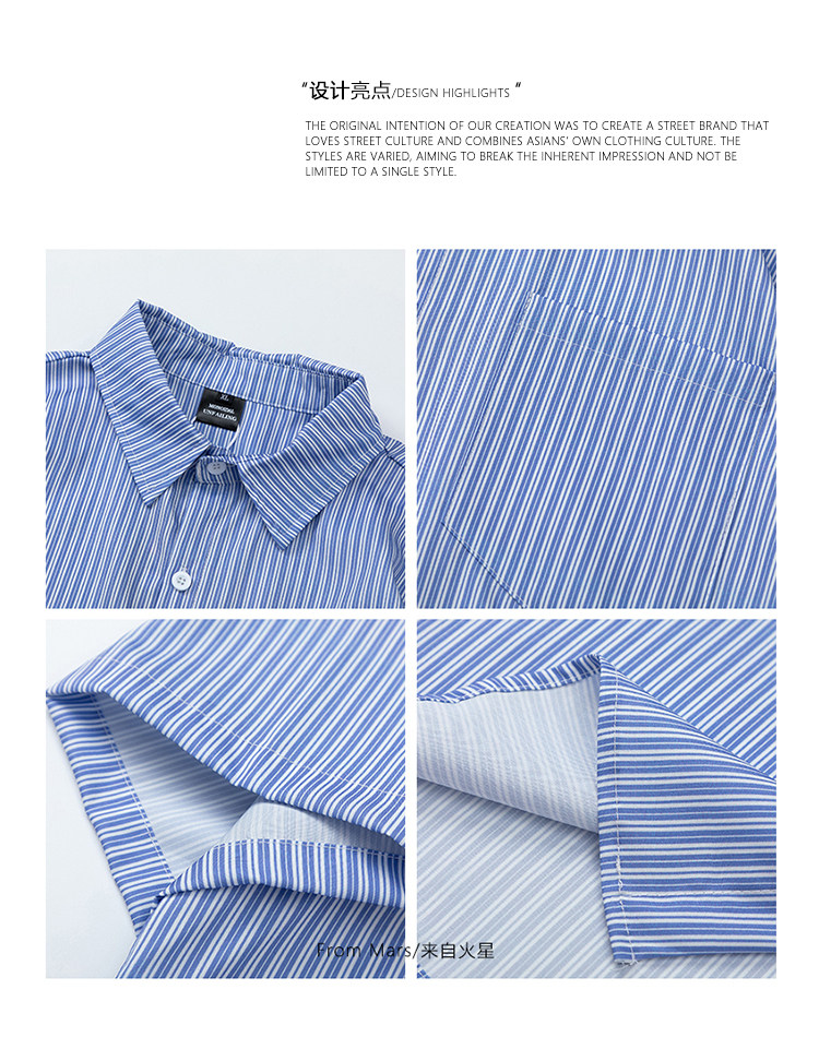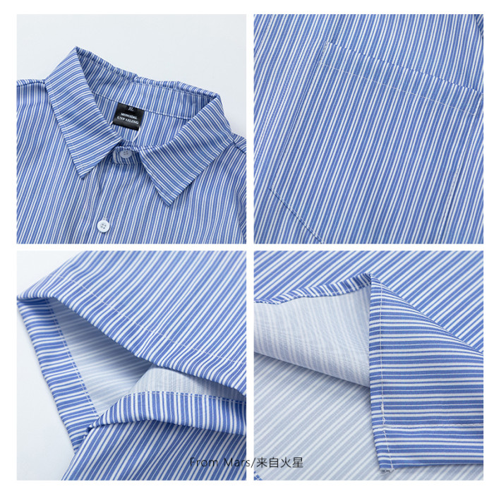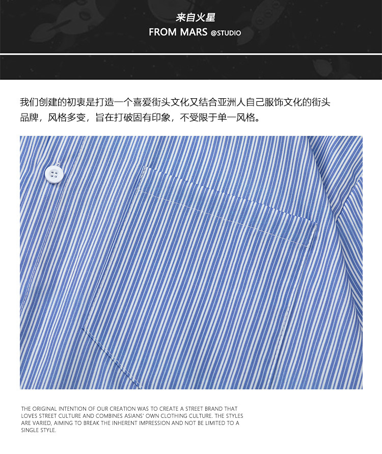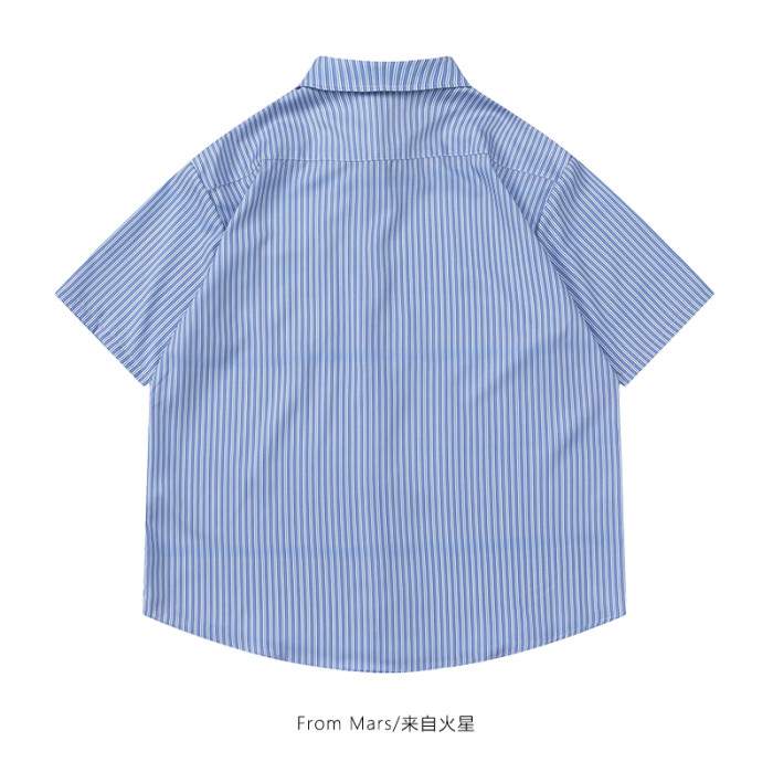 From Mars風度翩翩 港風潮牌竪條紋短袖襯衣高街寬鬆休閒襯衫男女