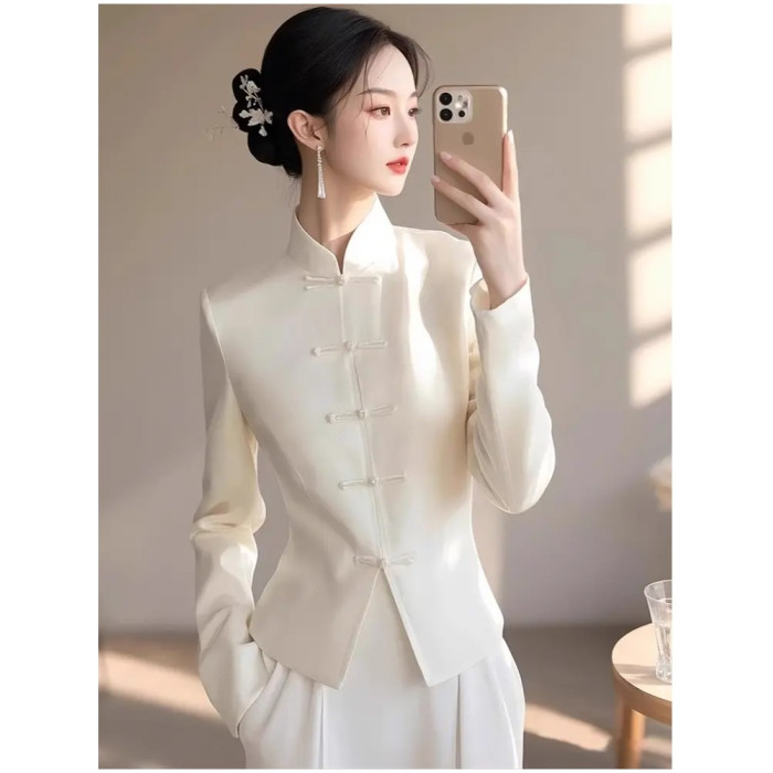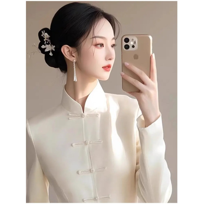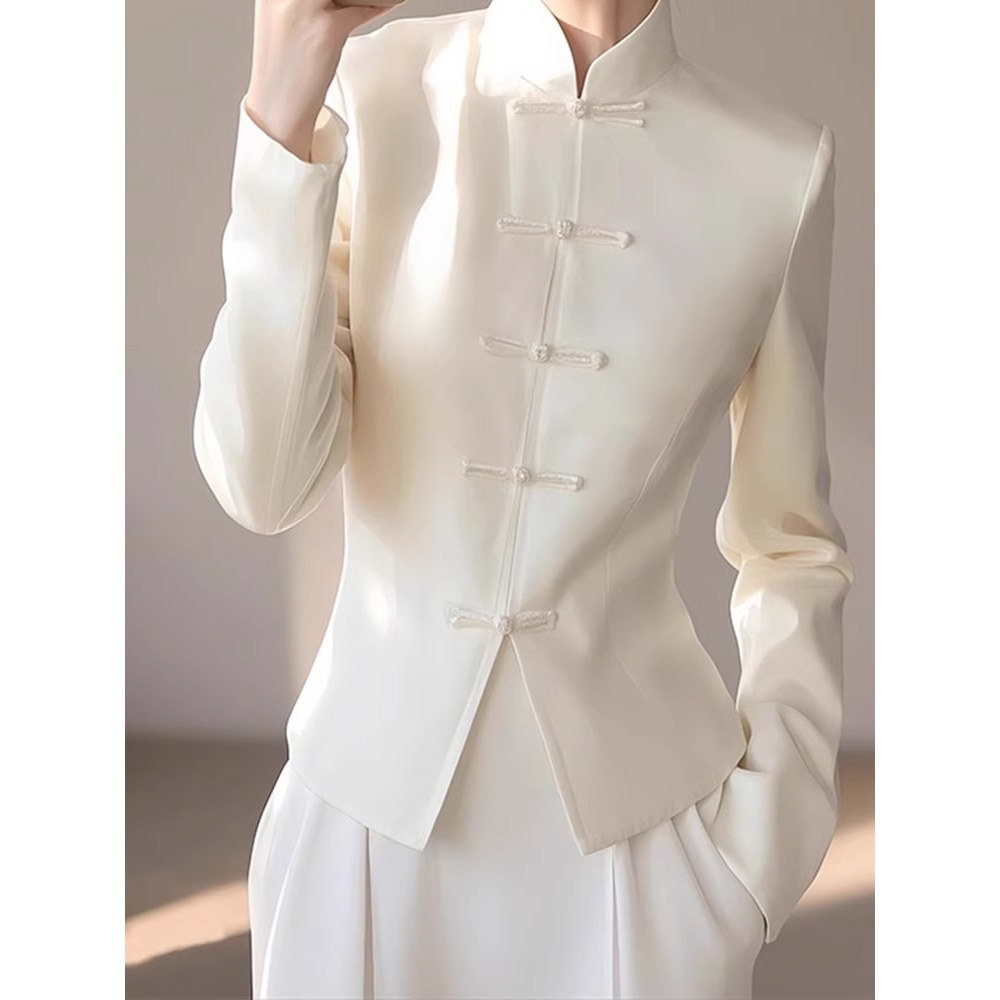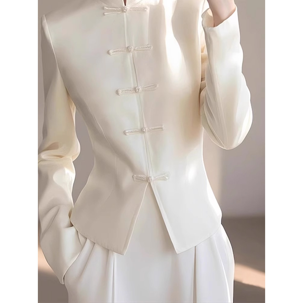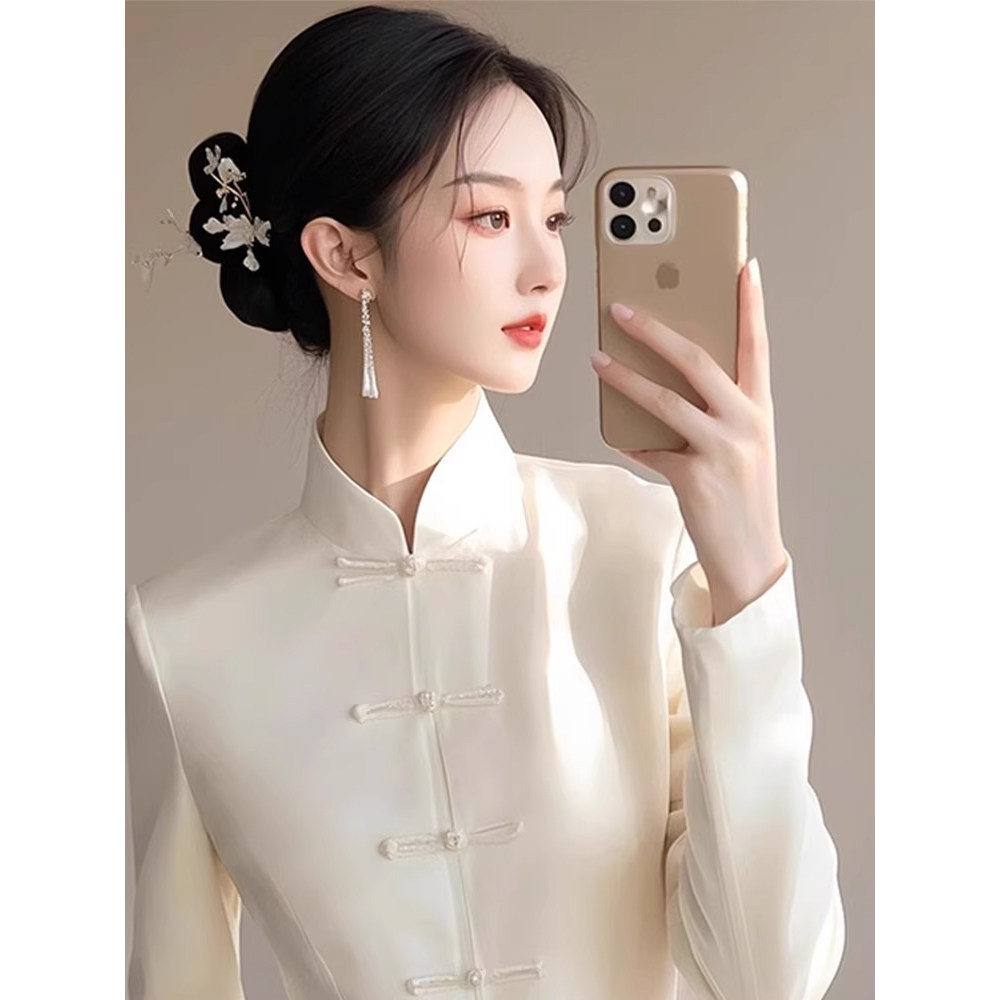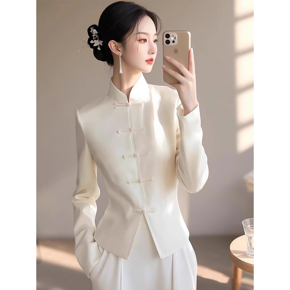 獨特漂亮上衣輕奢減齡洋氣冷淡系高級感新中式國風白色盤釦襯衫春