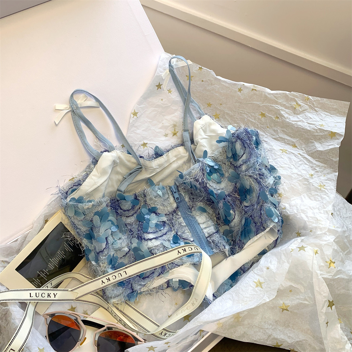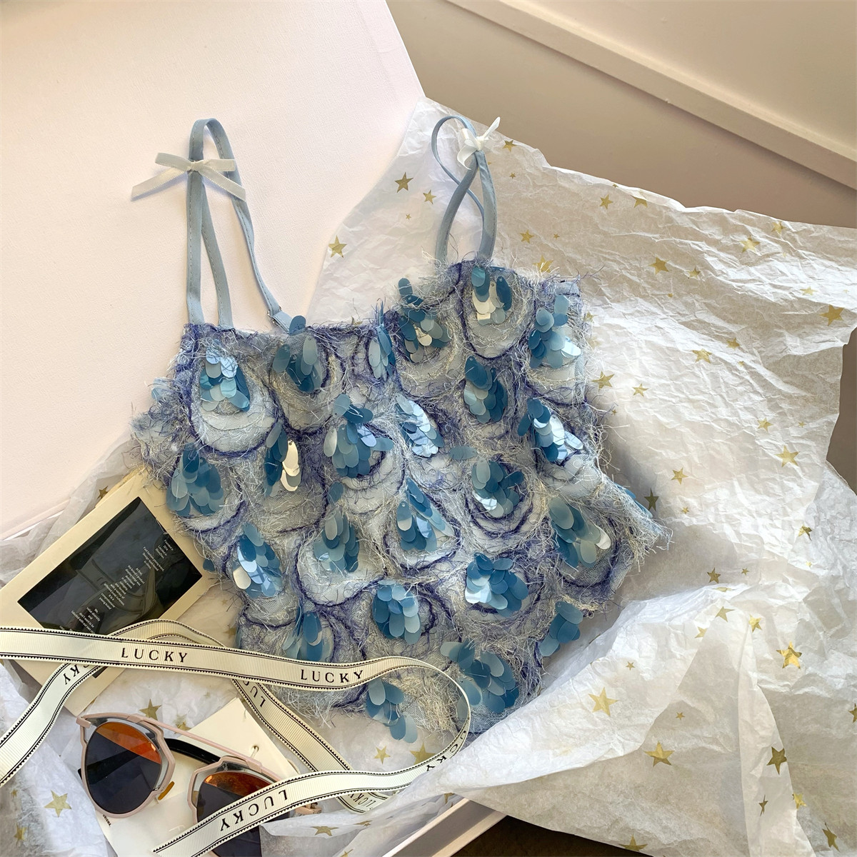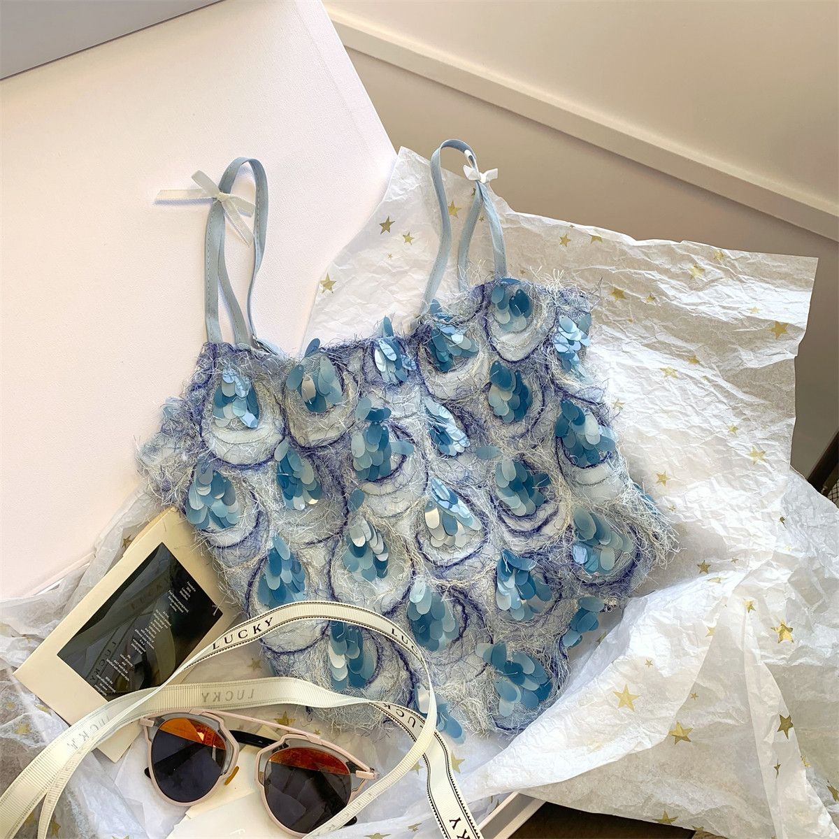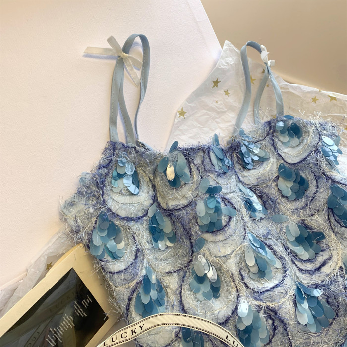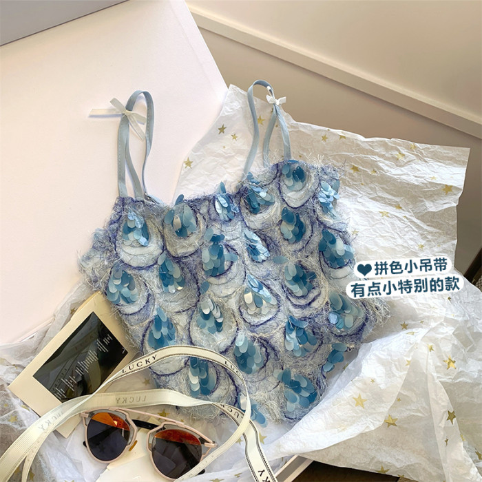 甜辣風蝴蝶結亮片小吊帶法式小衆洋氣背心高級感別致無袖上衣夏季