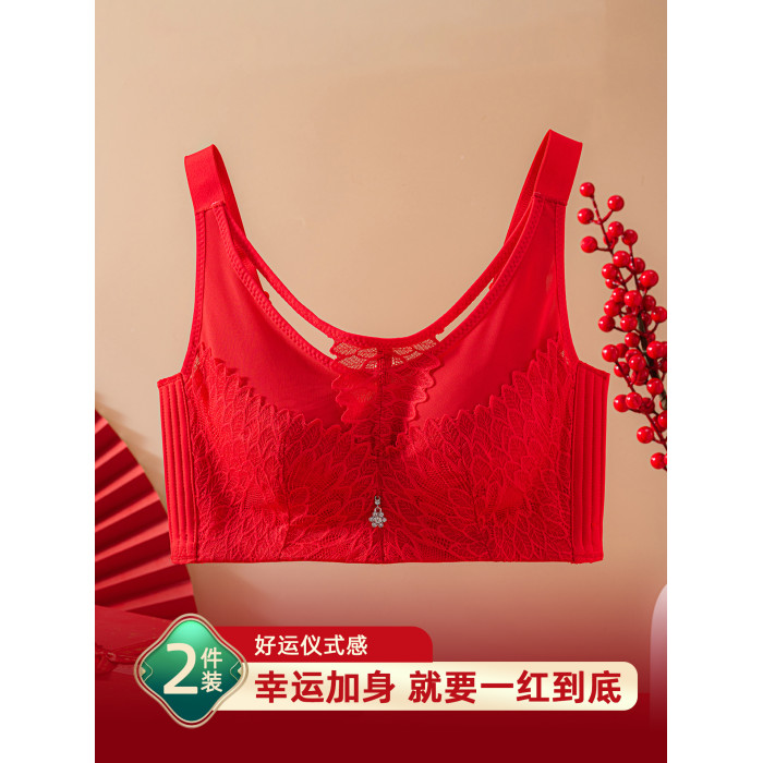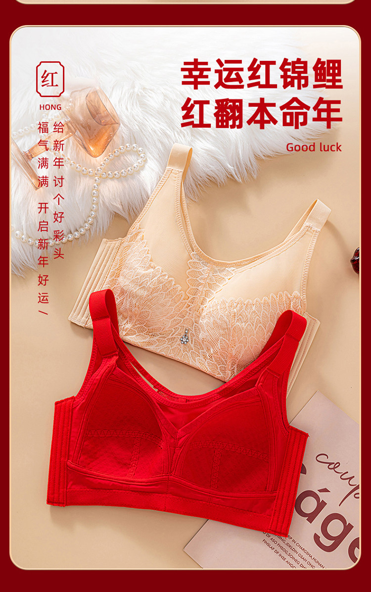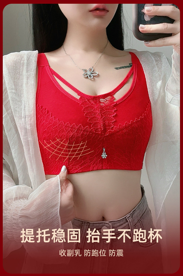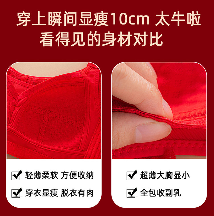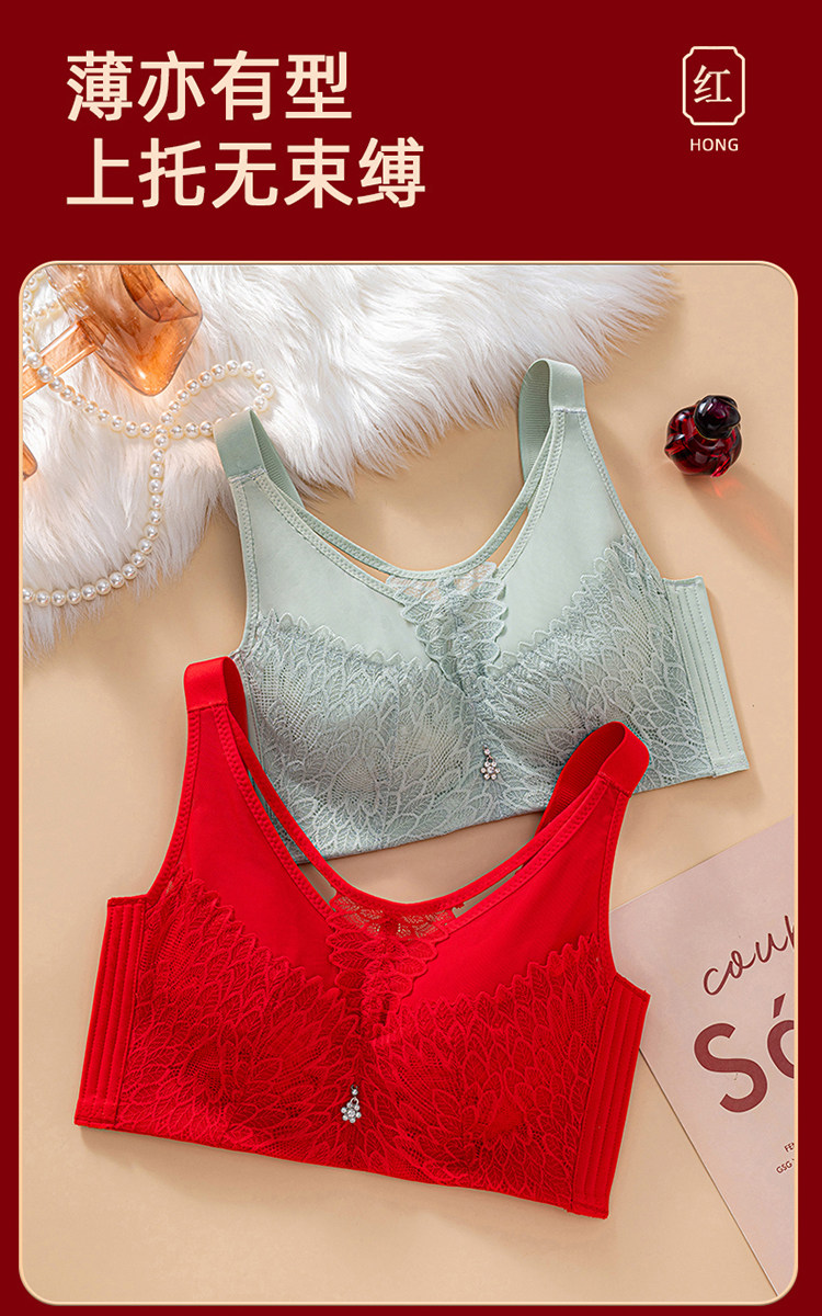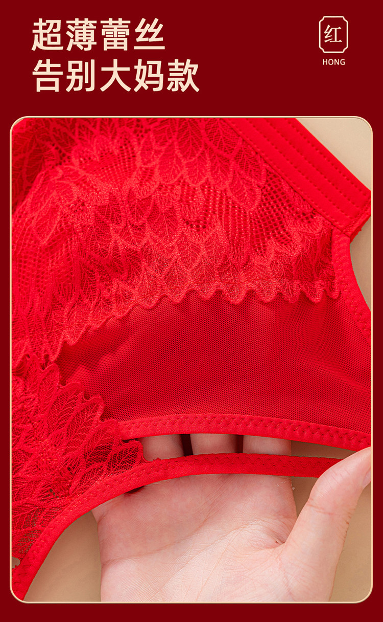 本命年大紅色內衣女大碼超薄款全罩杯無鋼圈大胸顯小結婚新娘文胸