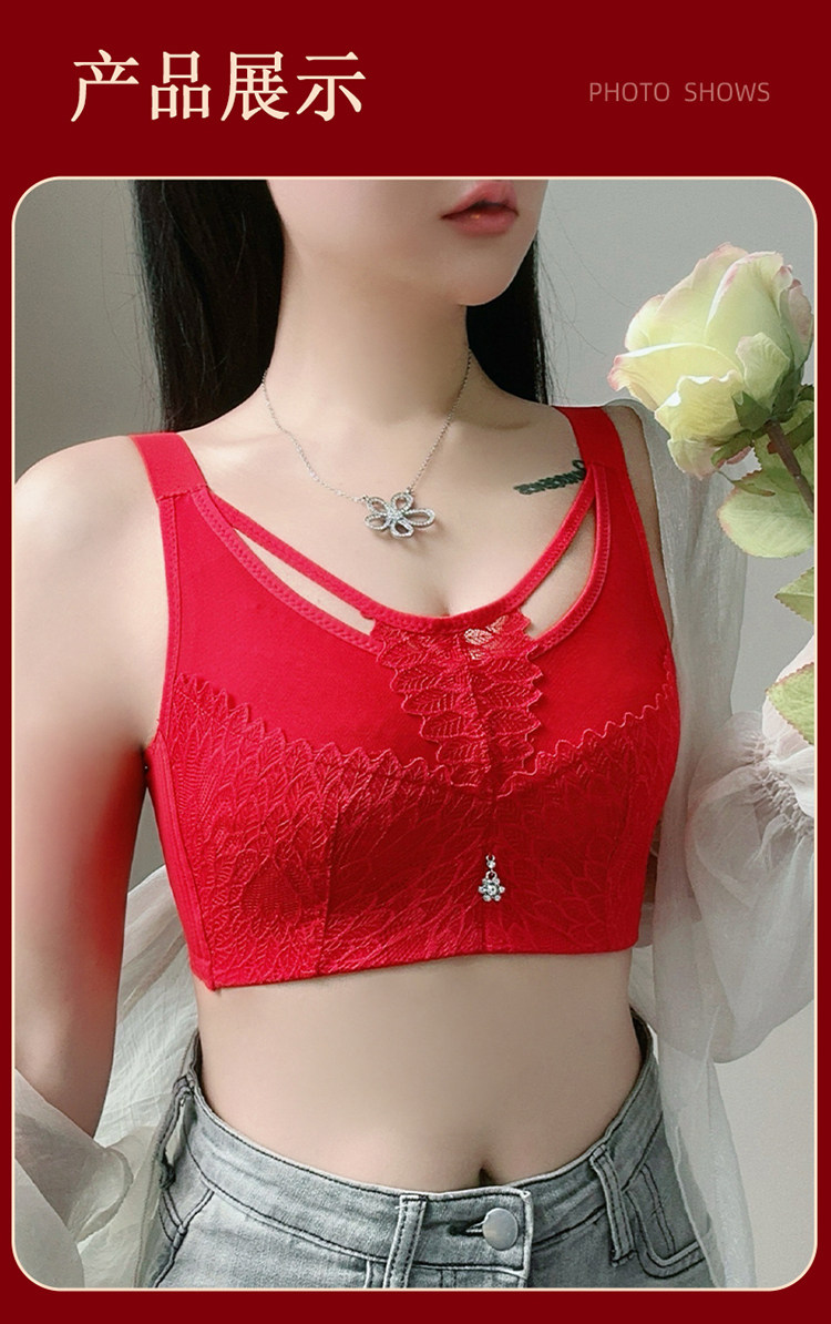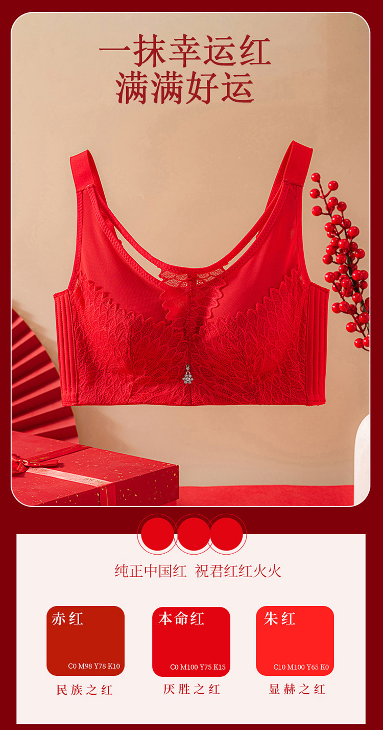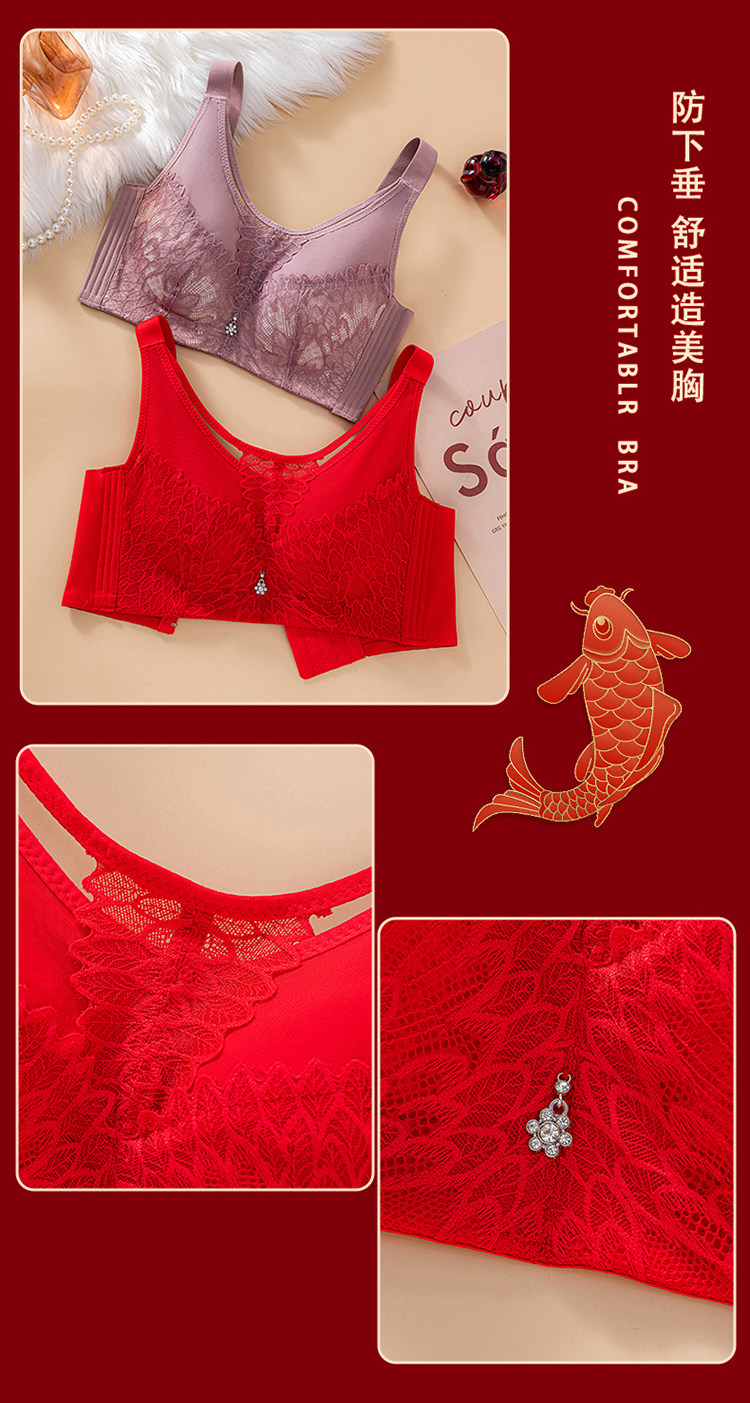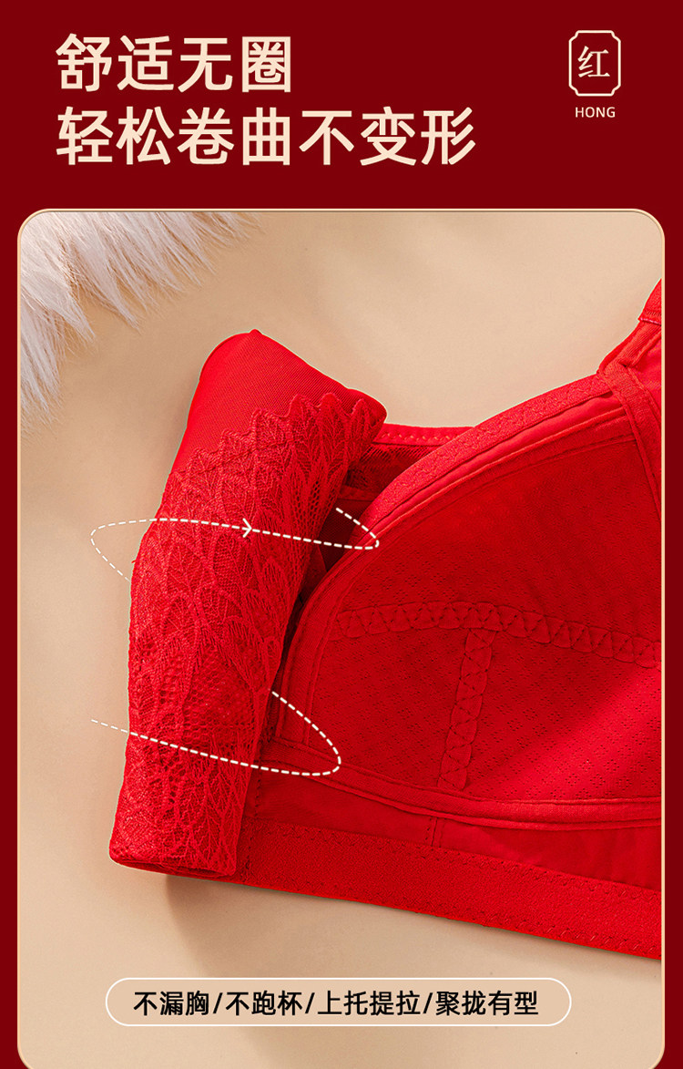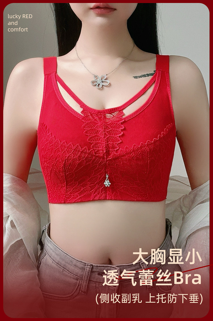本命年大紅色內衣女大碼超薄款全罩杯無鋼圈大胸顯小結婚新娘文胸