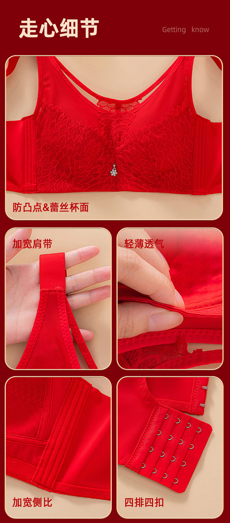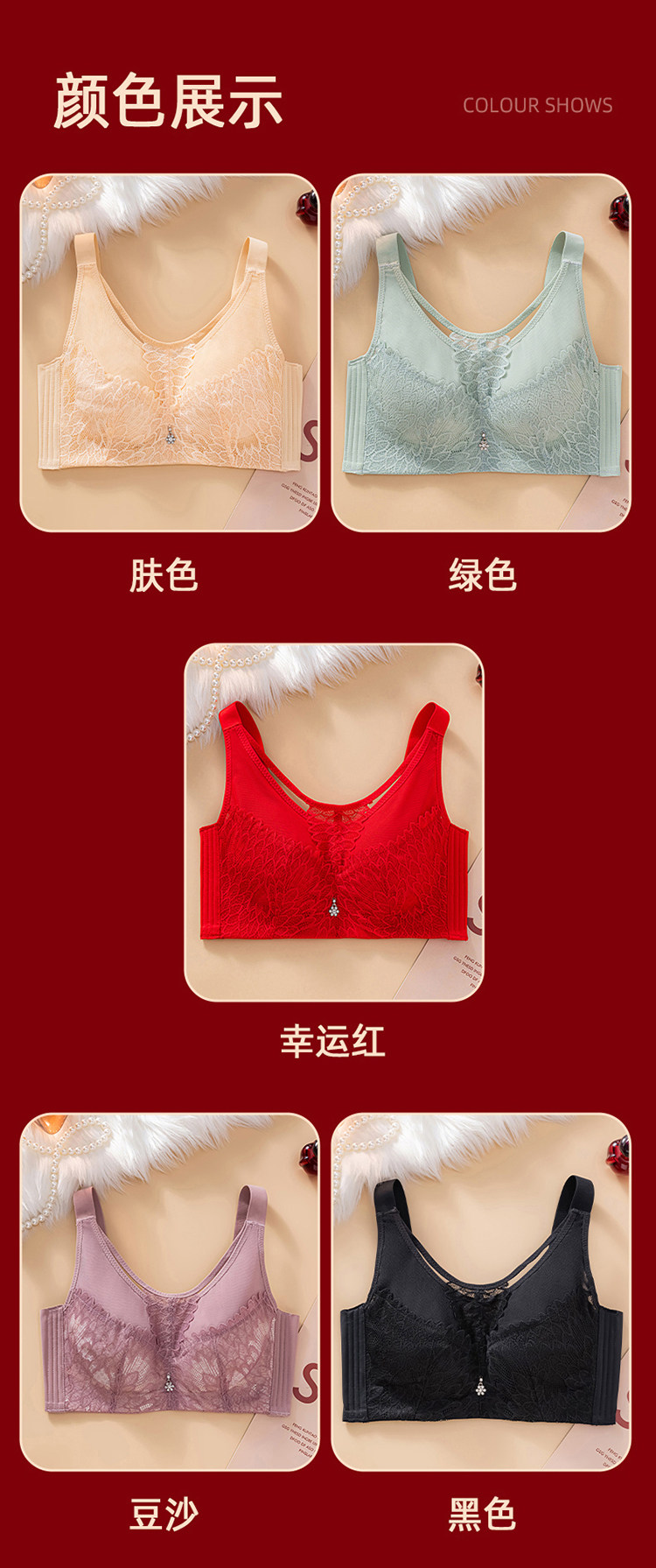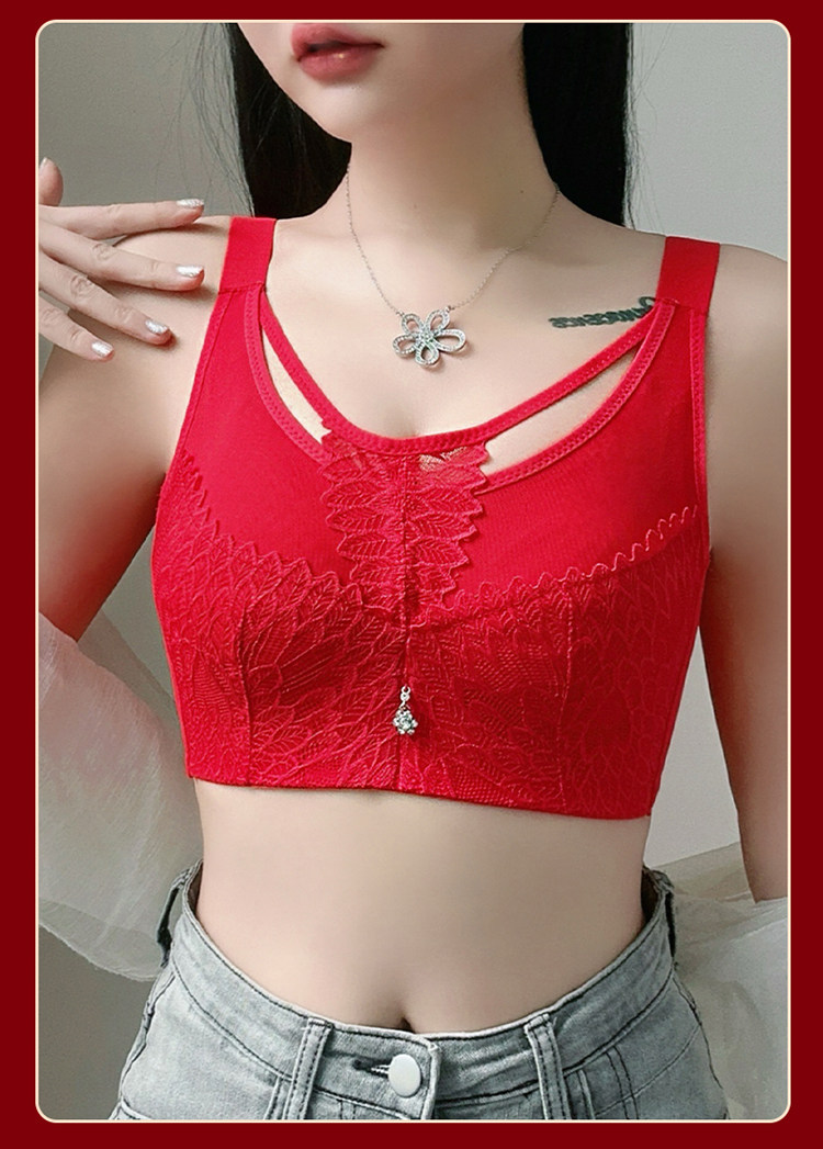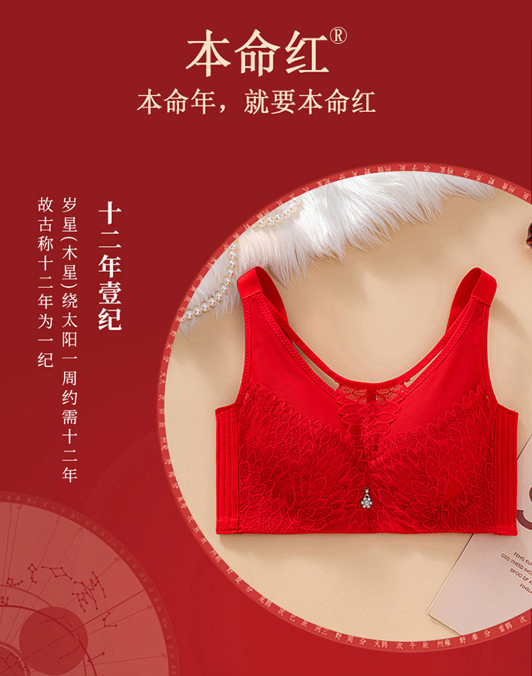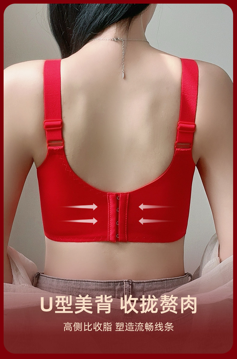 本命年大紅色內衣女大碼超薄款全罩杯無鋼圈大胸顯小結婚新娘文胸
