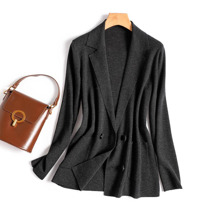 隻賣識貨的親!L家源貨櫃上9百歐~高級美麗諾羊毛針織西裝外套女