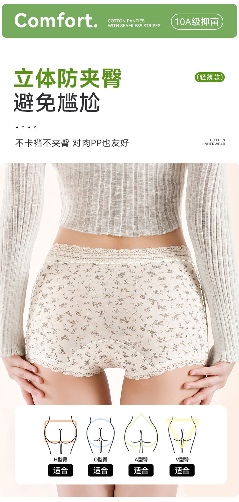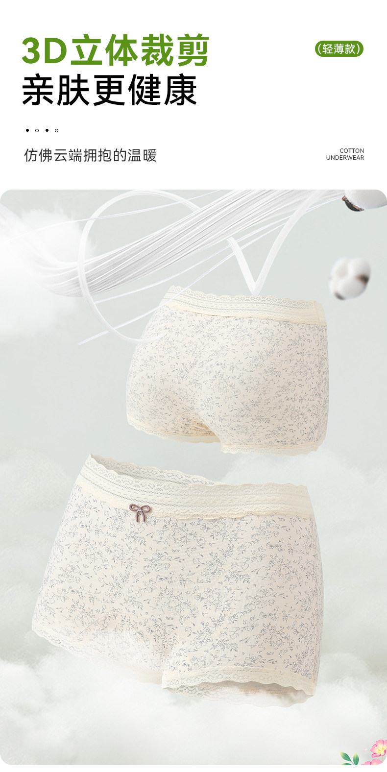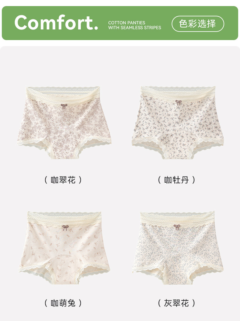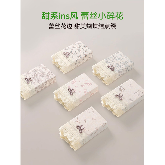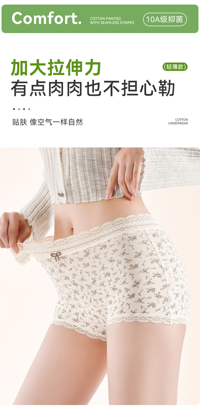 都市麗人蕾絲碎花純棉內褲女10A級抑菌大碼甜美ins風少女平角褲
