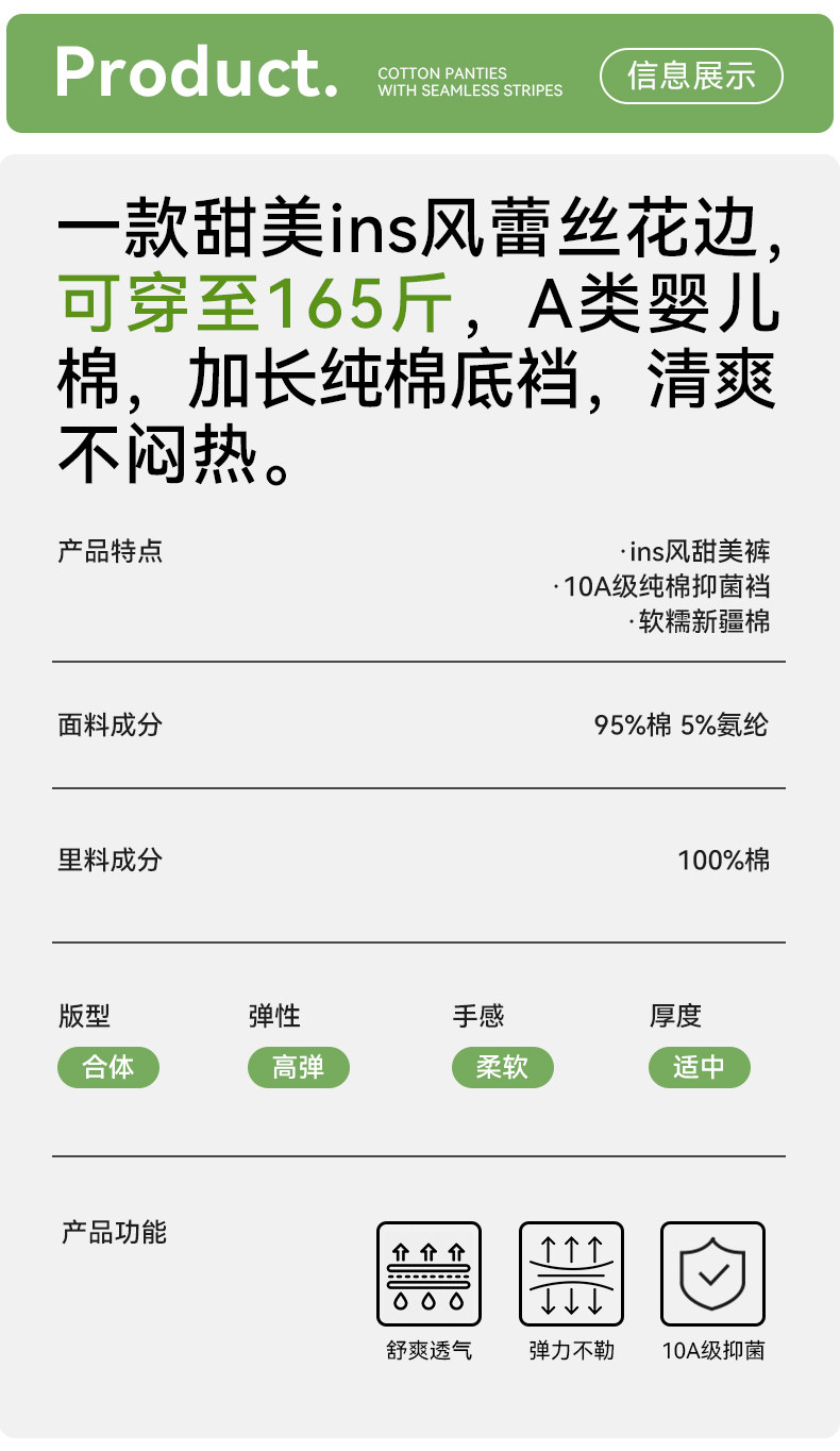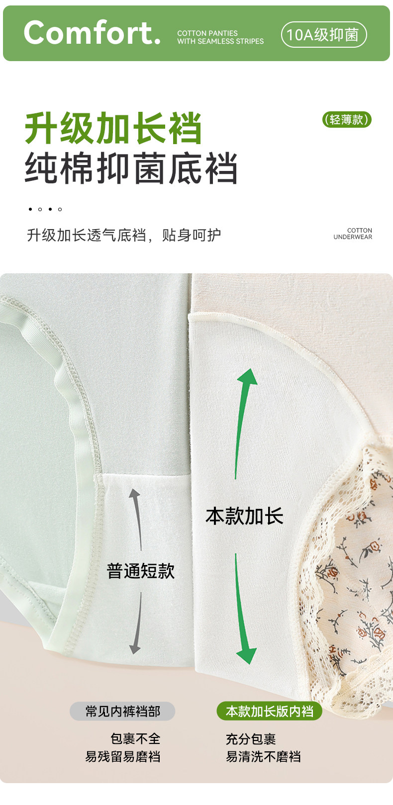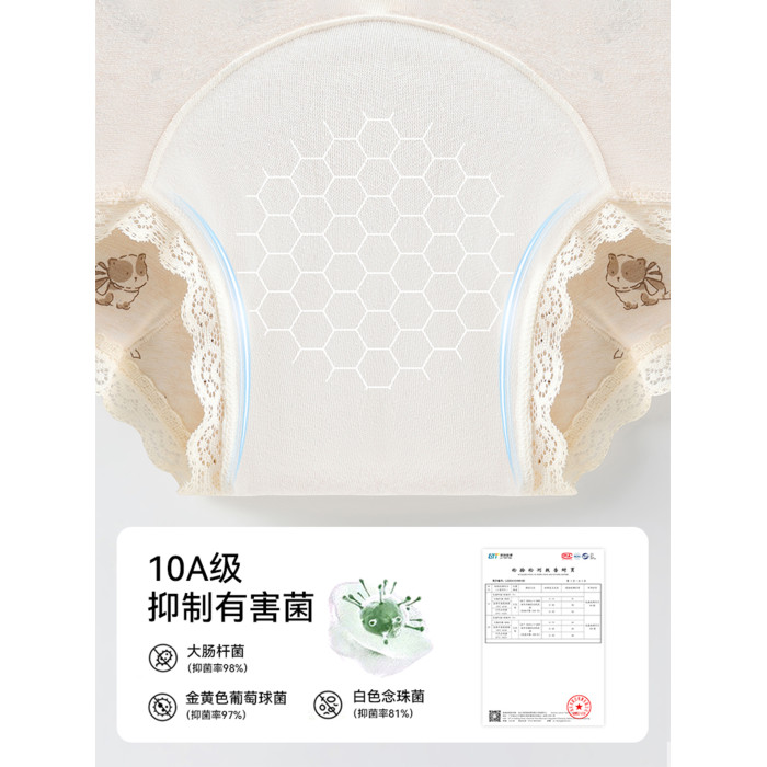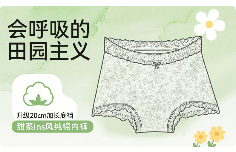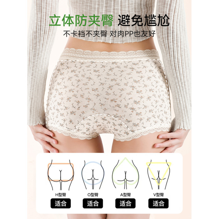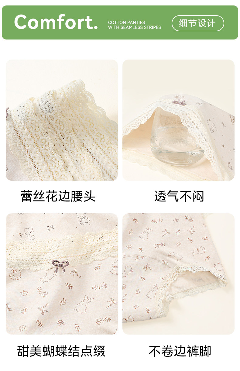 都市麗人蕾絲碎花純棉內褲女10A級抑菌大碼甜美ins風少女平角褲