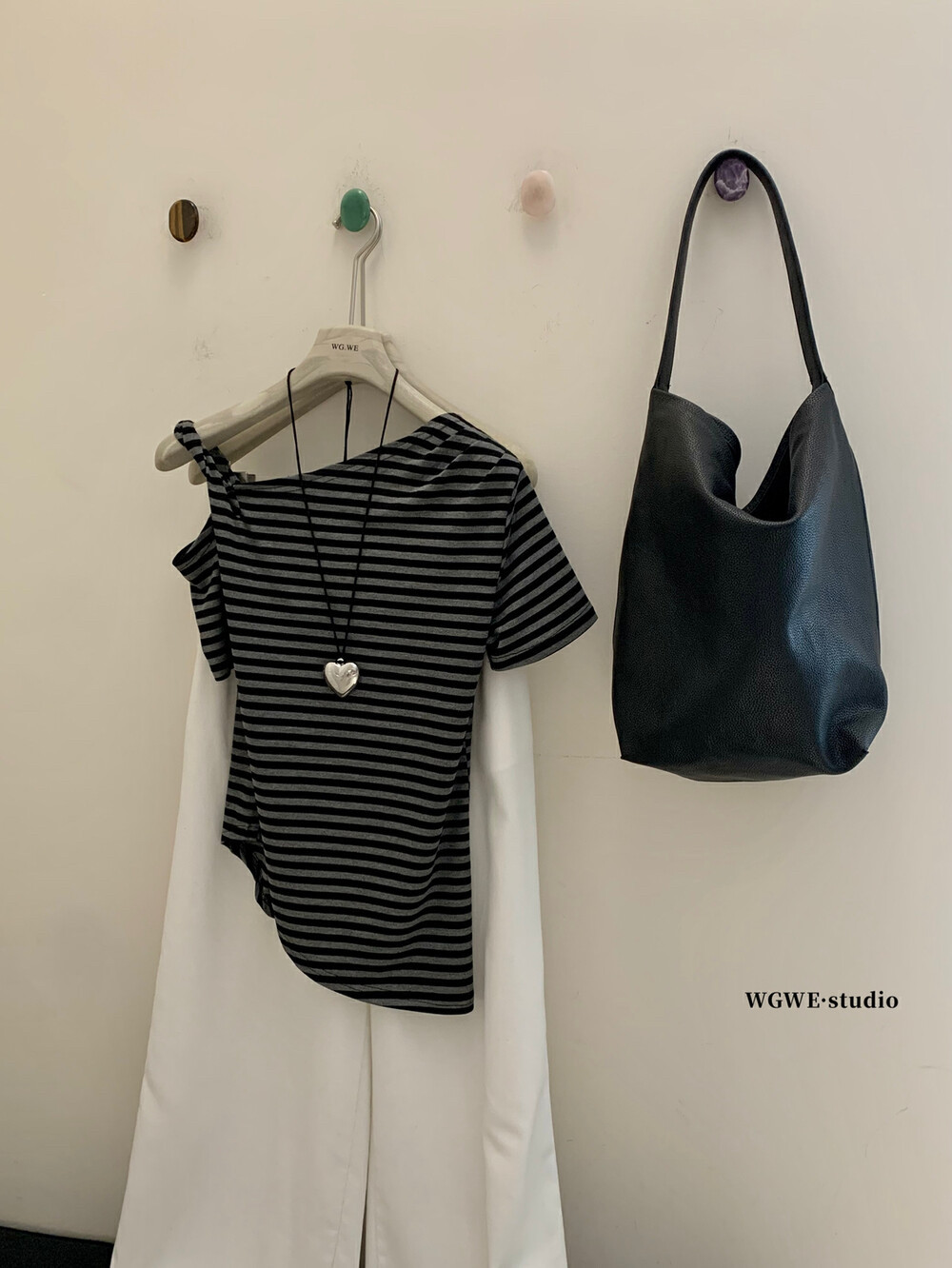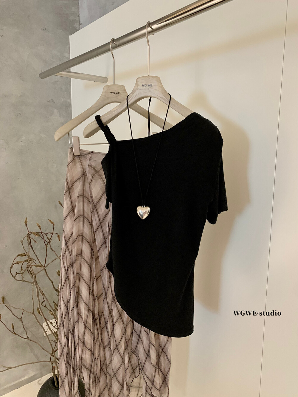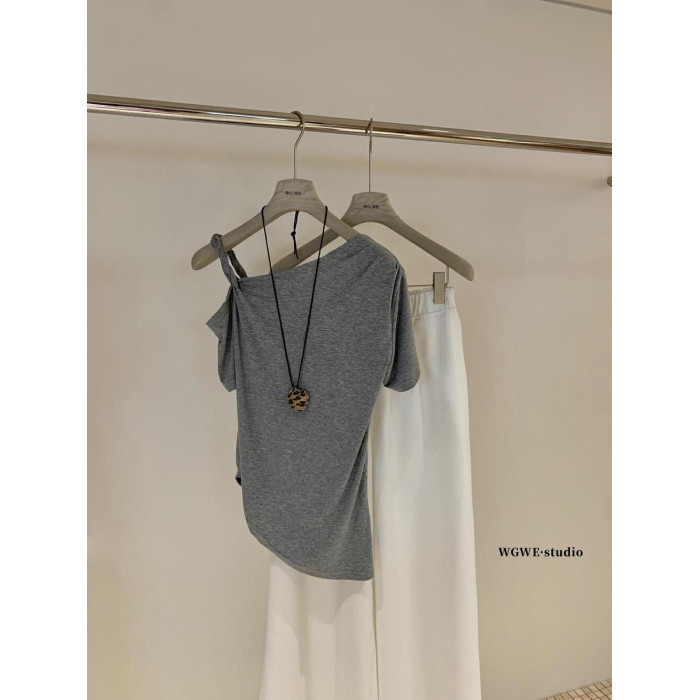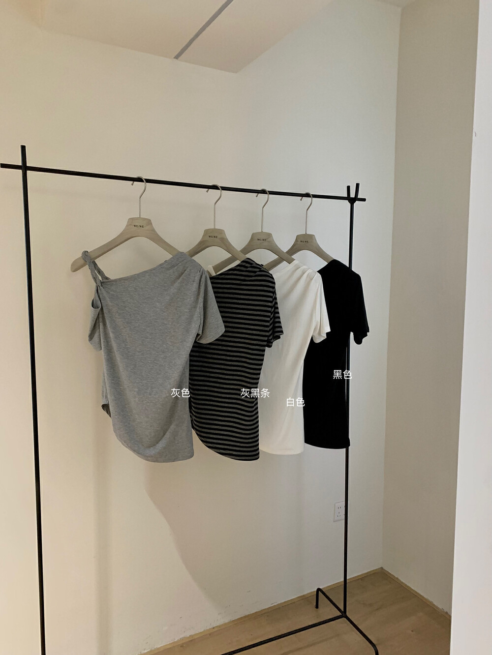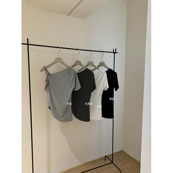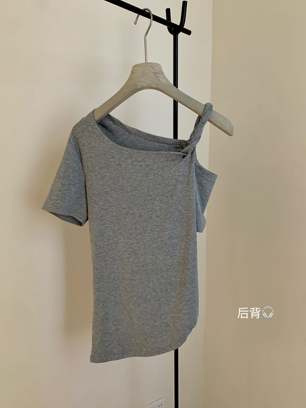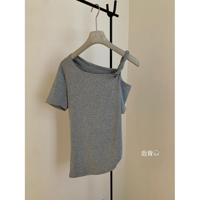認真賣 韓系短袖夏扭結斜肩一字領多穿法設計感紙片人T恤上衣女