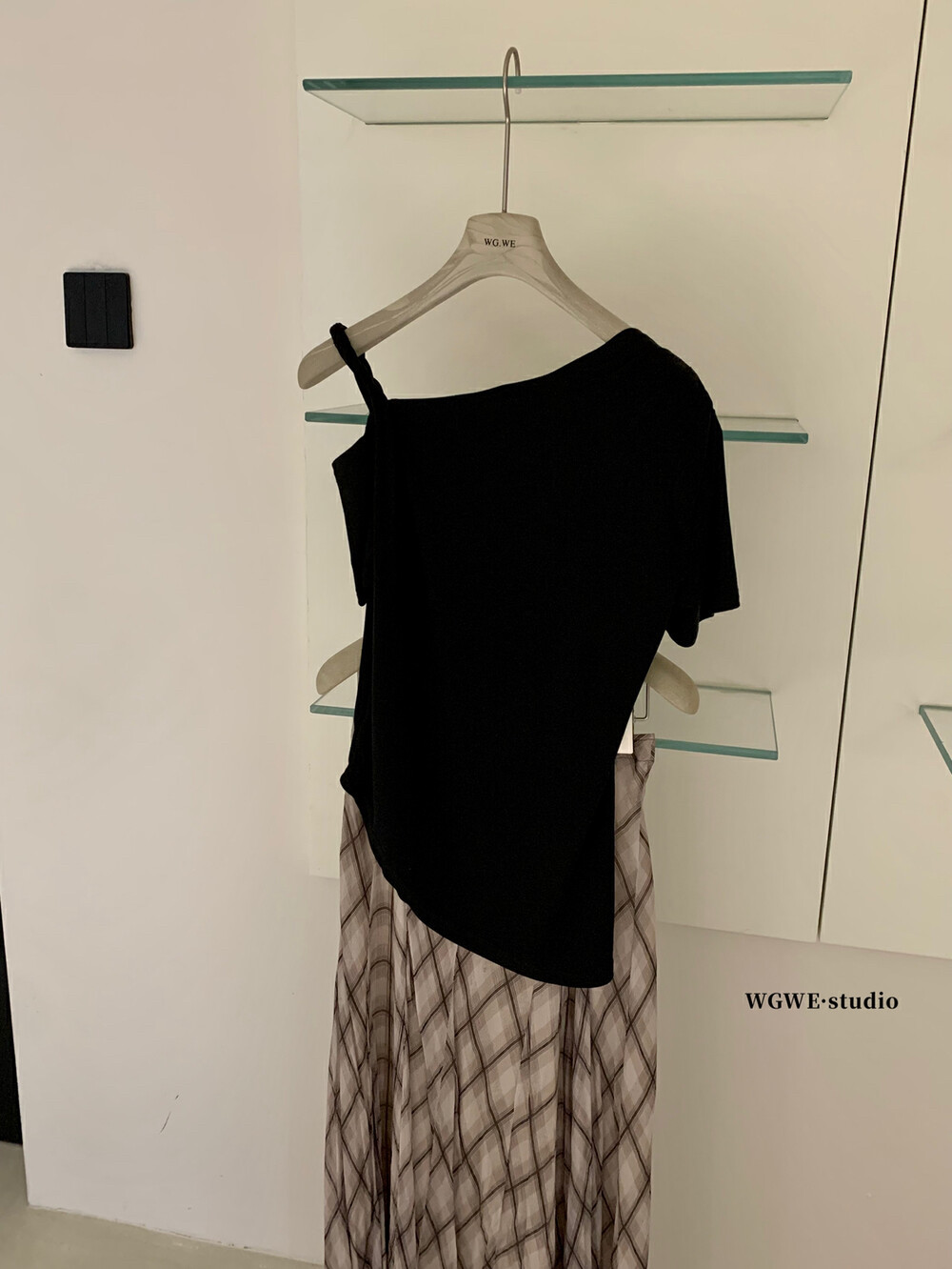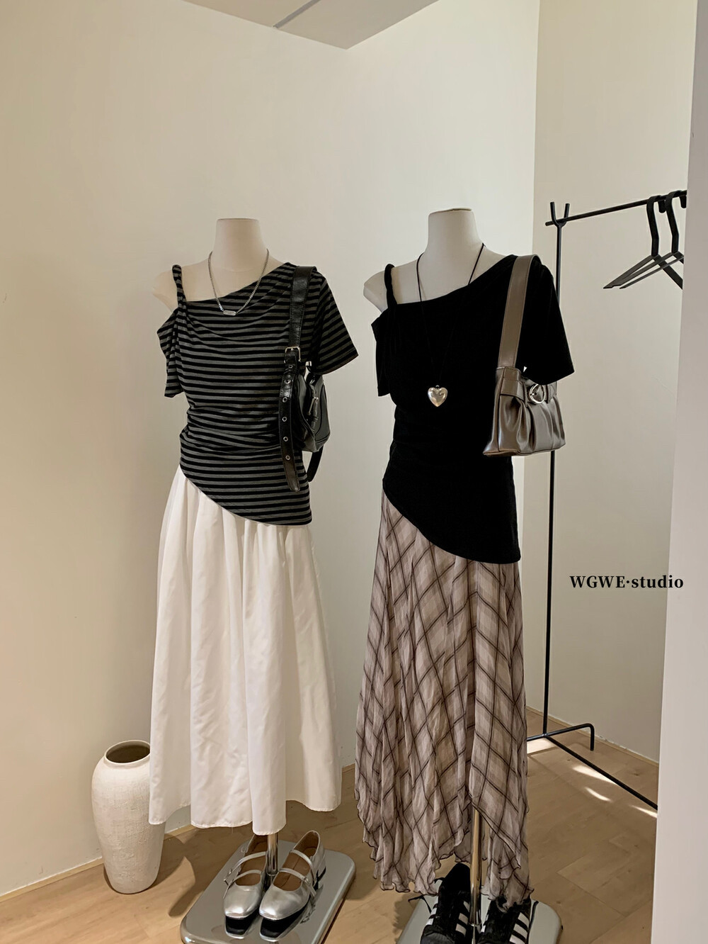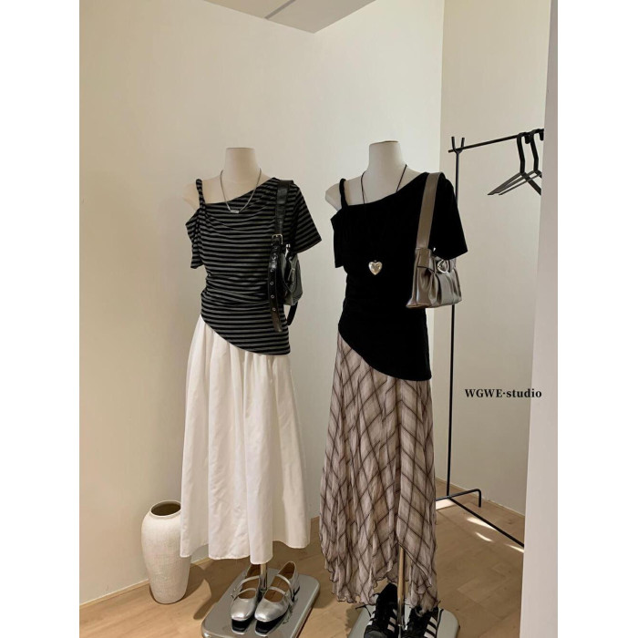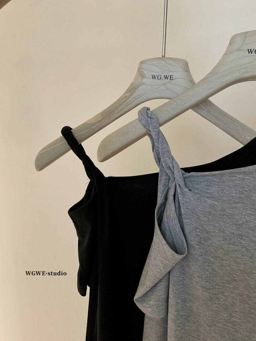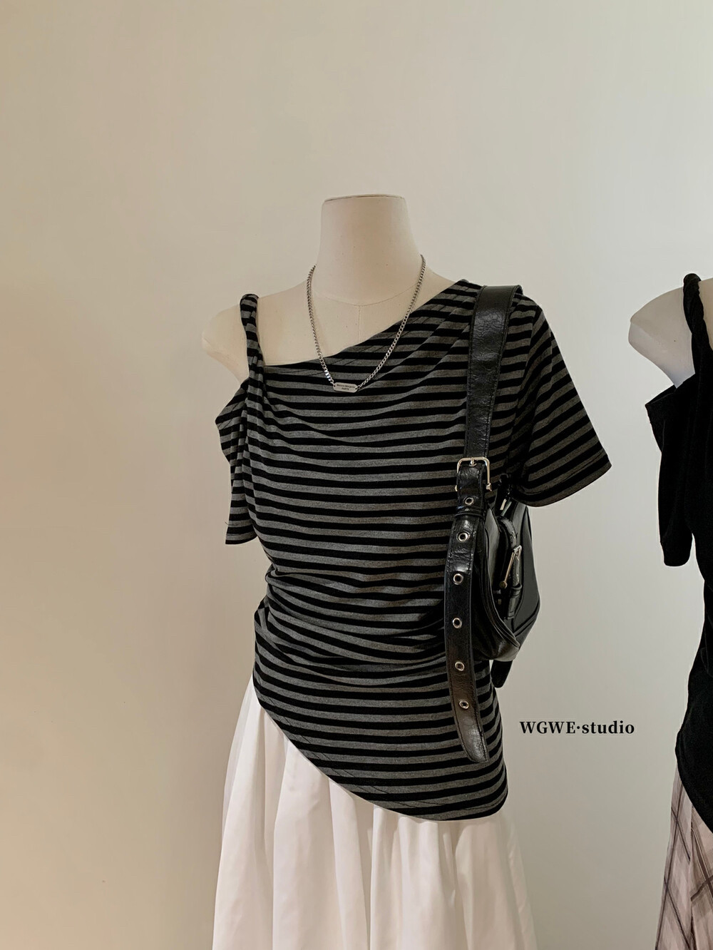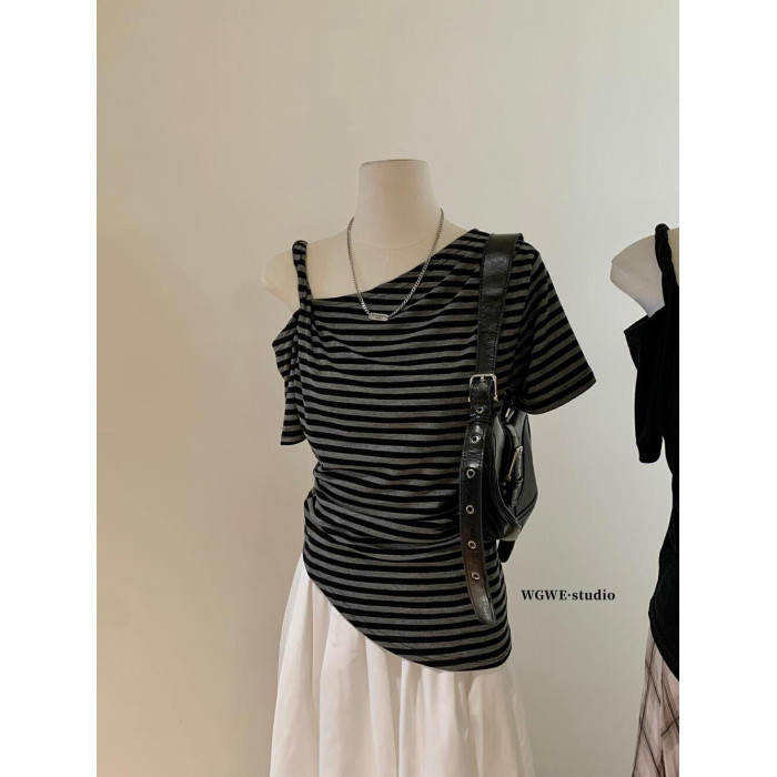 認真賣 韓系短袖夏扭結斜肩一字領多穿法設計感紙片人T恤上衣女