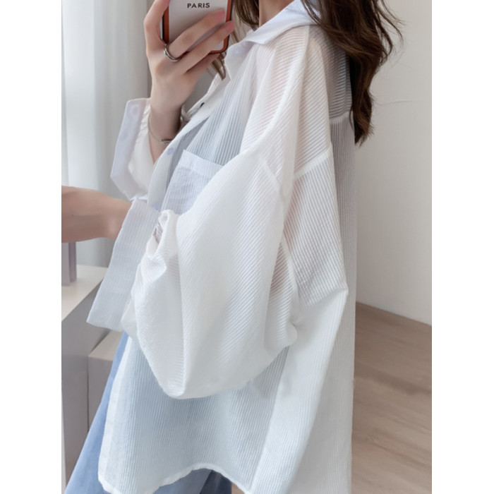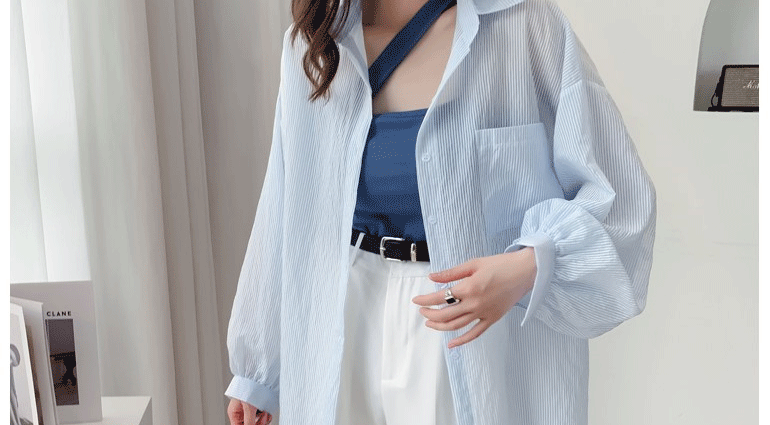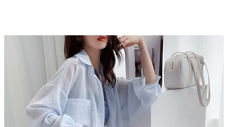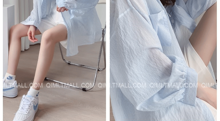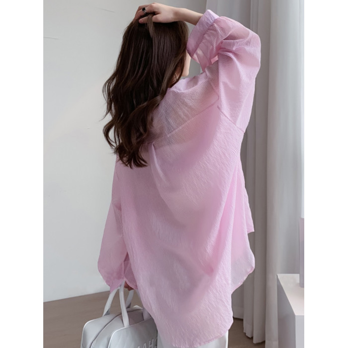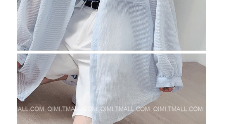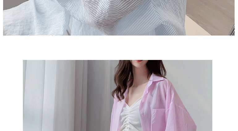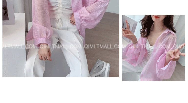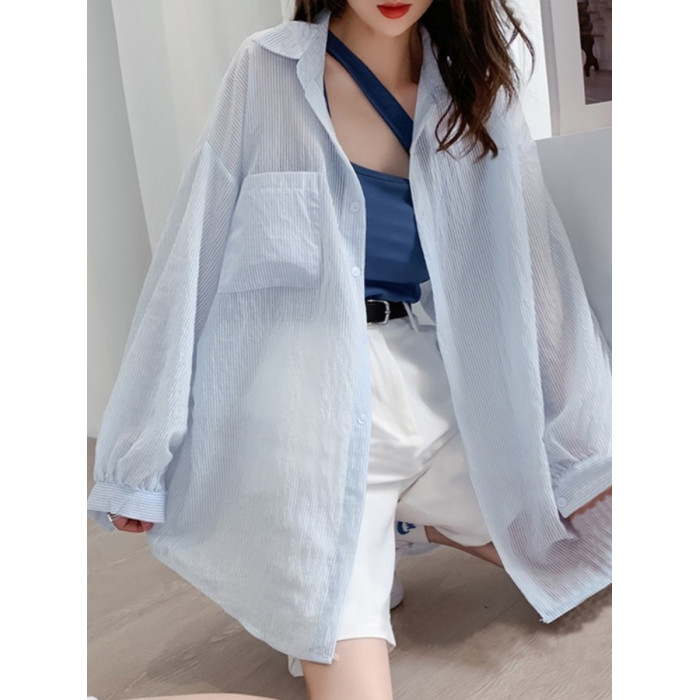 條紋薄款防曬衣女夏季海邊度假寬鬆透氣慵懶冰絲開衫雪紡上衣外套