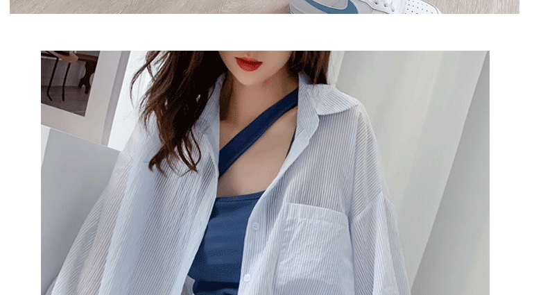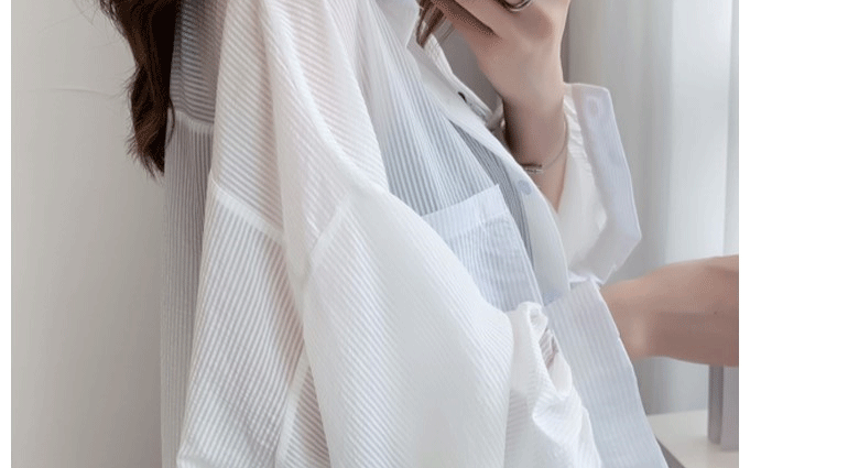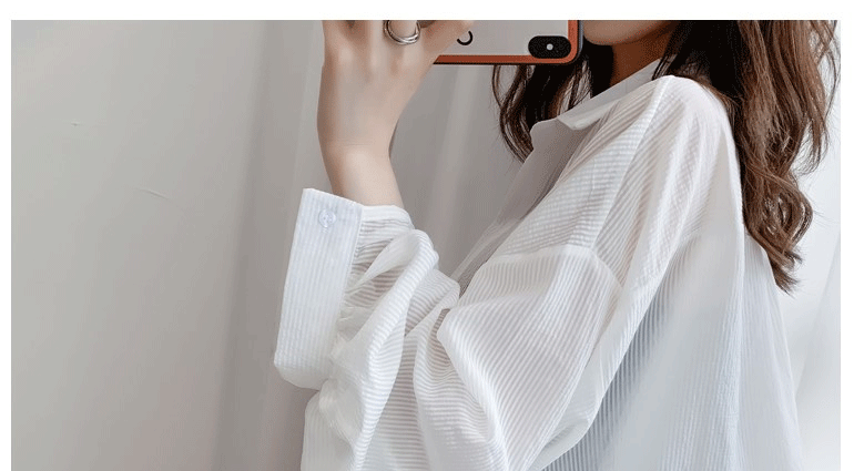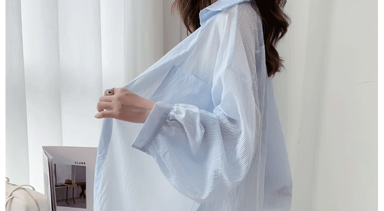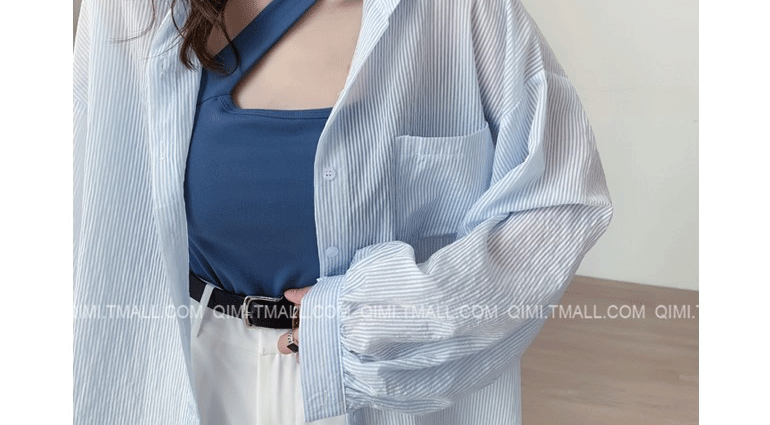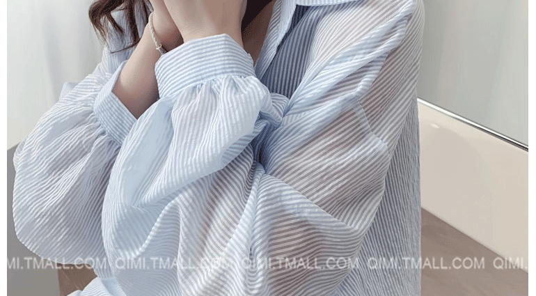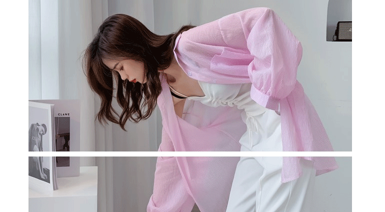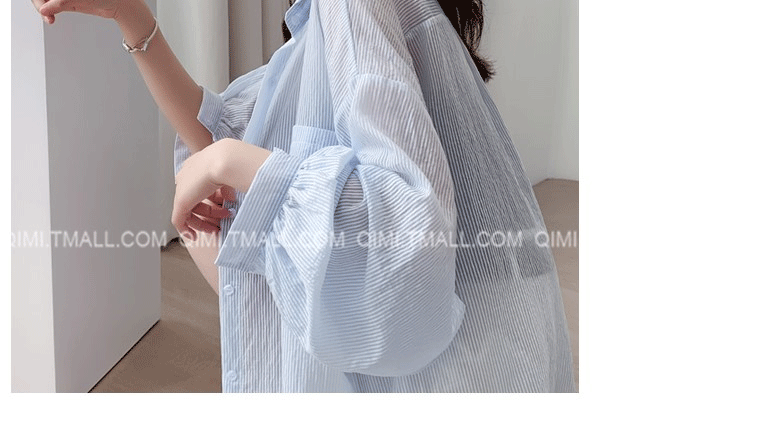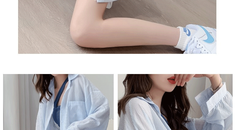 條紋薄款防曬衣女夏季海邊度假寬鬆透氣慵懶冰絲開衫雪紡上衣外套