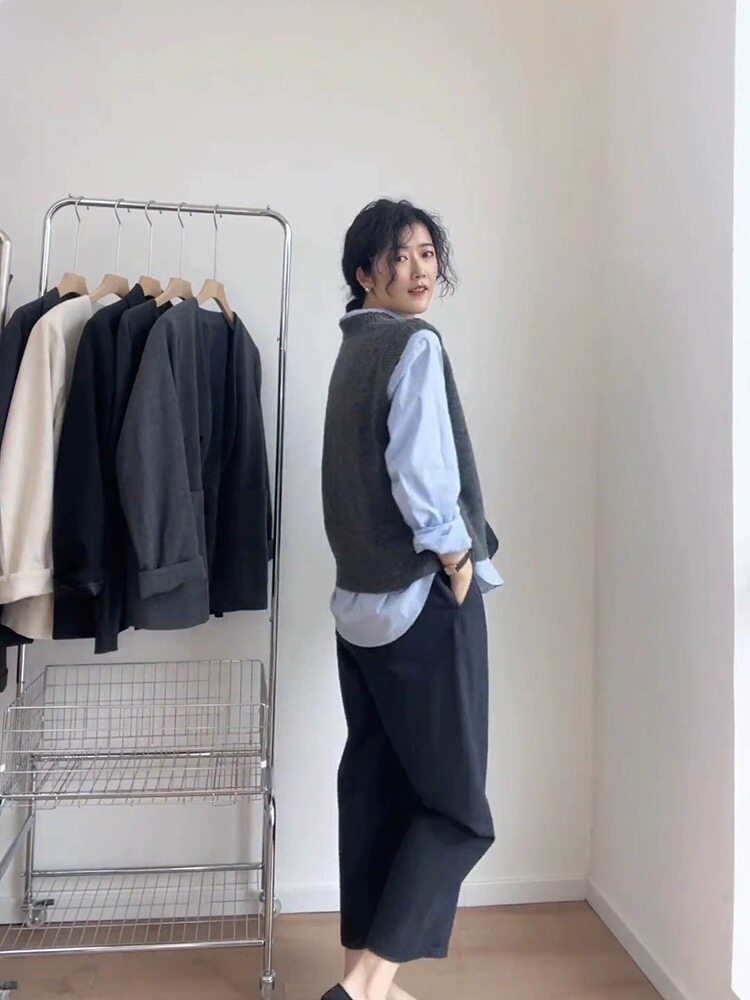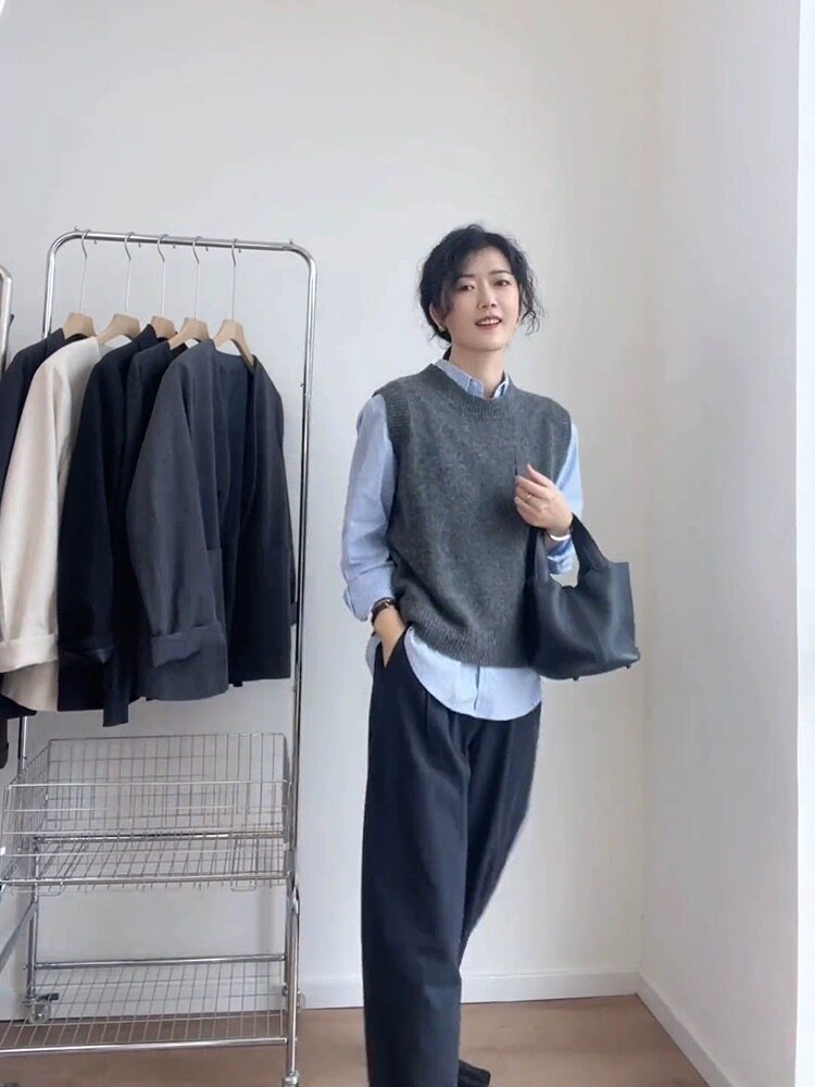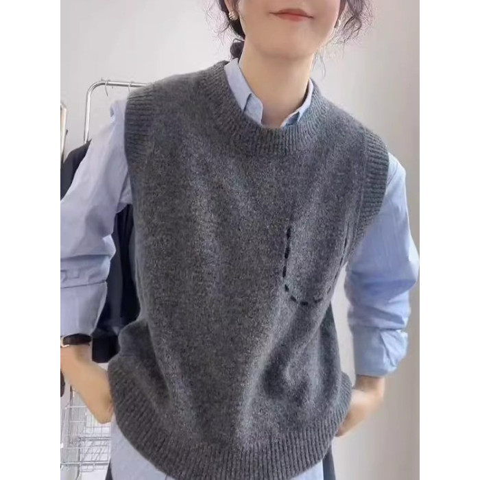 2025春秋新款羊毛馬甲女無袖寬鬆背心坎肩針織衫簡約休閒外搭上衣