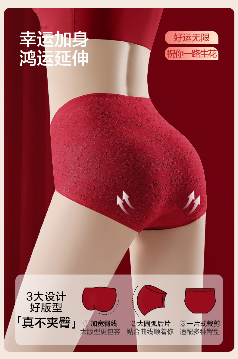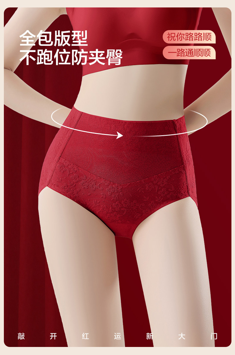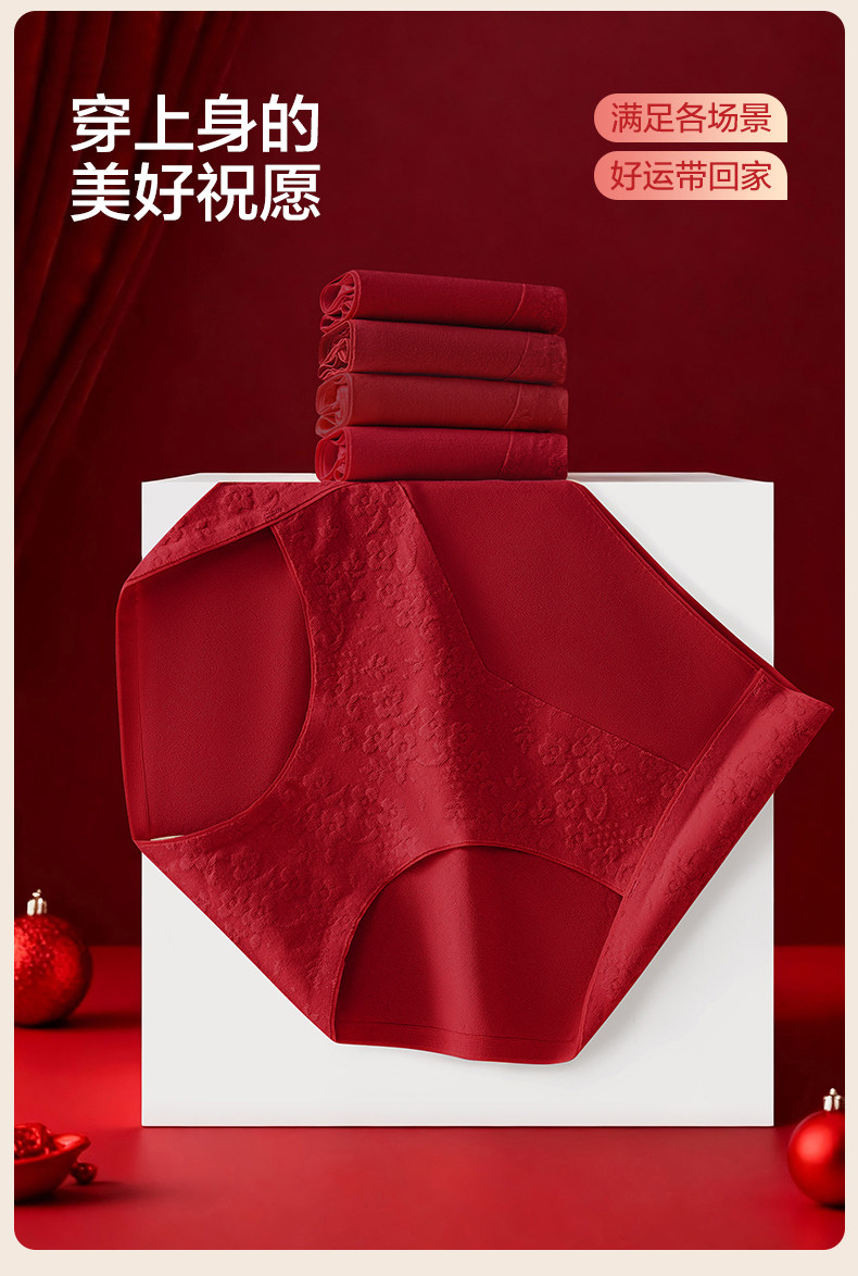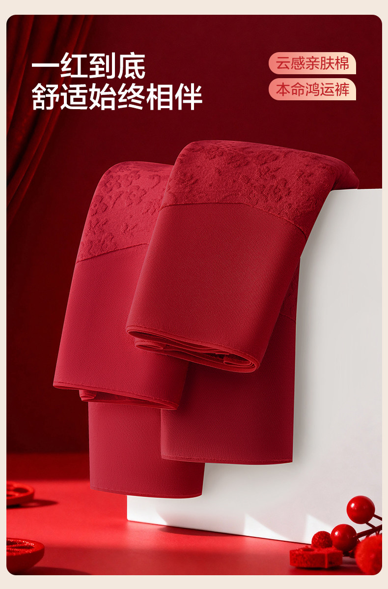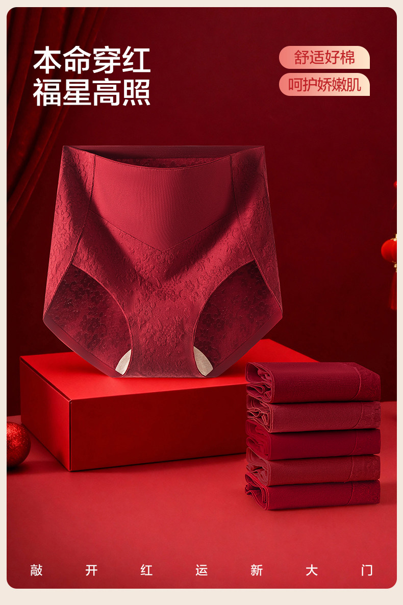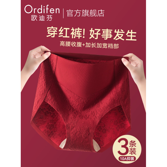 歐迪芬本命年紅色內褲女士純棉抗菌襠2026新款結婚無痕高腰收腹褲