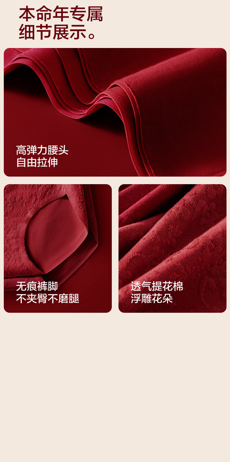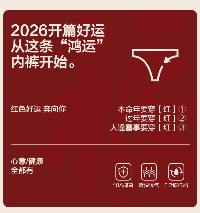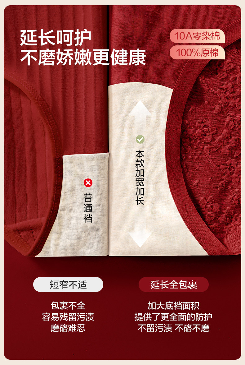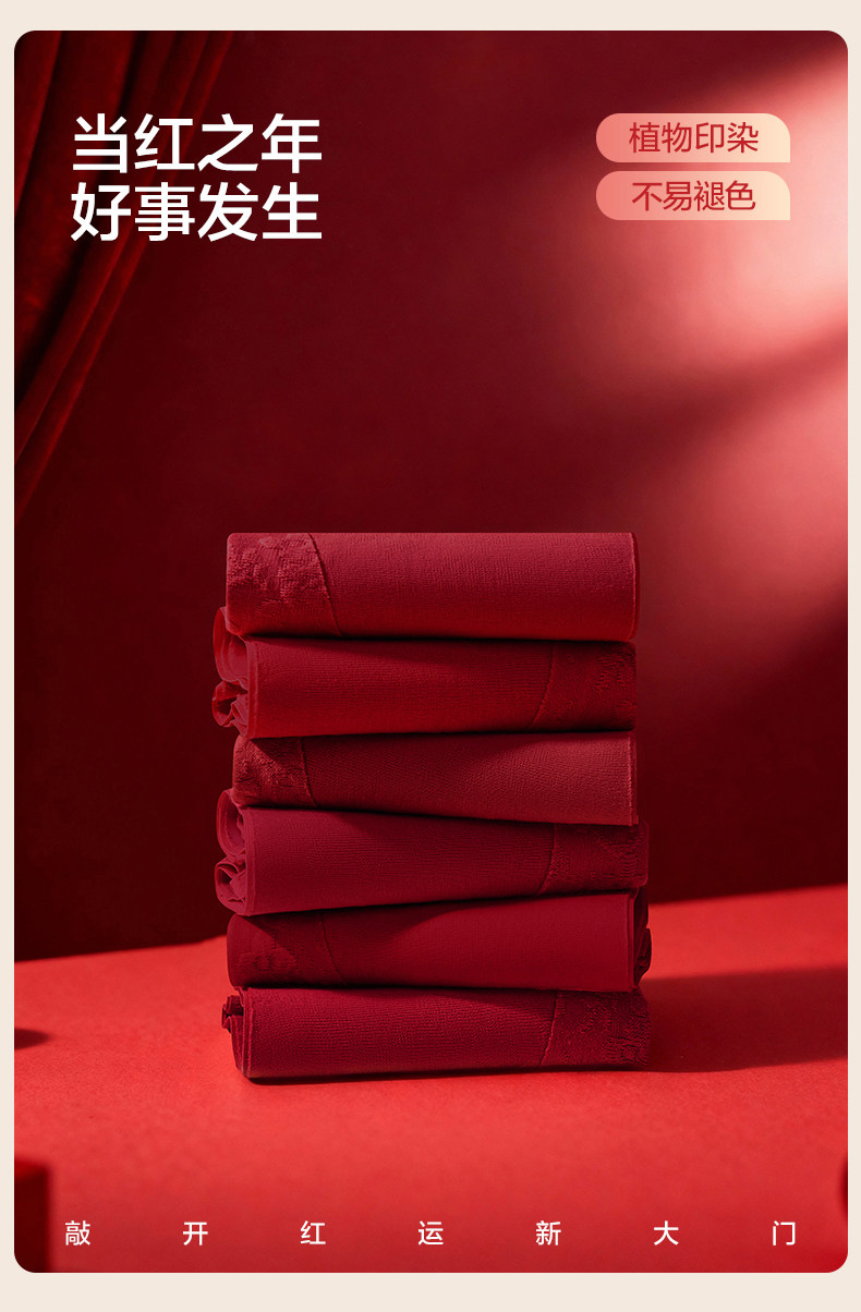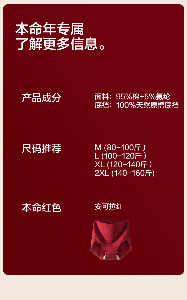 歐迪芬本命年紅色內褲女士純棉抗菌襠2026新款結婚無痕高腰收腹褲