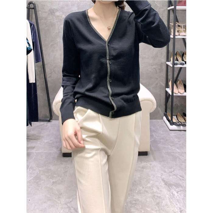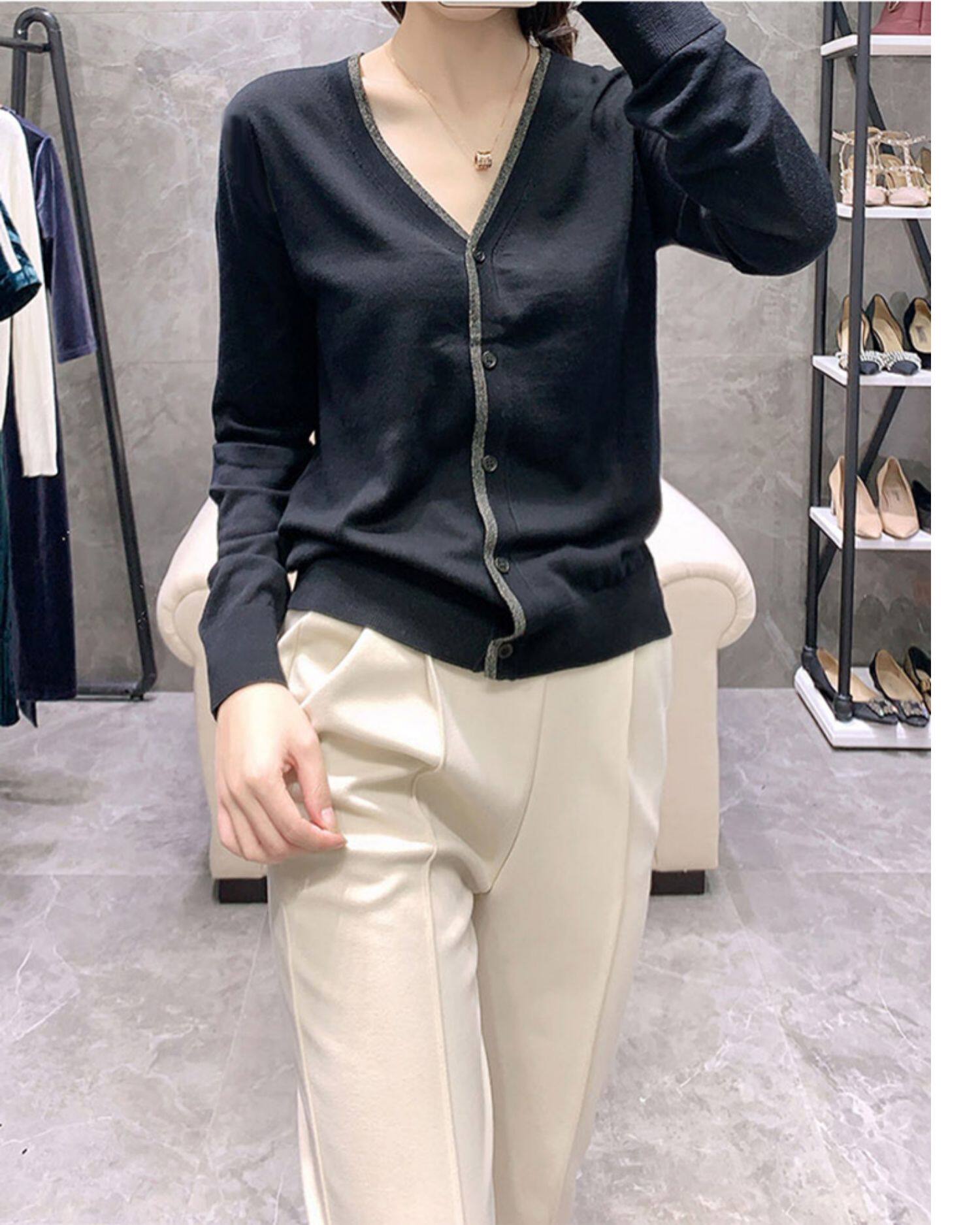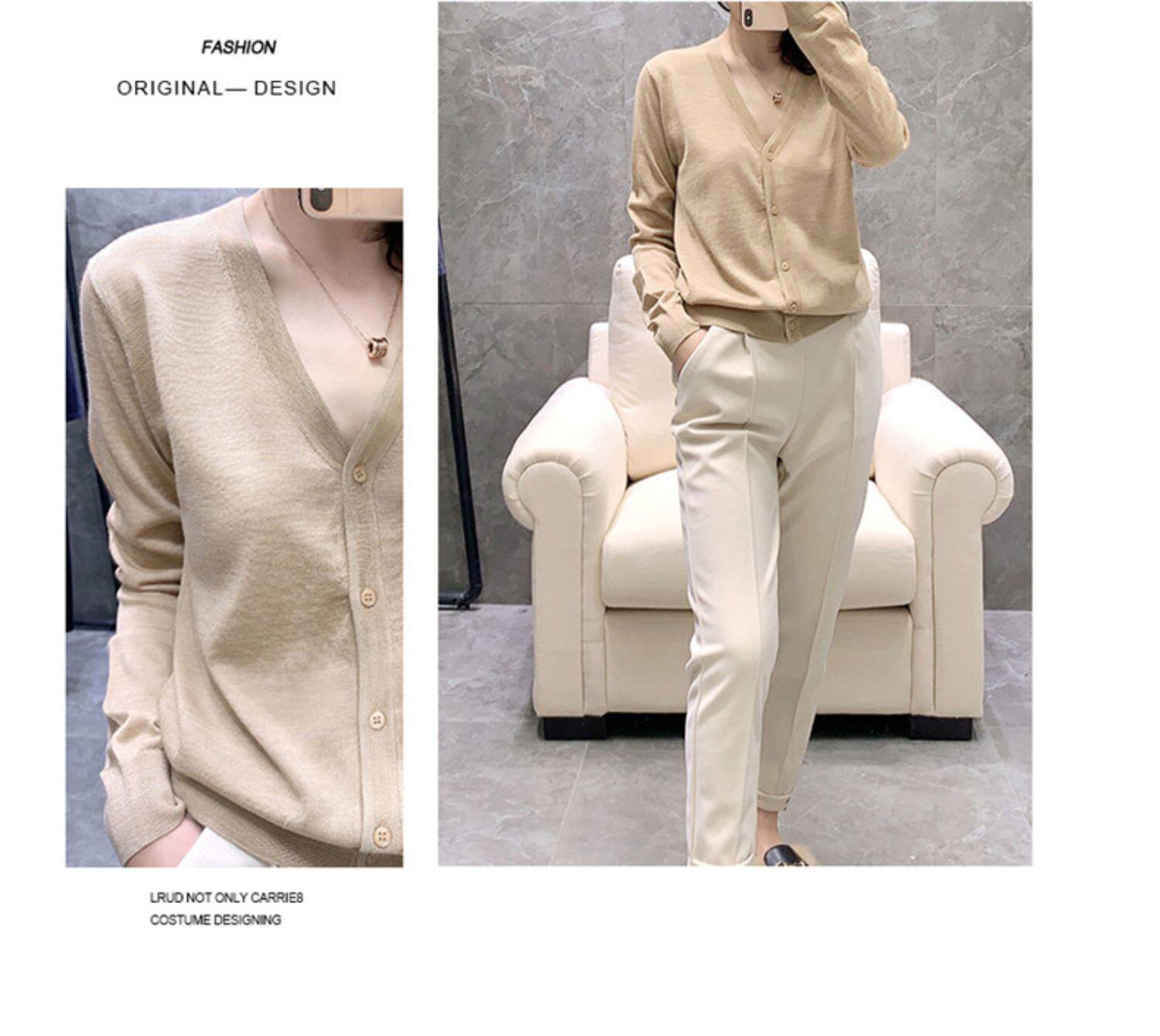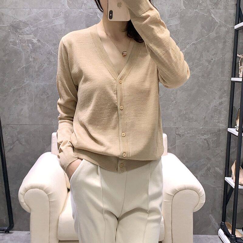 時尚針織開衫女薄款外搭V領2025春秋季外搭新款毛衣外套上衣寬鬆