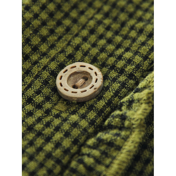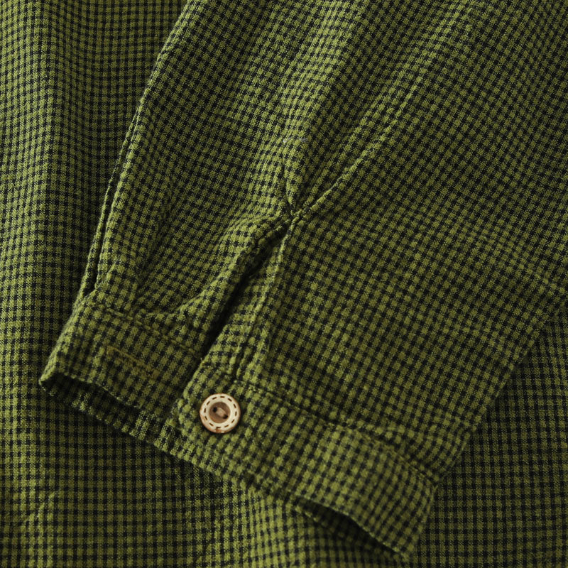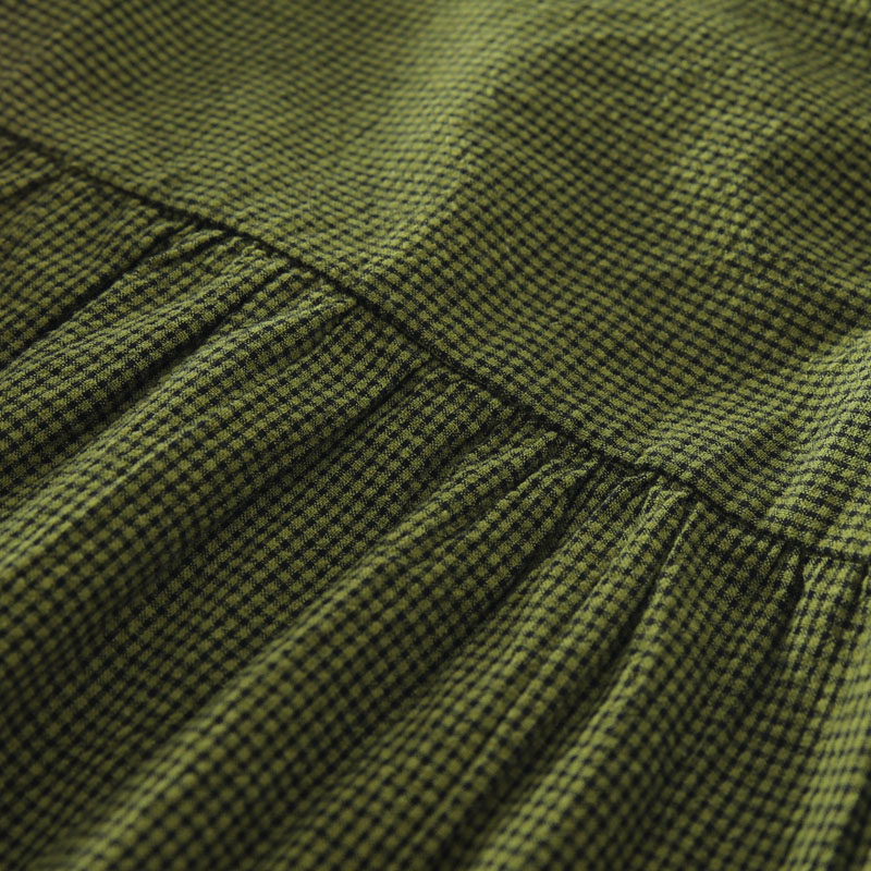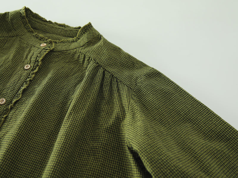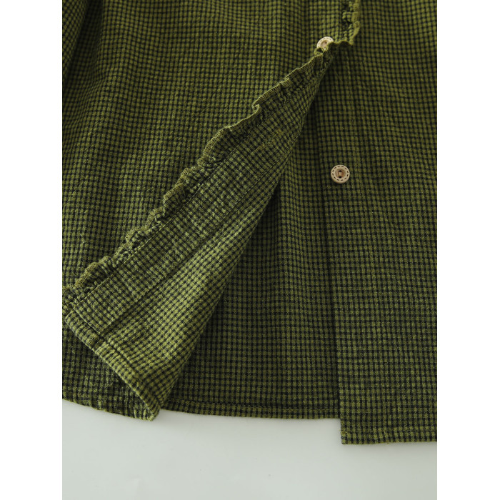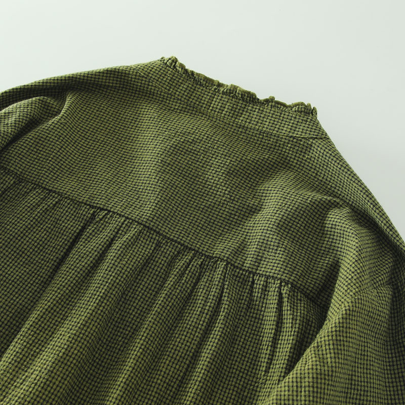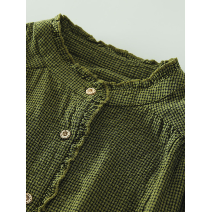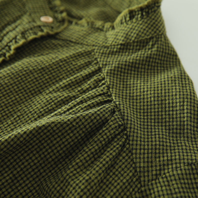 春秋款文藝復古木耳花邊立領格子襯衫女日系寬鬆百搭長袖襯衣上衣