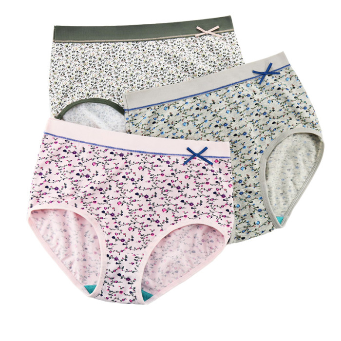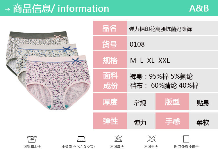 2條裝 AB內褲女彈力棉印花抗菌中高腰時尚舒適媽咪褲小平角褲0108