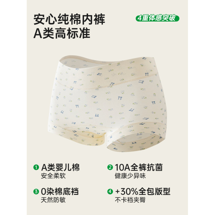 A類純棉內褲女生2026新款10A抗菌加長襠平角無痕大碼女士四角短褲