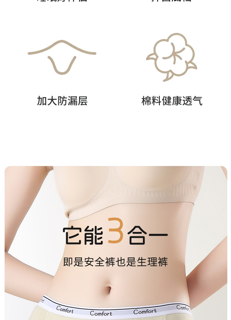 貓人生理期內褲女經期防漏安全褲純棉抗菌發育期初高中學生衛生褲
