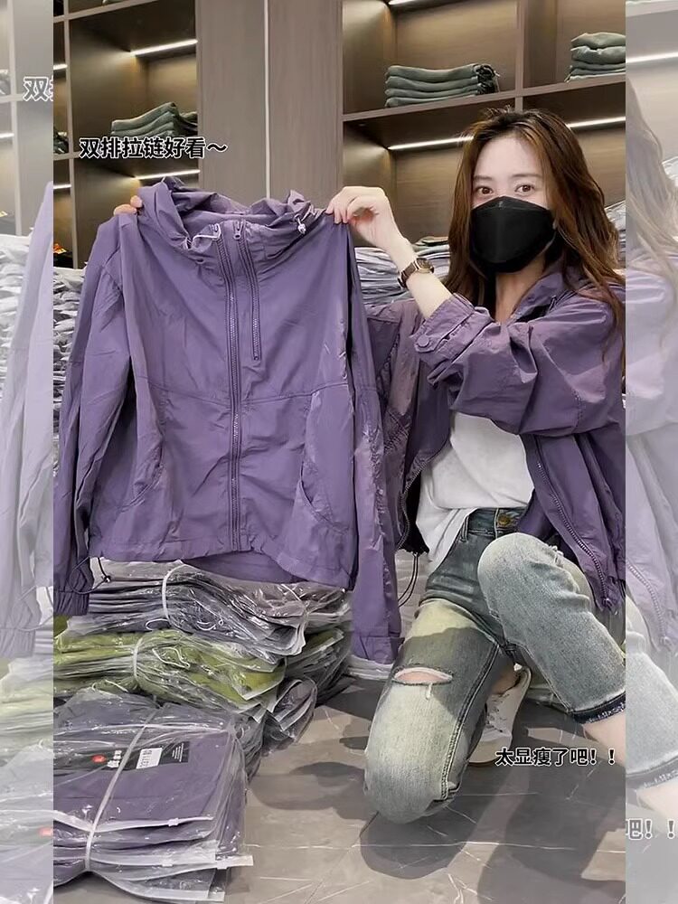 小香風防曬服紫色寬鬆立領長袖防曬衣沖鋒衣薄外套女春秋2025新款