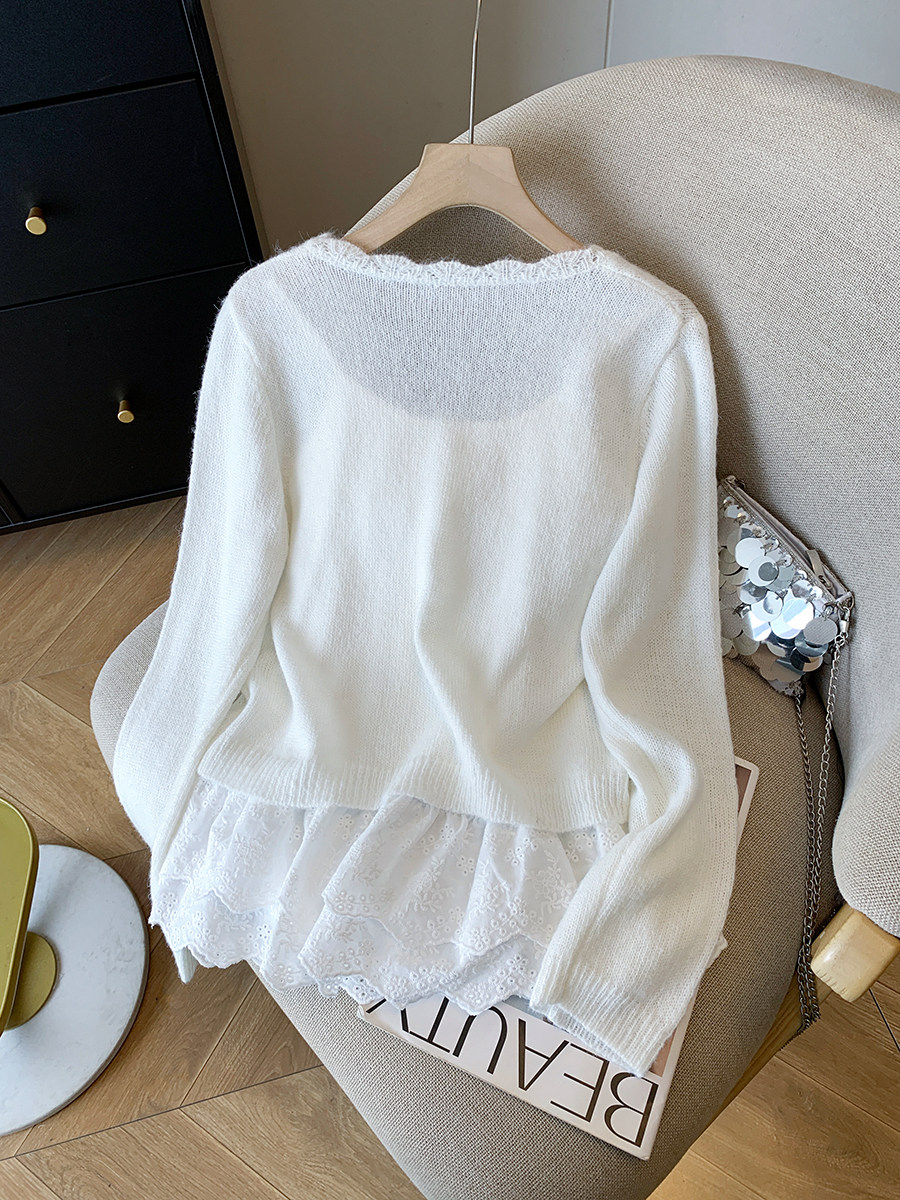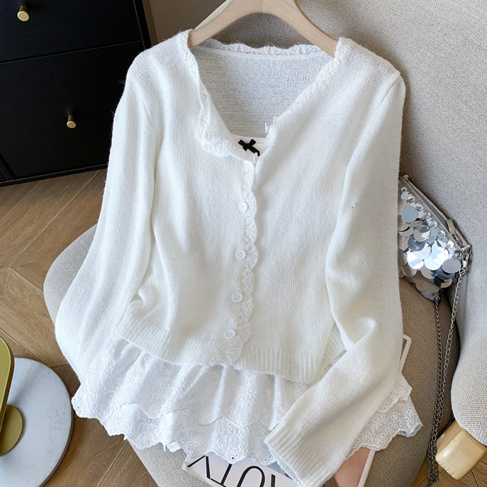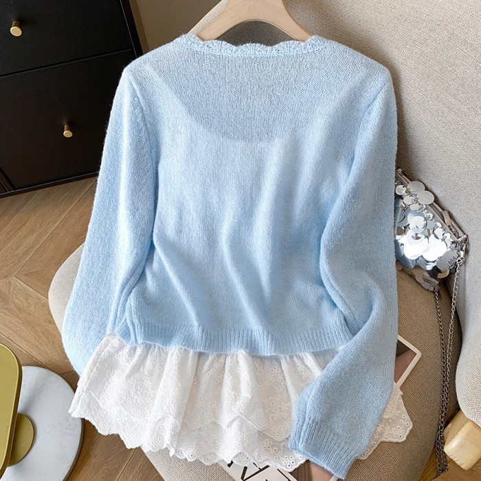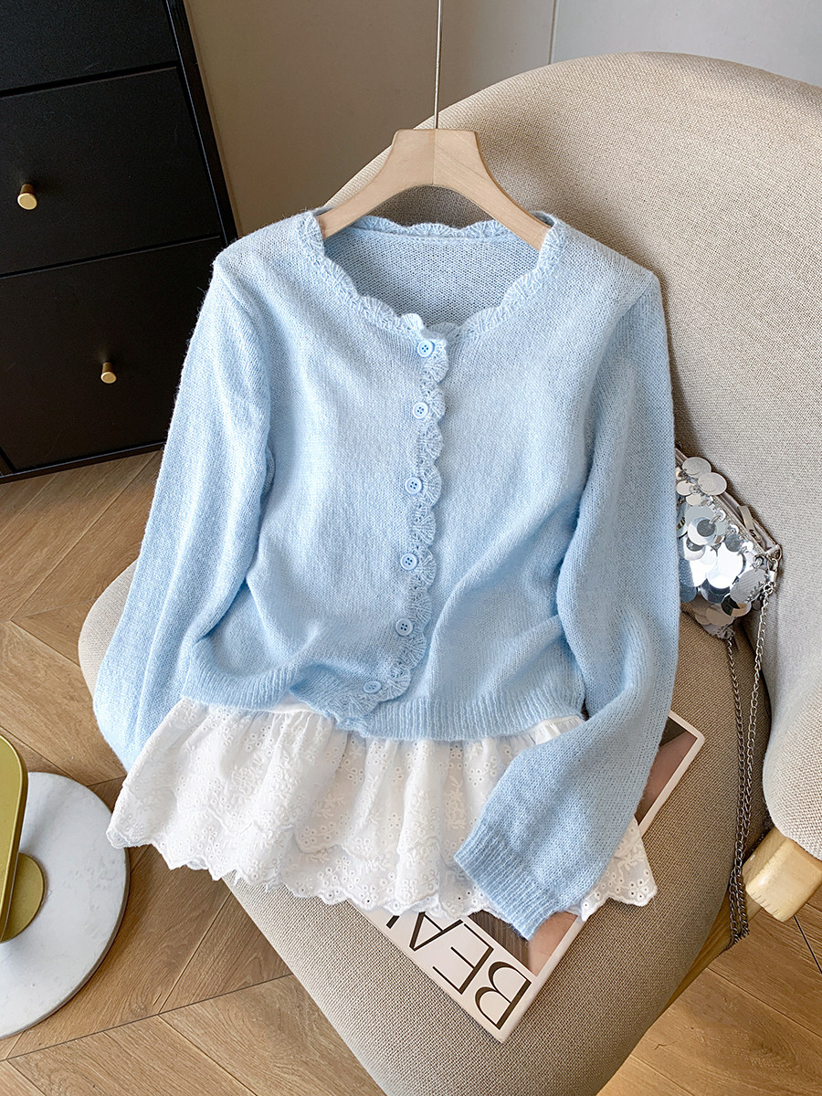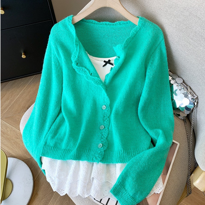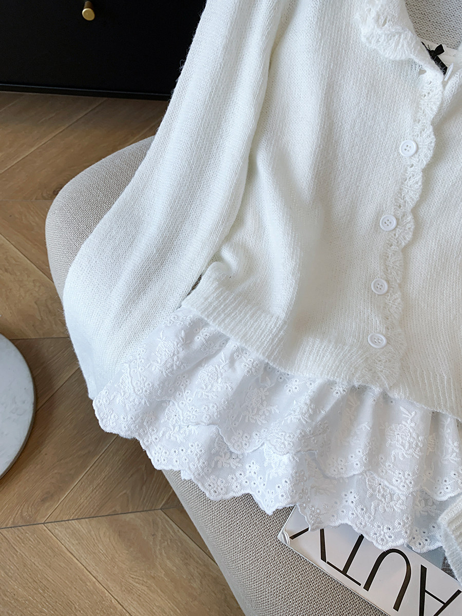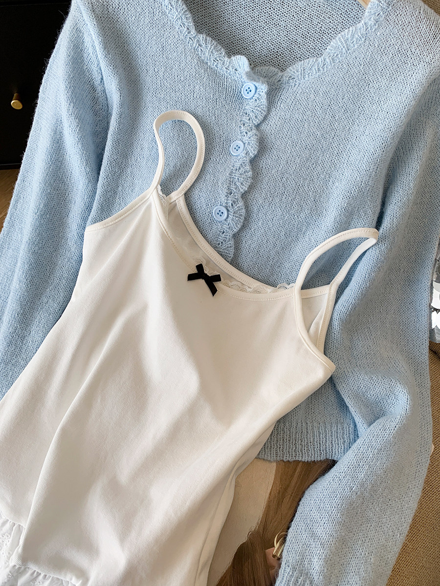 專櫃撤廻剪標韓系蕾絲拼接吊帶女春季新款甜美顯白開衫曡穿兩件套